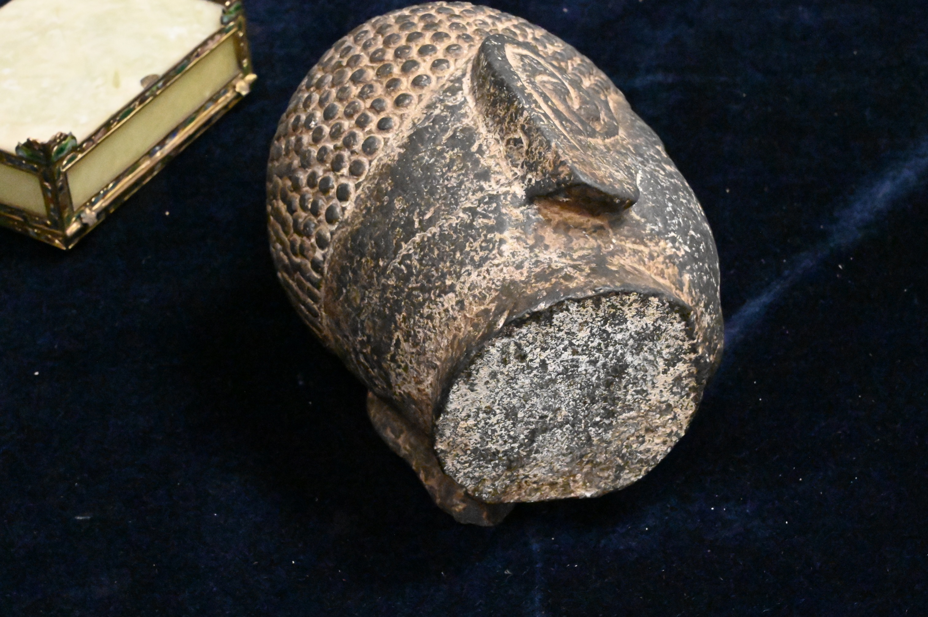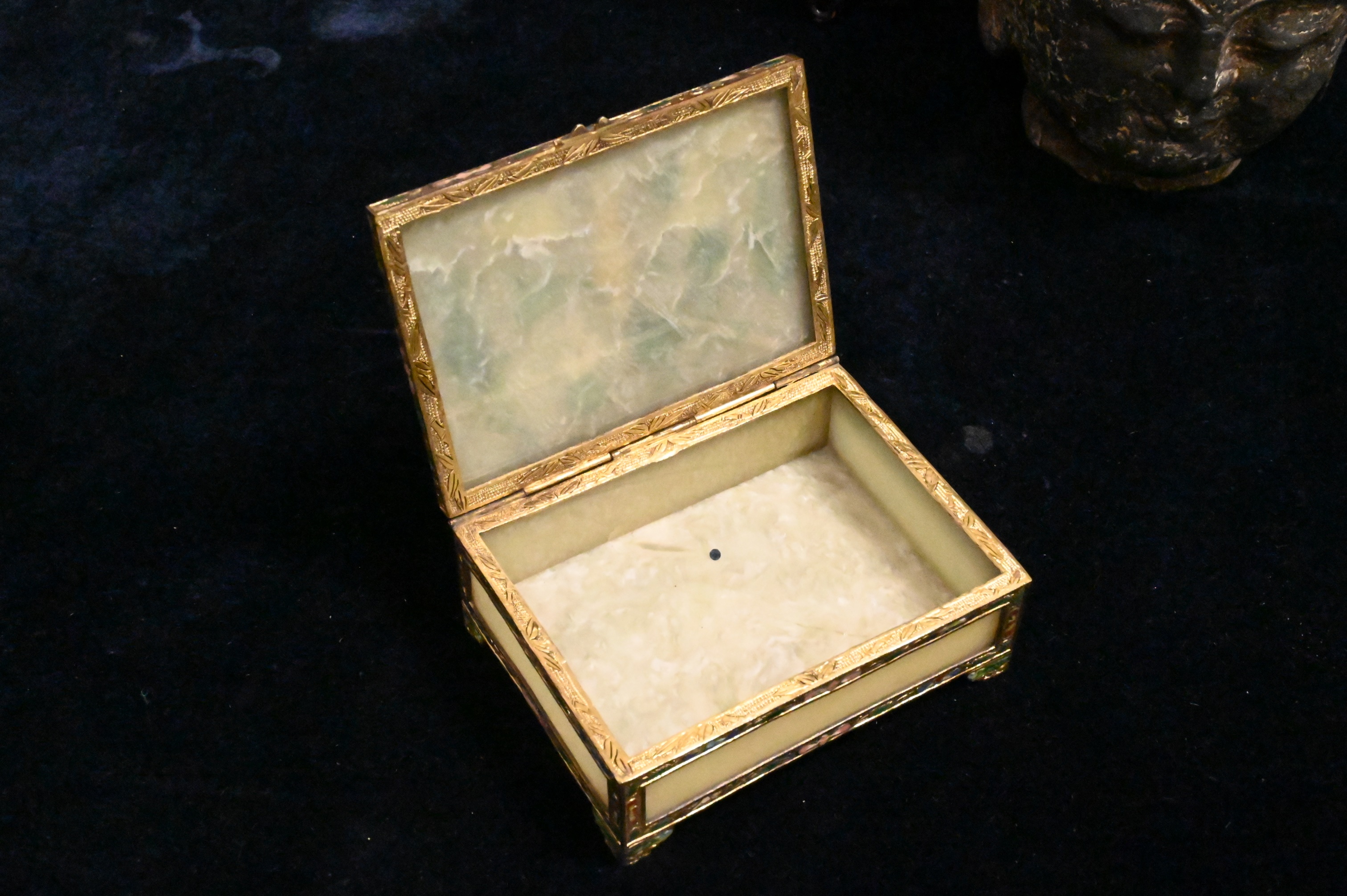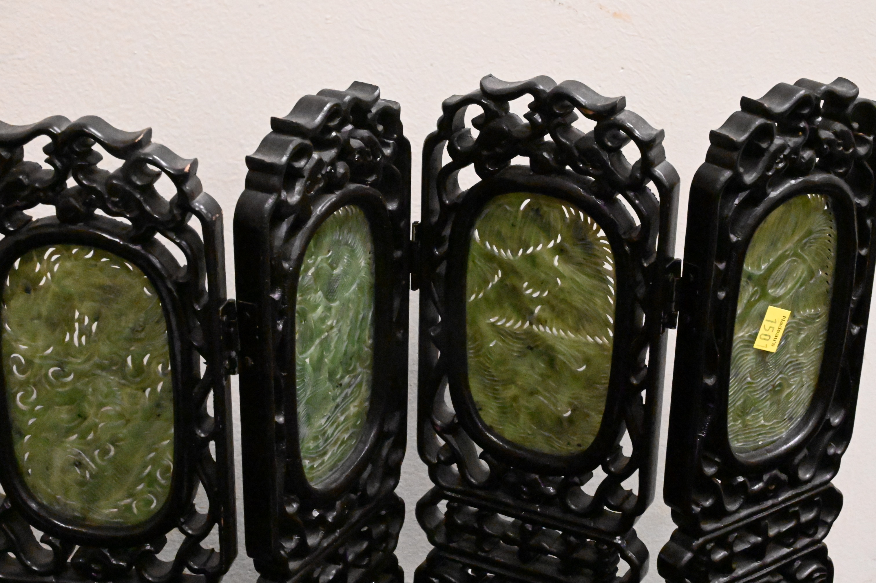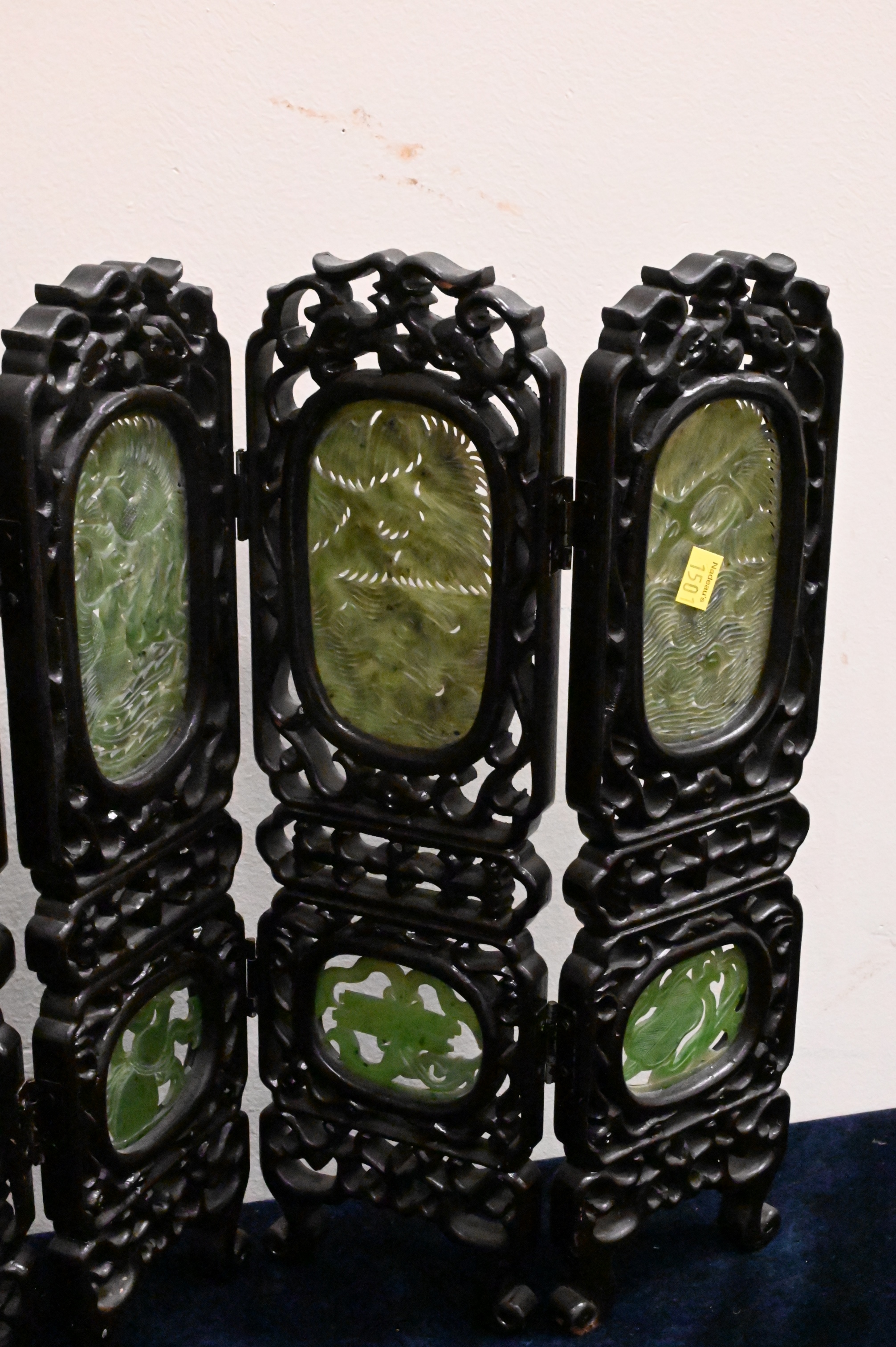 Three Piece Chinese Grouping, to include carved stone budha head (height 6 3/4 inches, green stone screen( height 16 inches), and a jade box