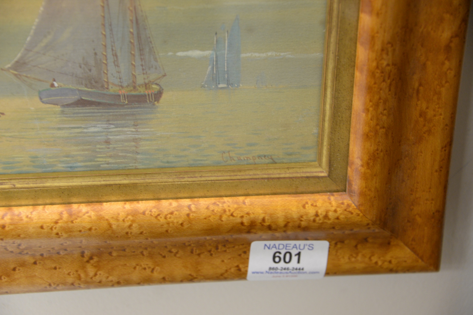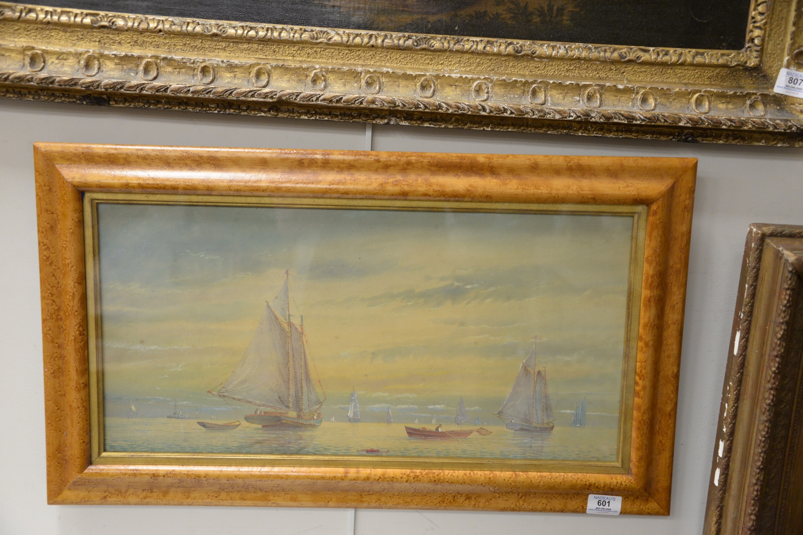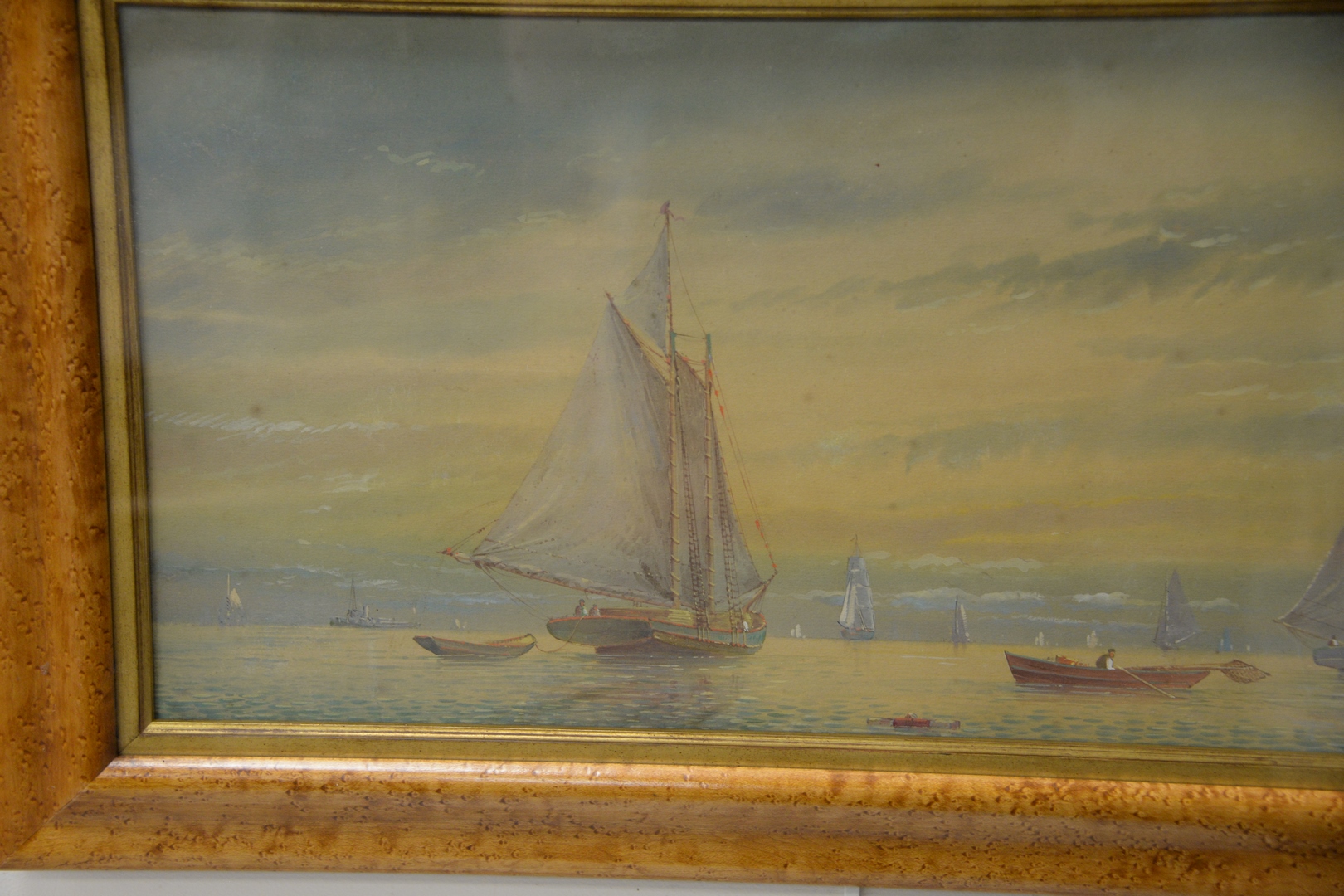 Lot 601: Benjamin Champney American, 1817 – 1907, Boats in a Harbor, watercolor on paper, signed lower right ‘Champney’, sight size 11 x 23.