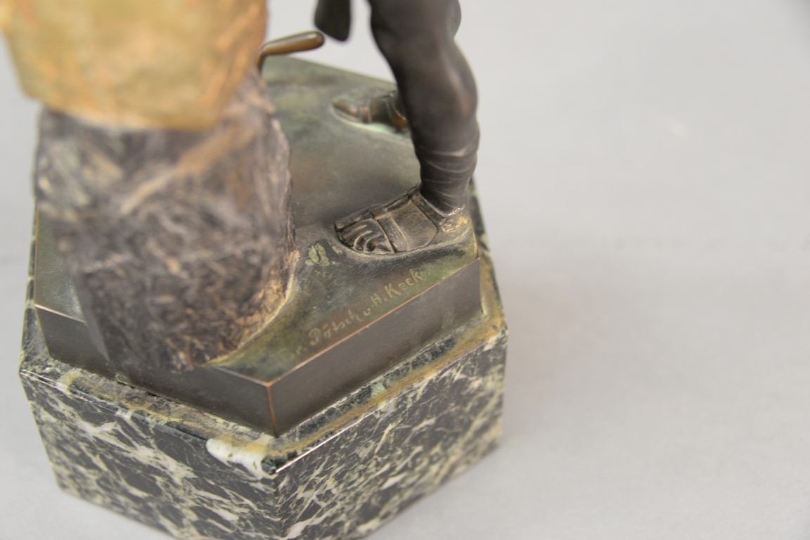 Lot 601: Hans Keck act 1900-1922 patinated bronze Sculptor figure of a classical sculptor on octagonal marble base signed…