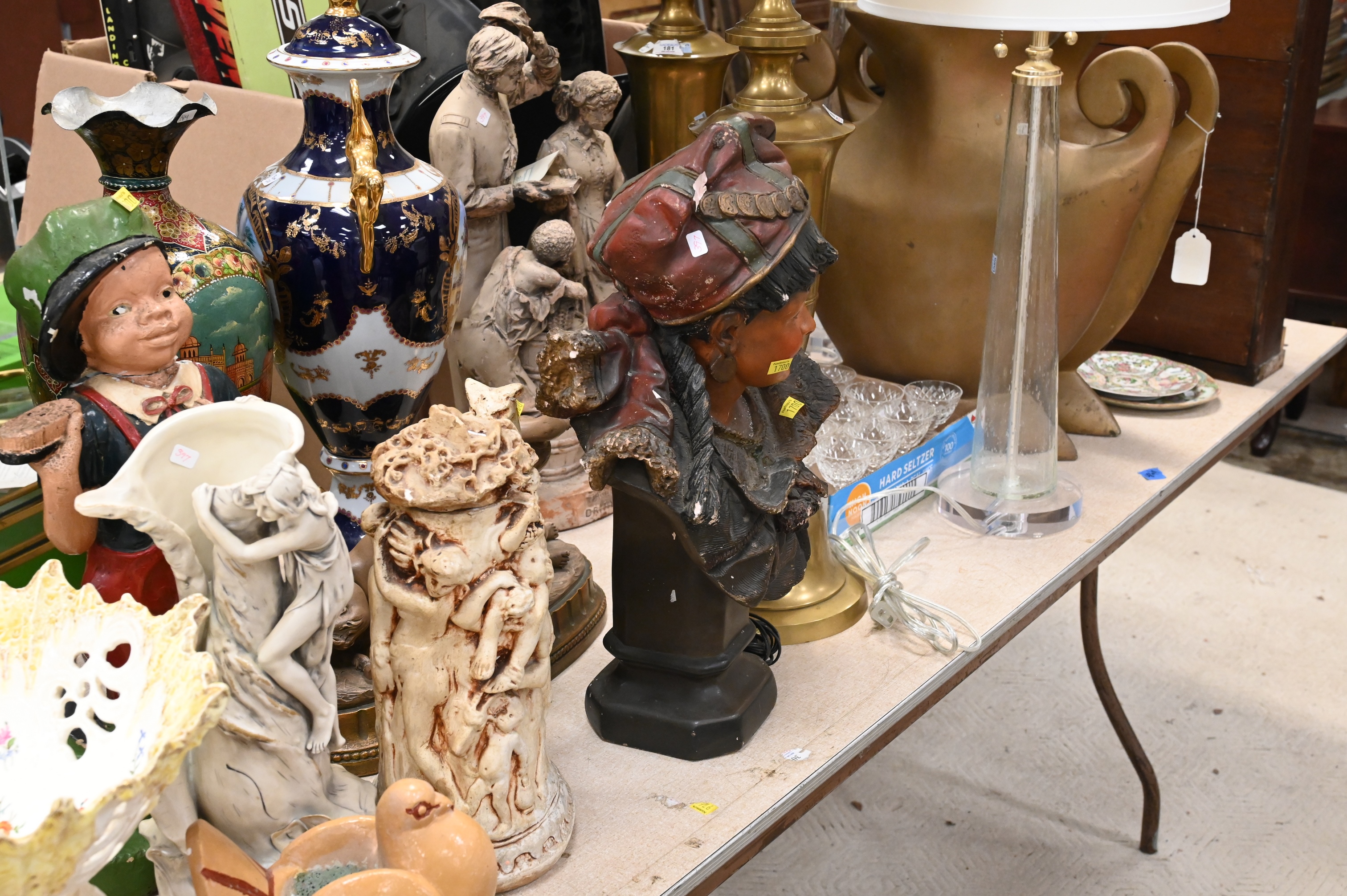 Lot 601: Large Lot to Include Wine Glasses, Lamps, Vases, and Plaster Figures