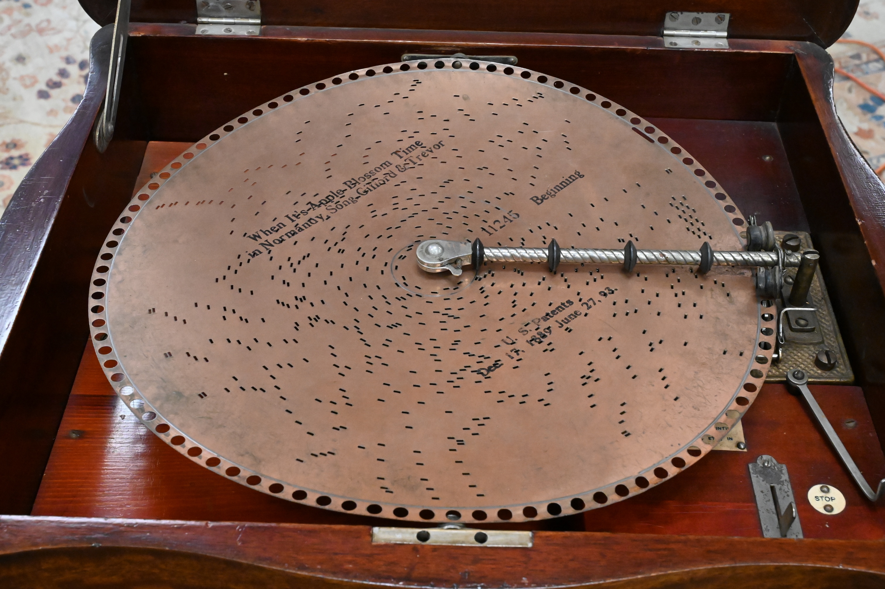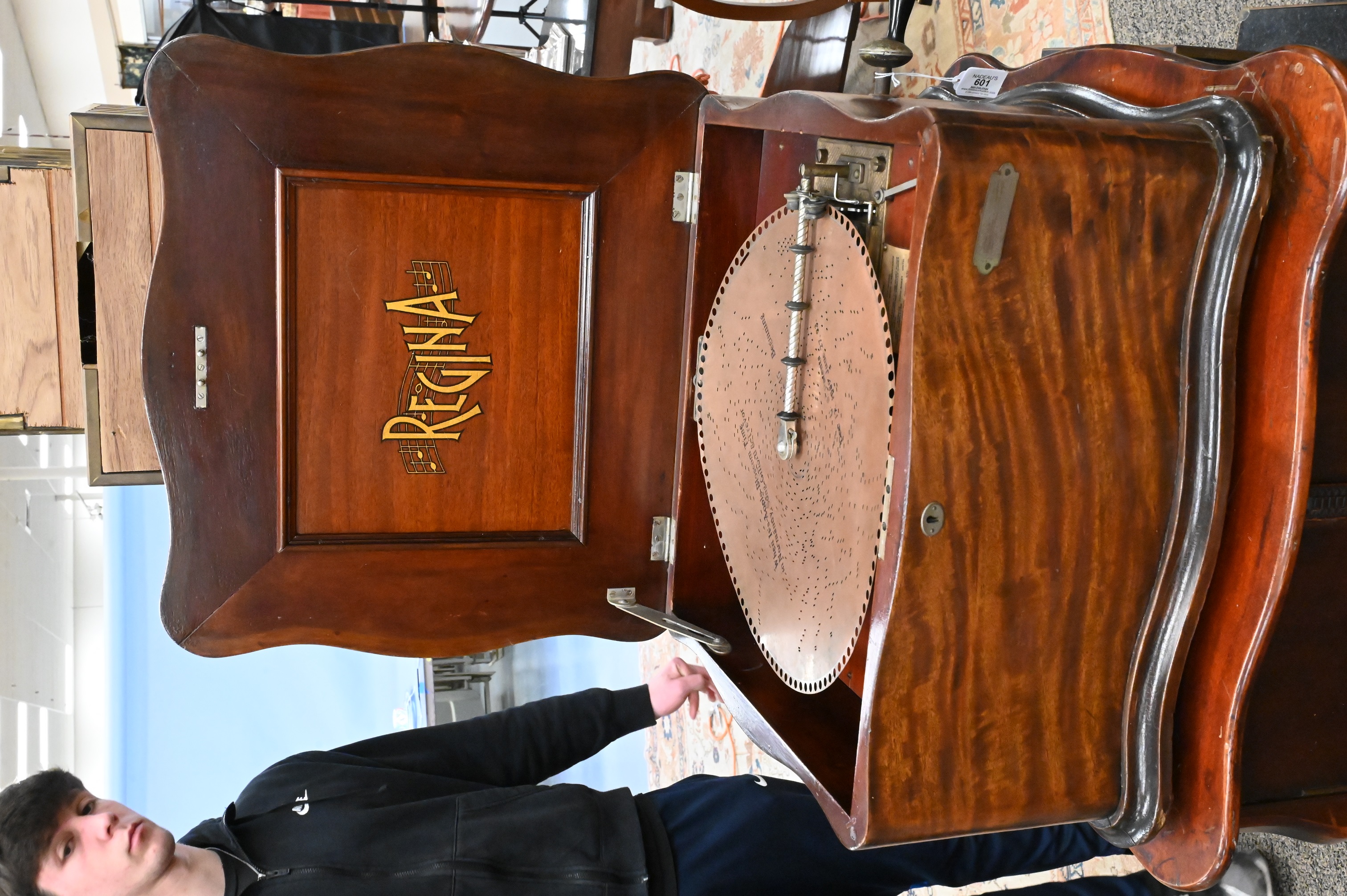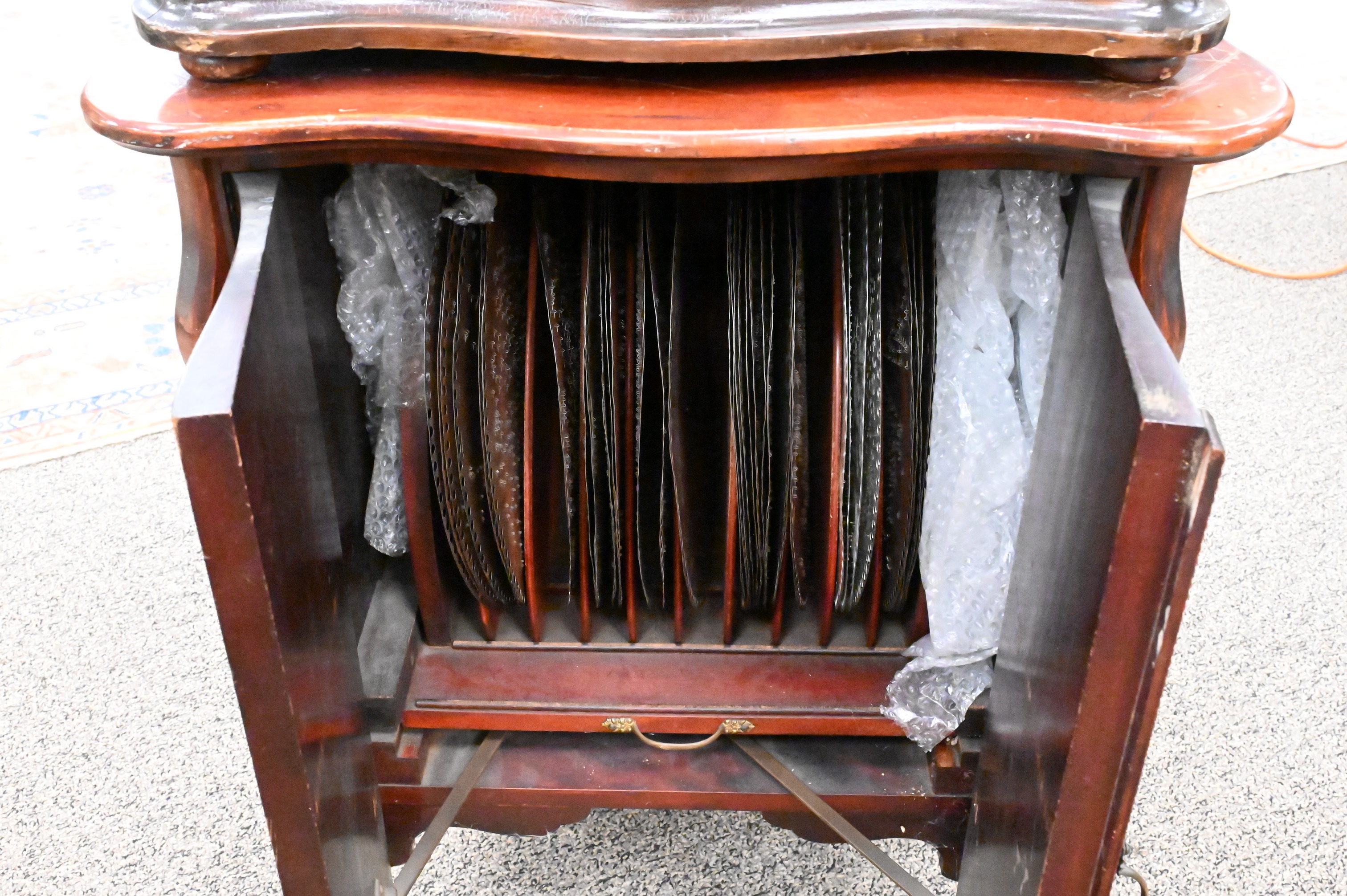 Lot 601: Regina Disks Music Box on Two Door Cabinet Base