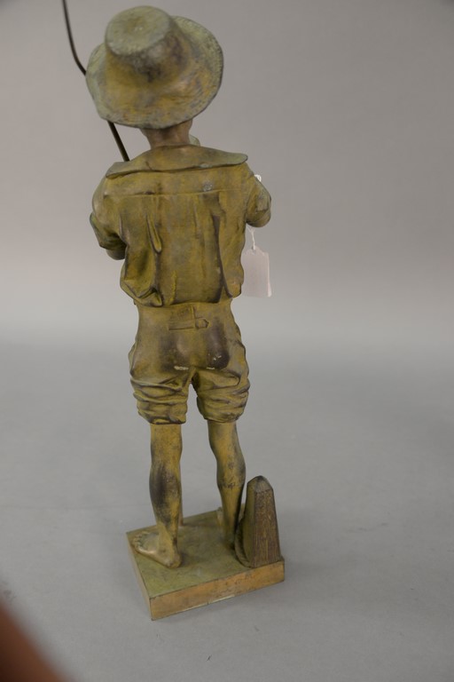 After Adolphe Jean Lavergne 1852-1901 French bronze figure Pecheur Par Lavergne Fishing Boy with Rod Baiting his Hook ht. 18 1/2in.