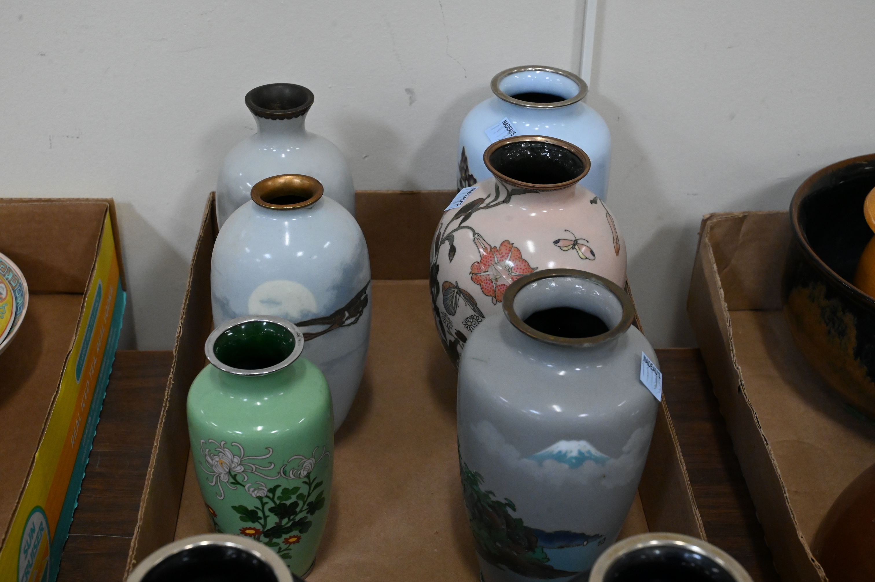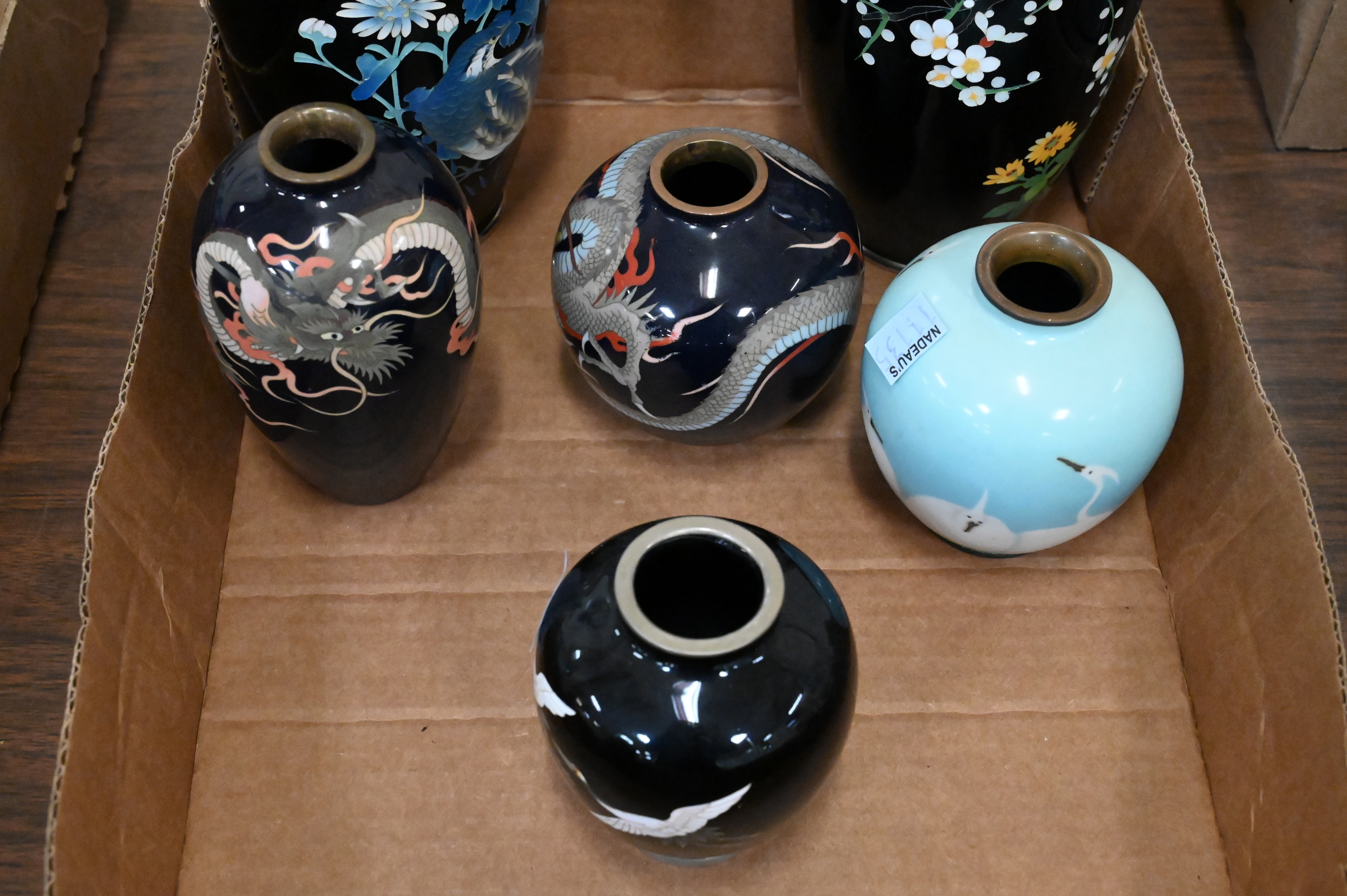Lot 602: Two Trays Lots of Japanese Cloisonne Vases