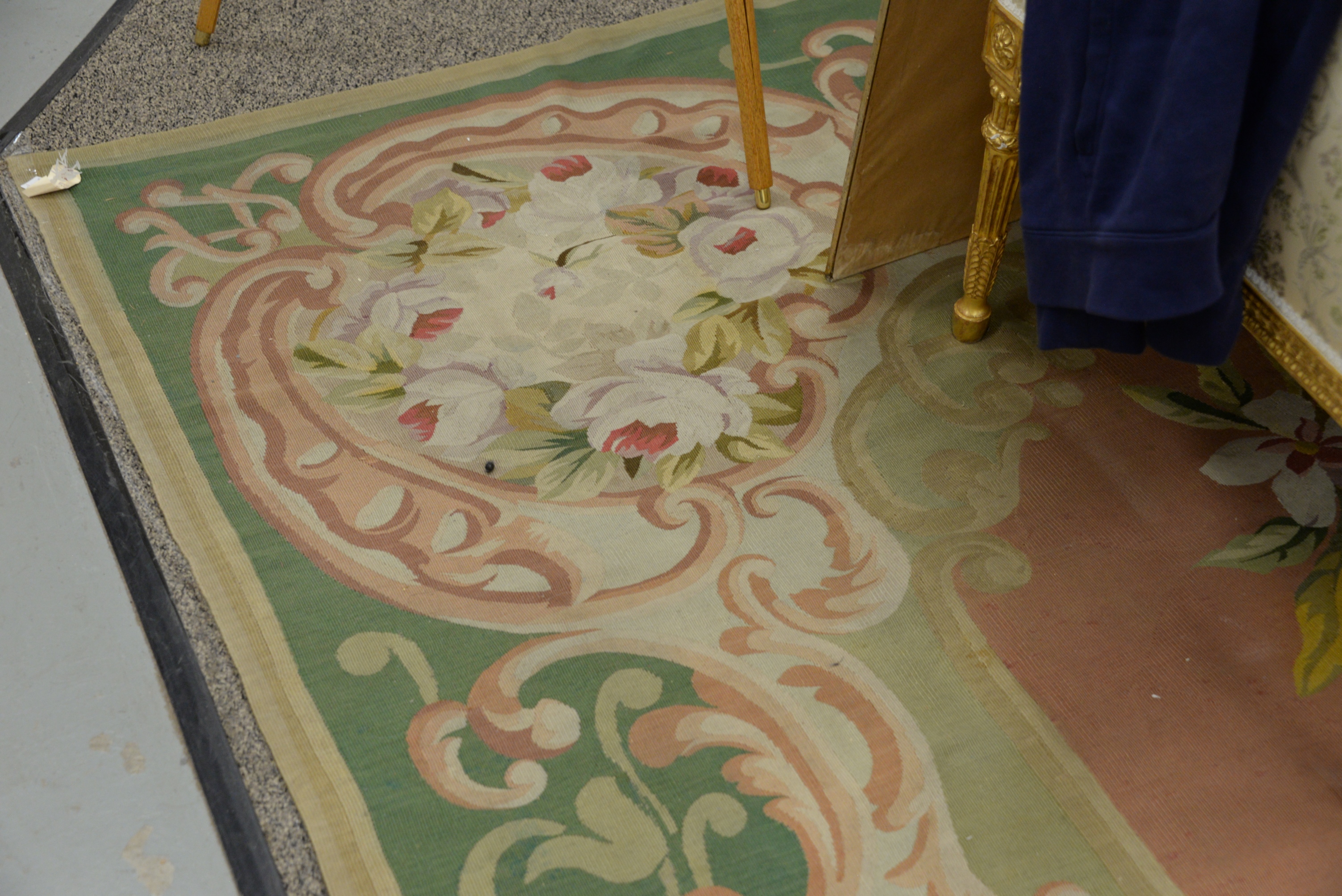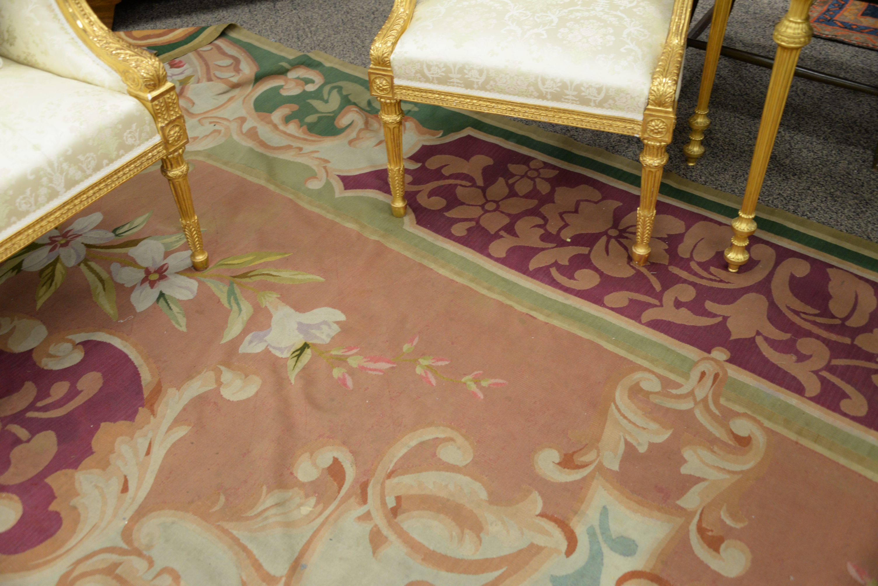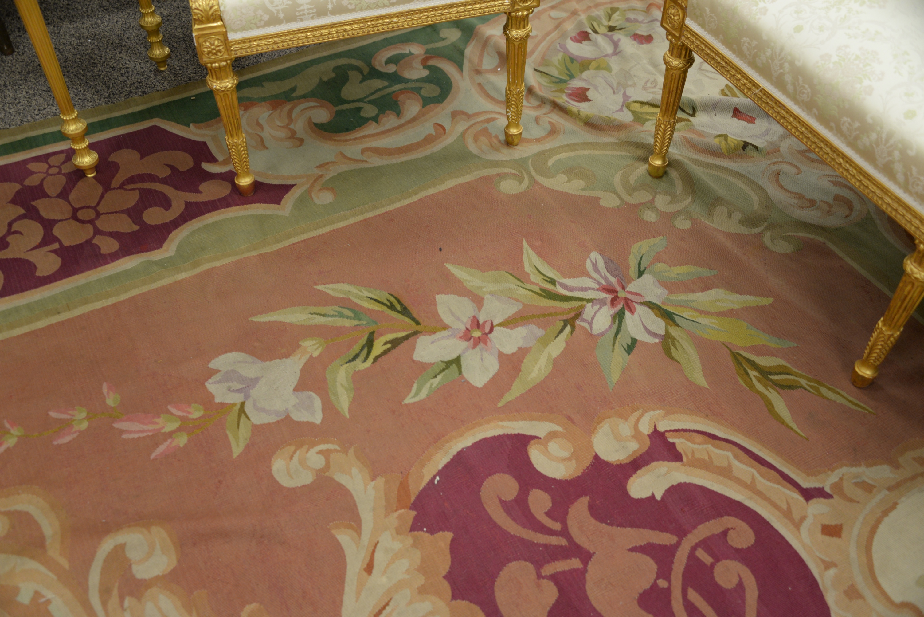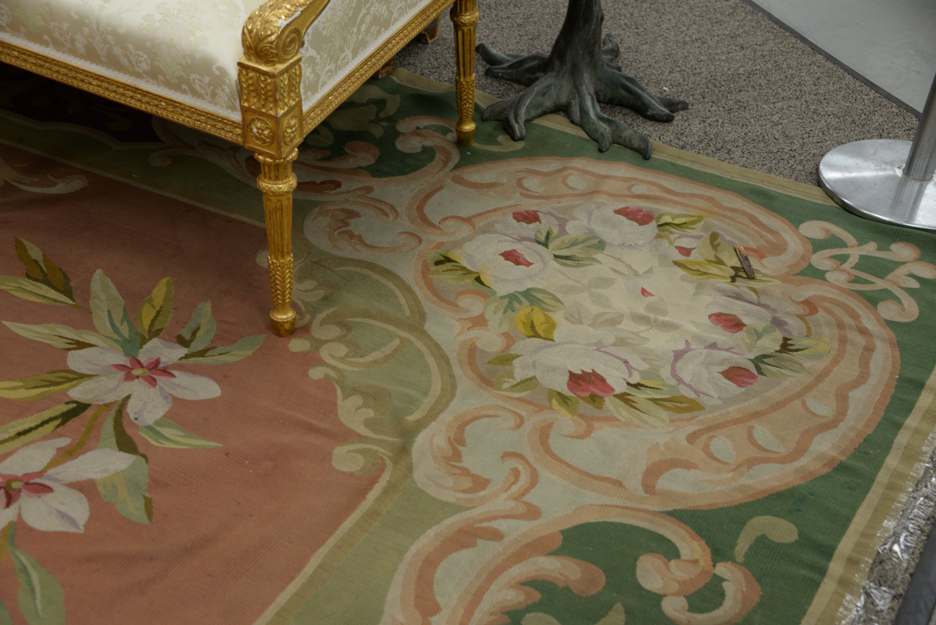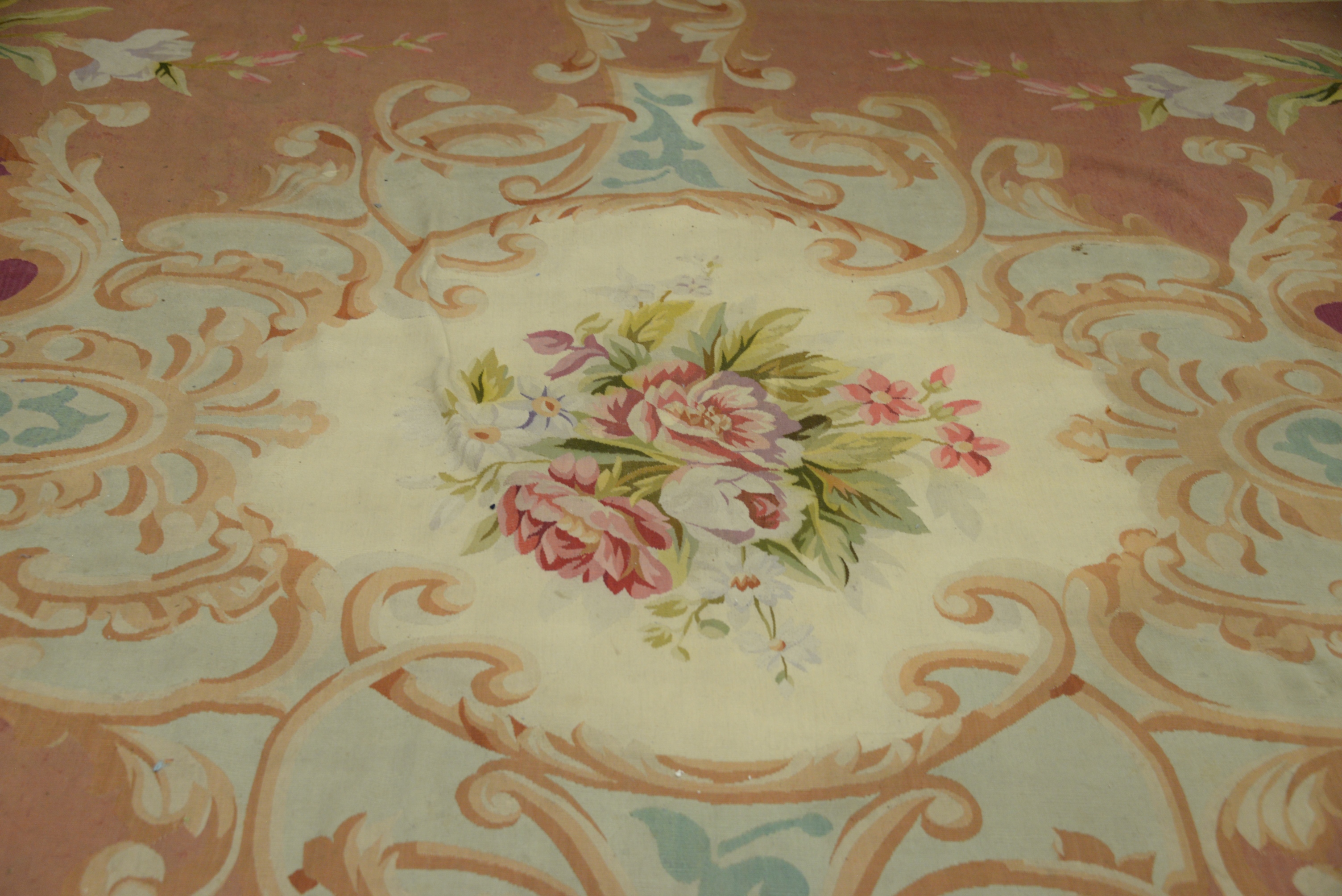 Aubusson Carpet, 12’3″ x 16′ 9″, Provenance: Private N.Y collection, sold to Benefit Charitable Foundations.