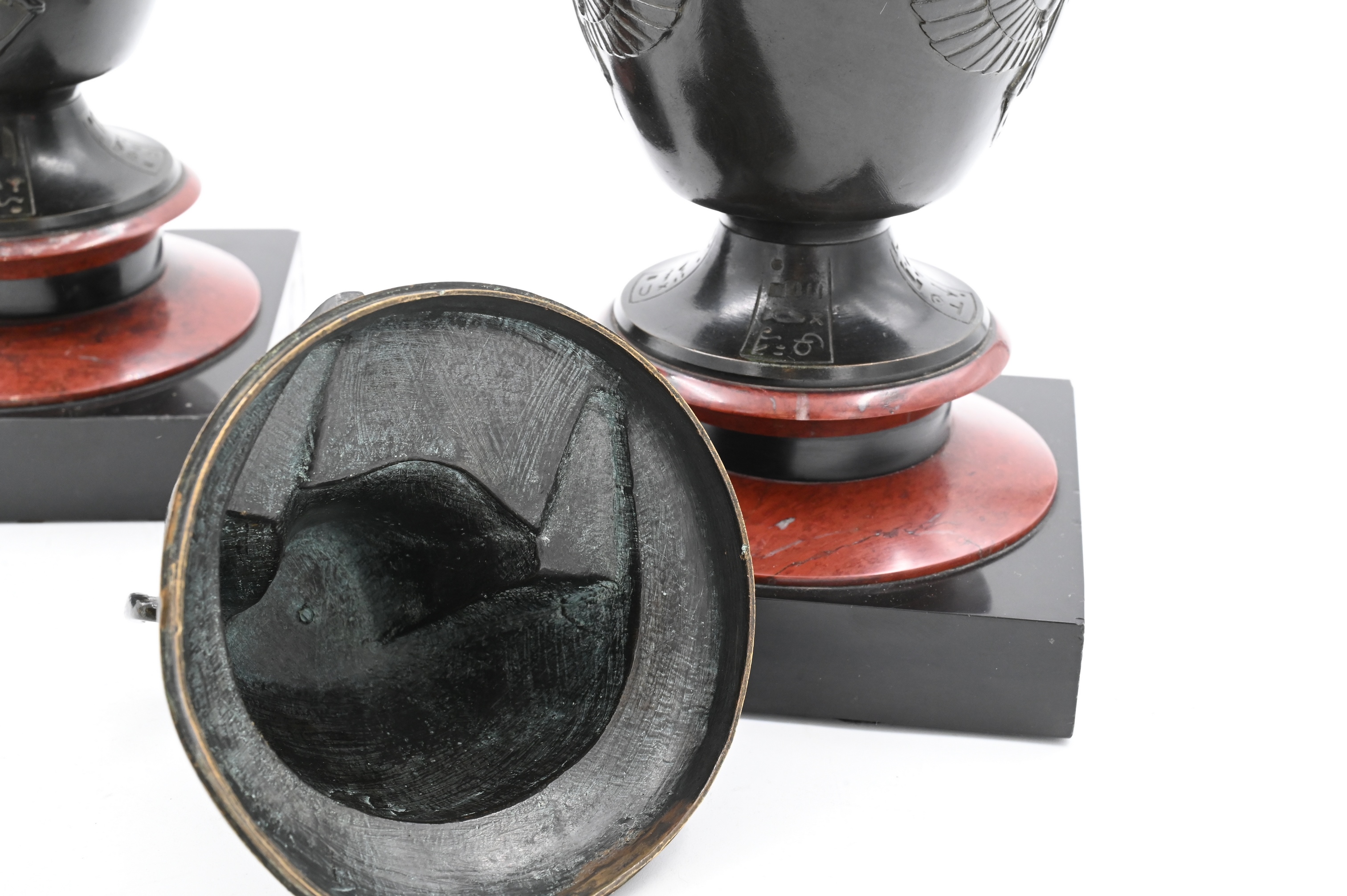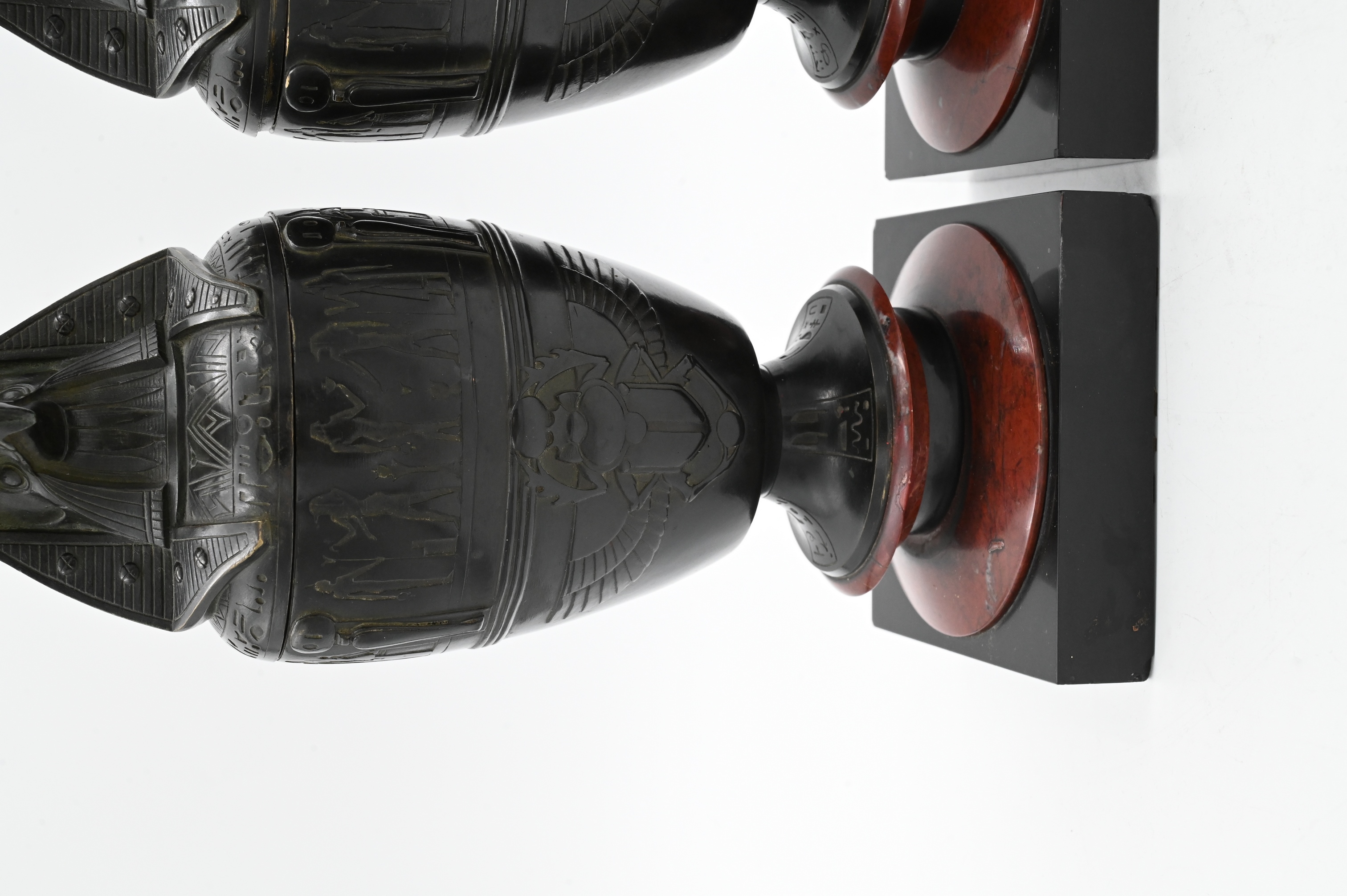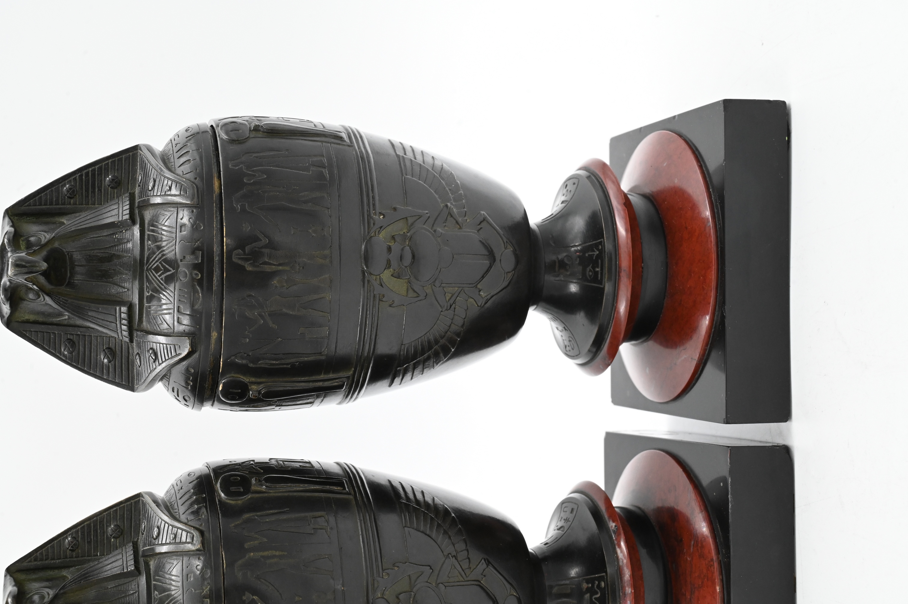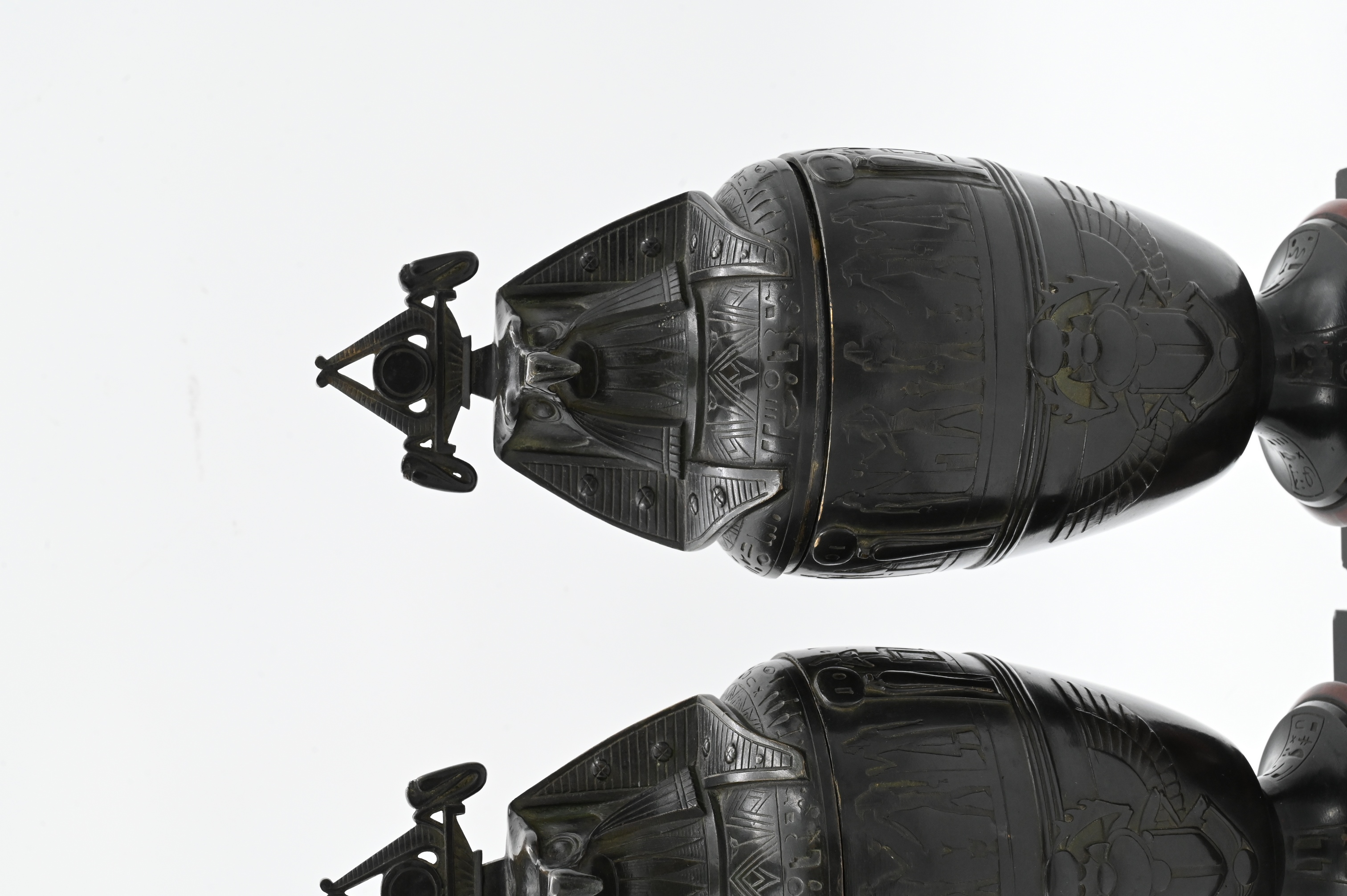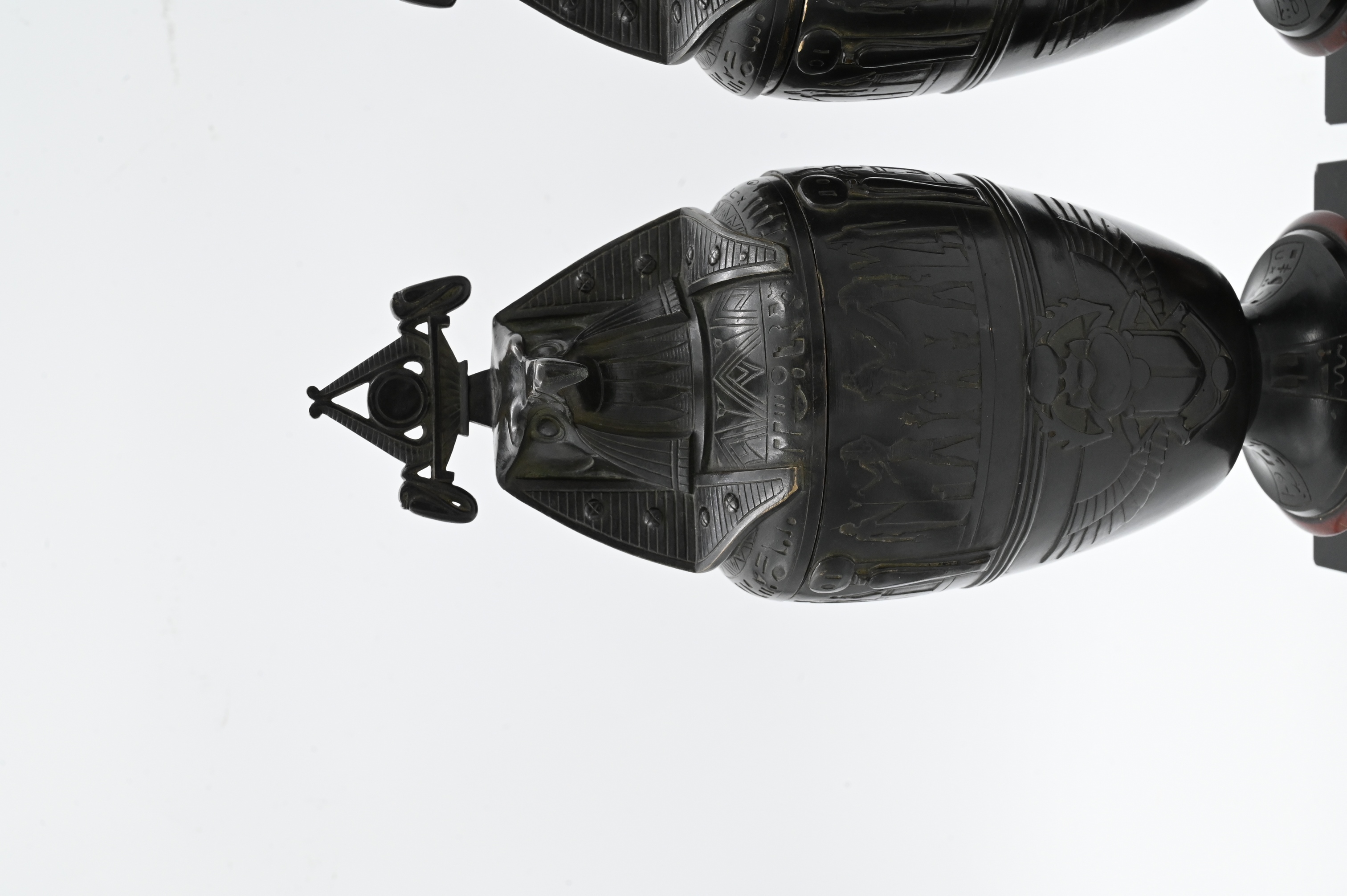 Lot 605: Pair of Egyptian Revival Bronze Covered Urns