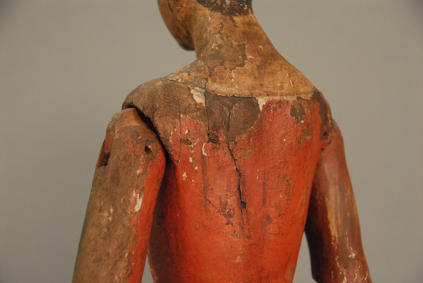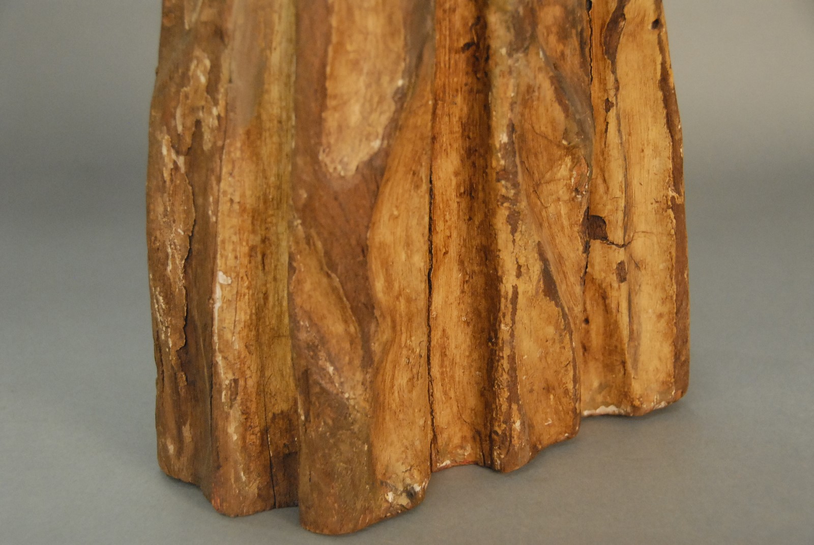 Carved wood Spanish Colonial polychrome and gesso Santos figure of a woman with jointed arms and hands. ht. 25 1/4 in.