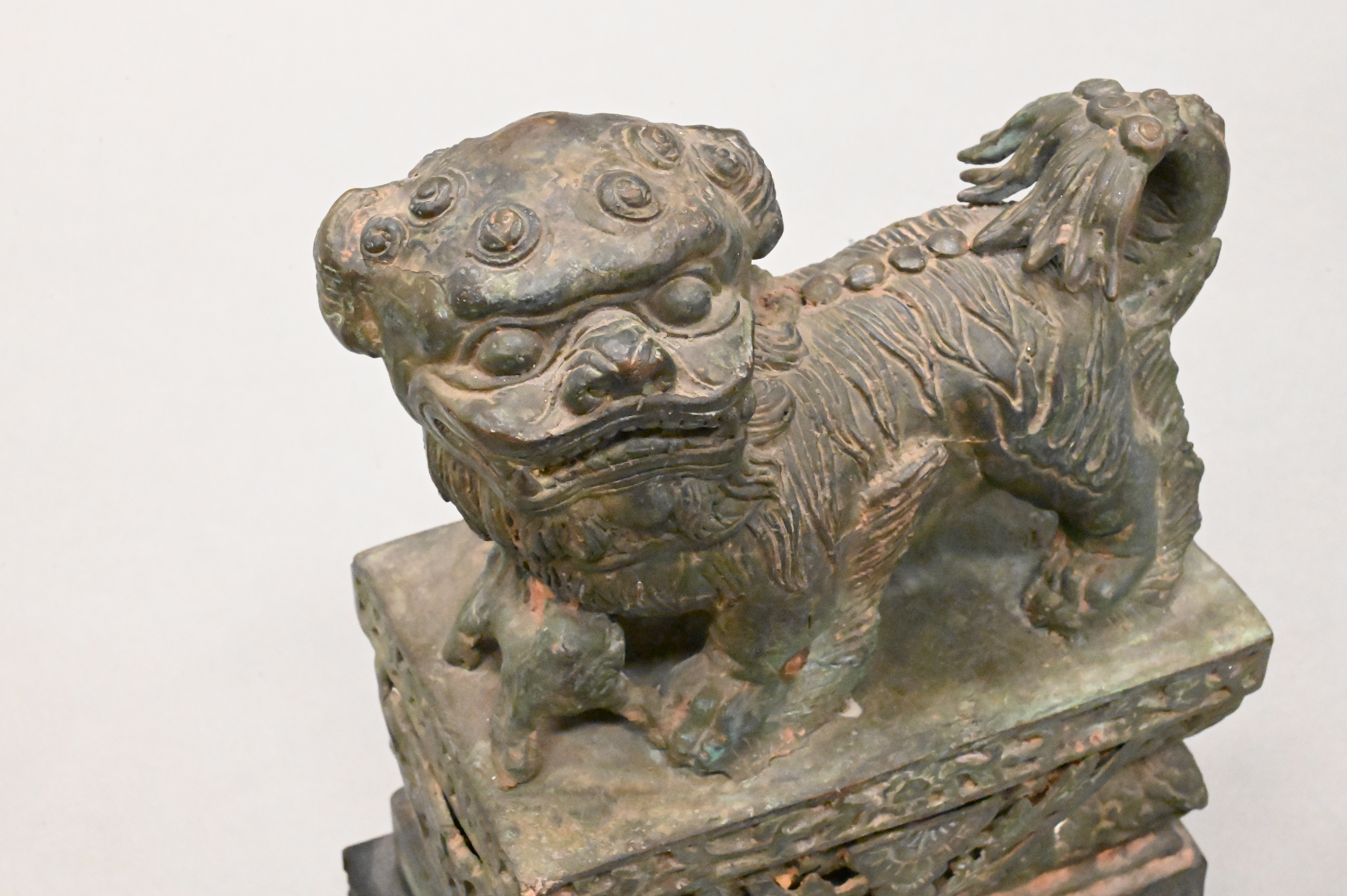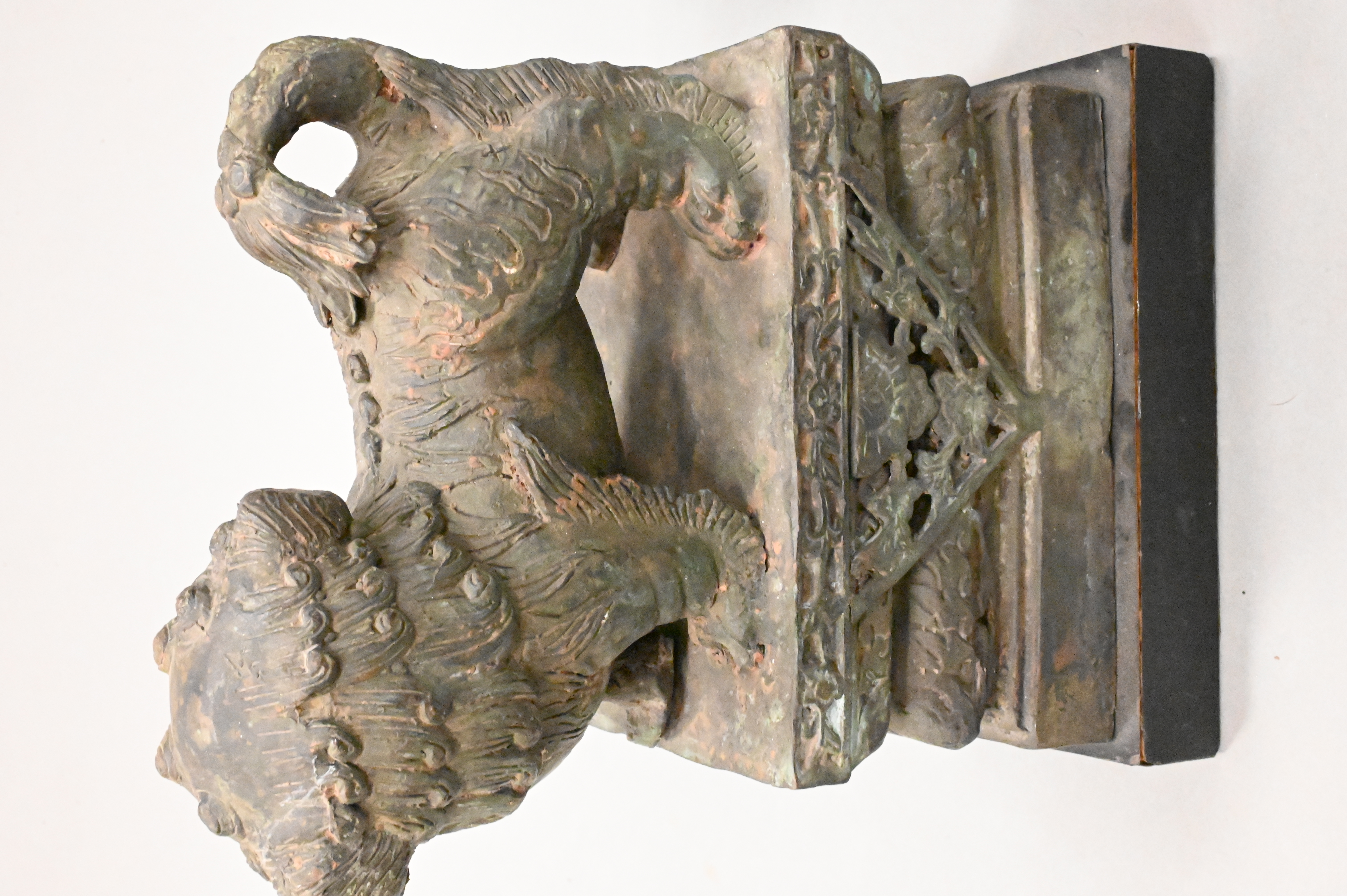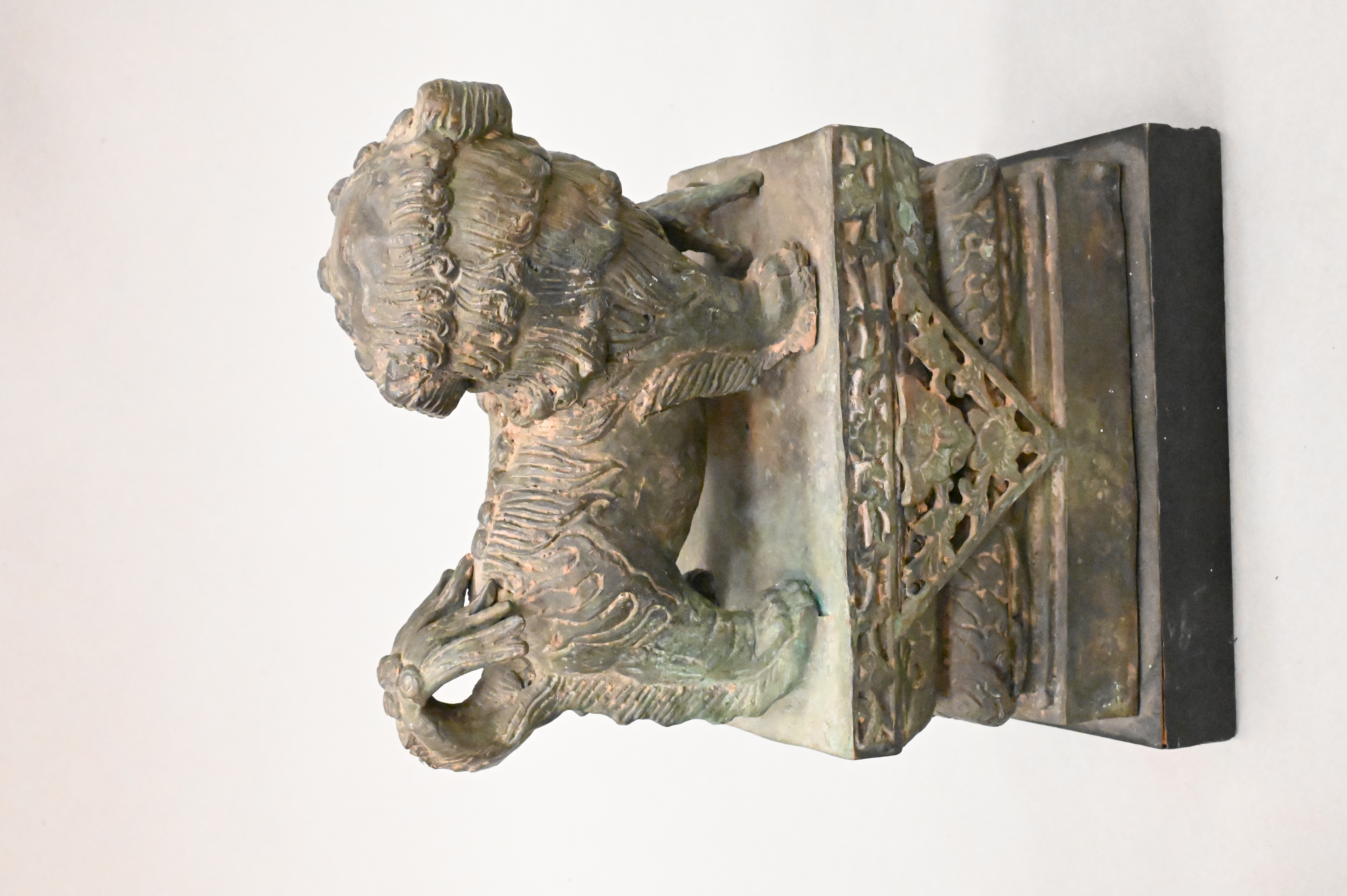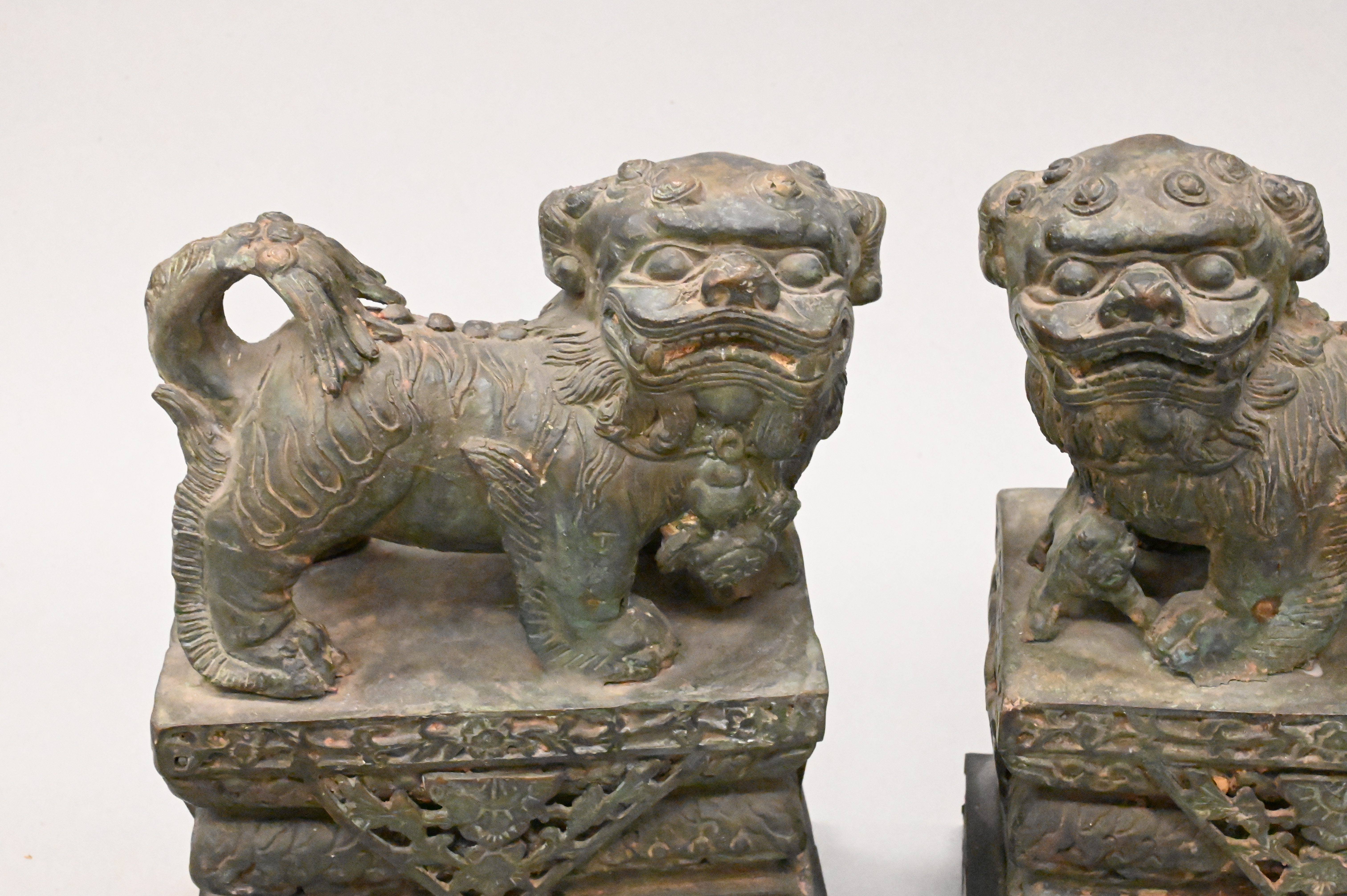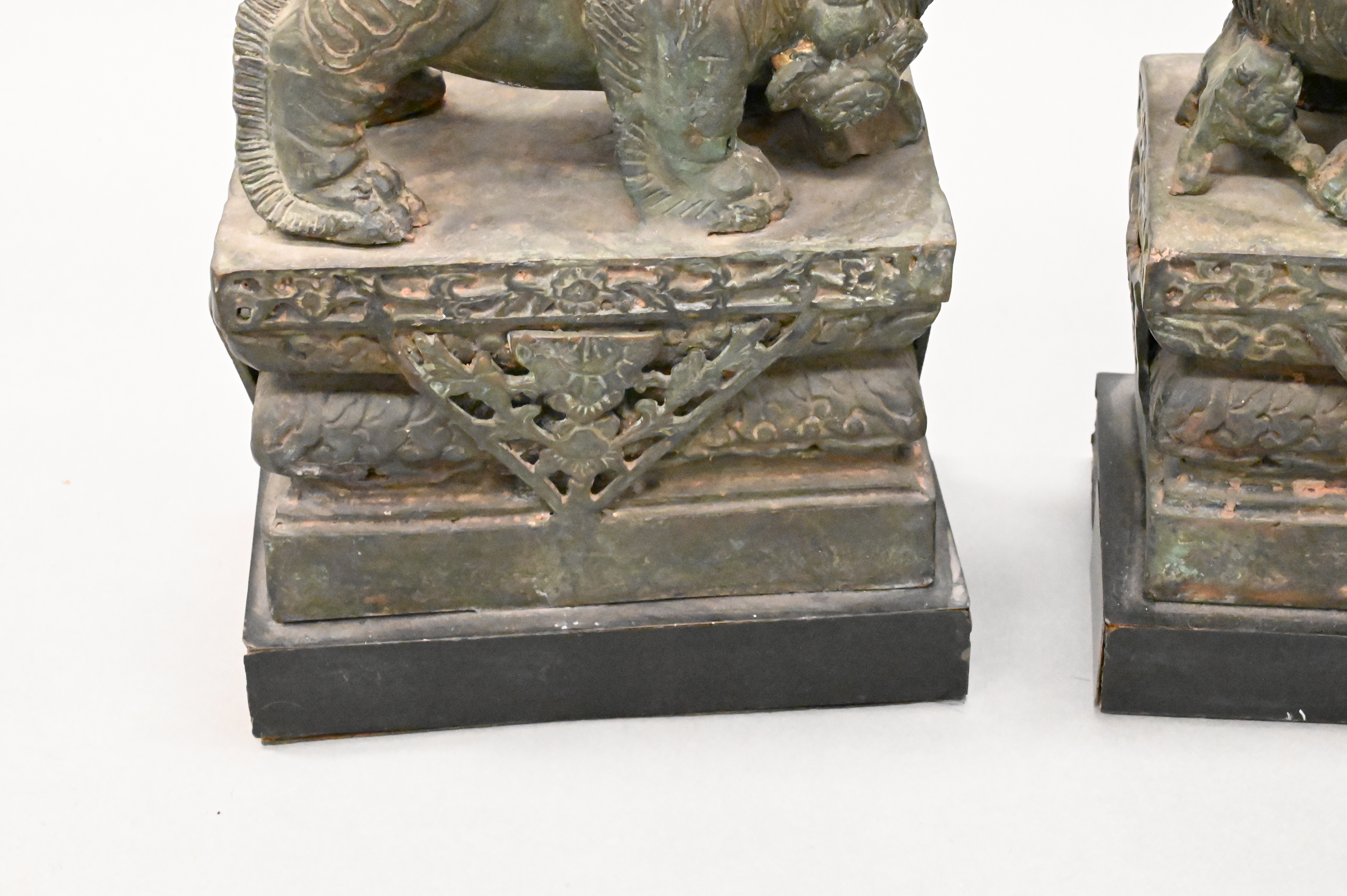 Lot 606: Pair of Bronze Foo Dogs on Pedestal Base