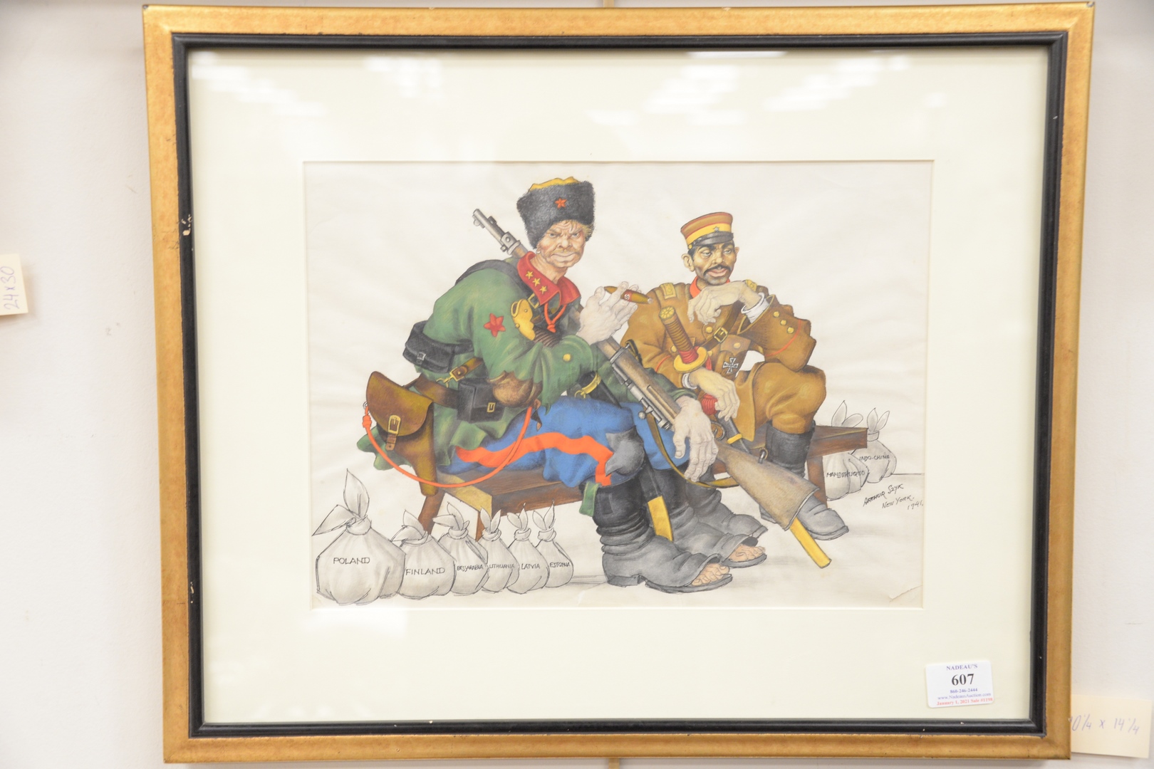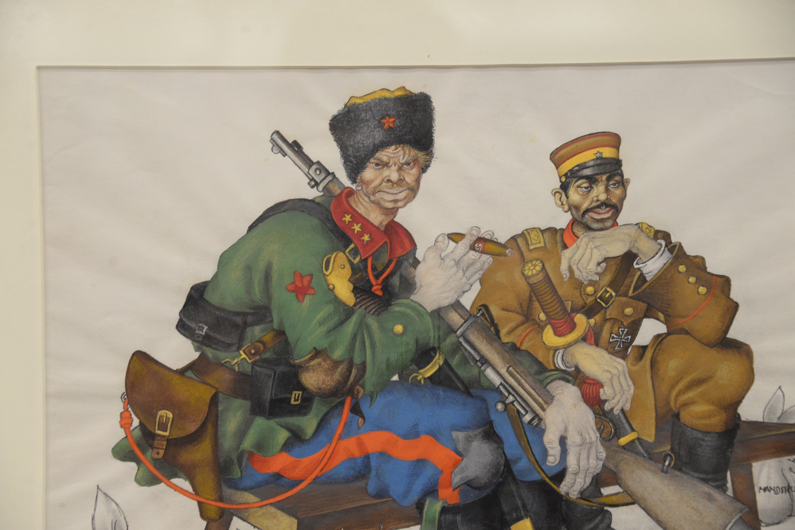 Lot 607: Arthur Szyk 1894 – 1951 The Russian and Japanese spoils of war and the Haile Selassie, Russian Soldier and Tojo watercolor and gou…