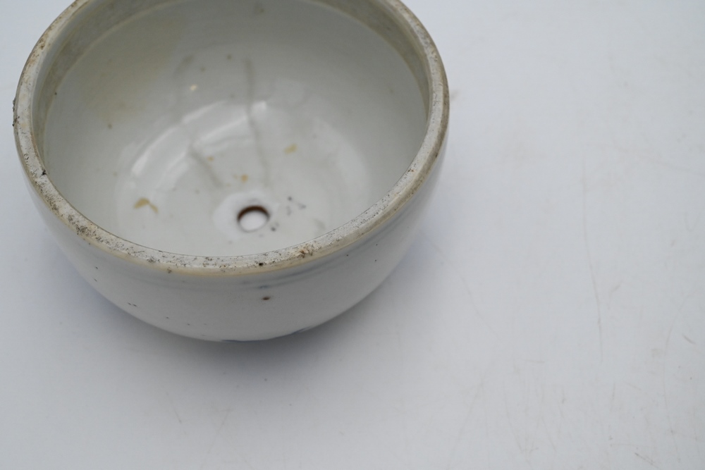 having bright white glaze and blue painted wild flower decoration, finely trimmed glazed edges