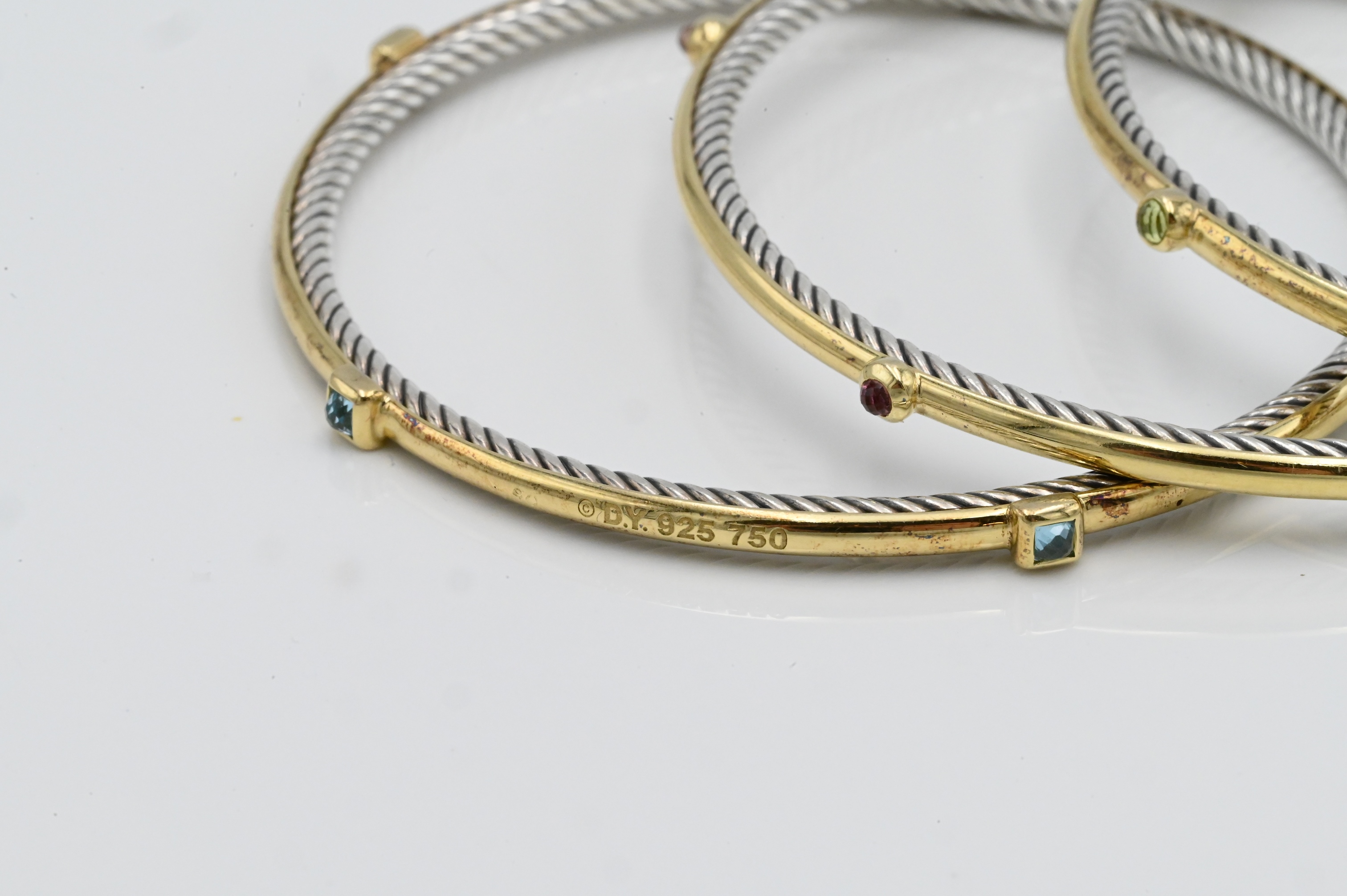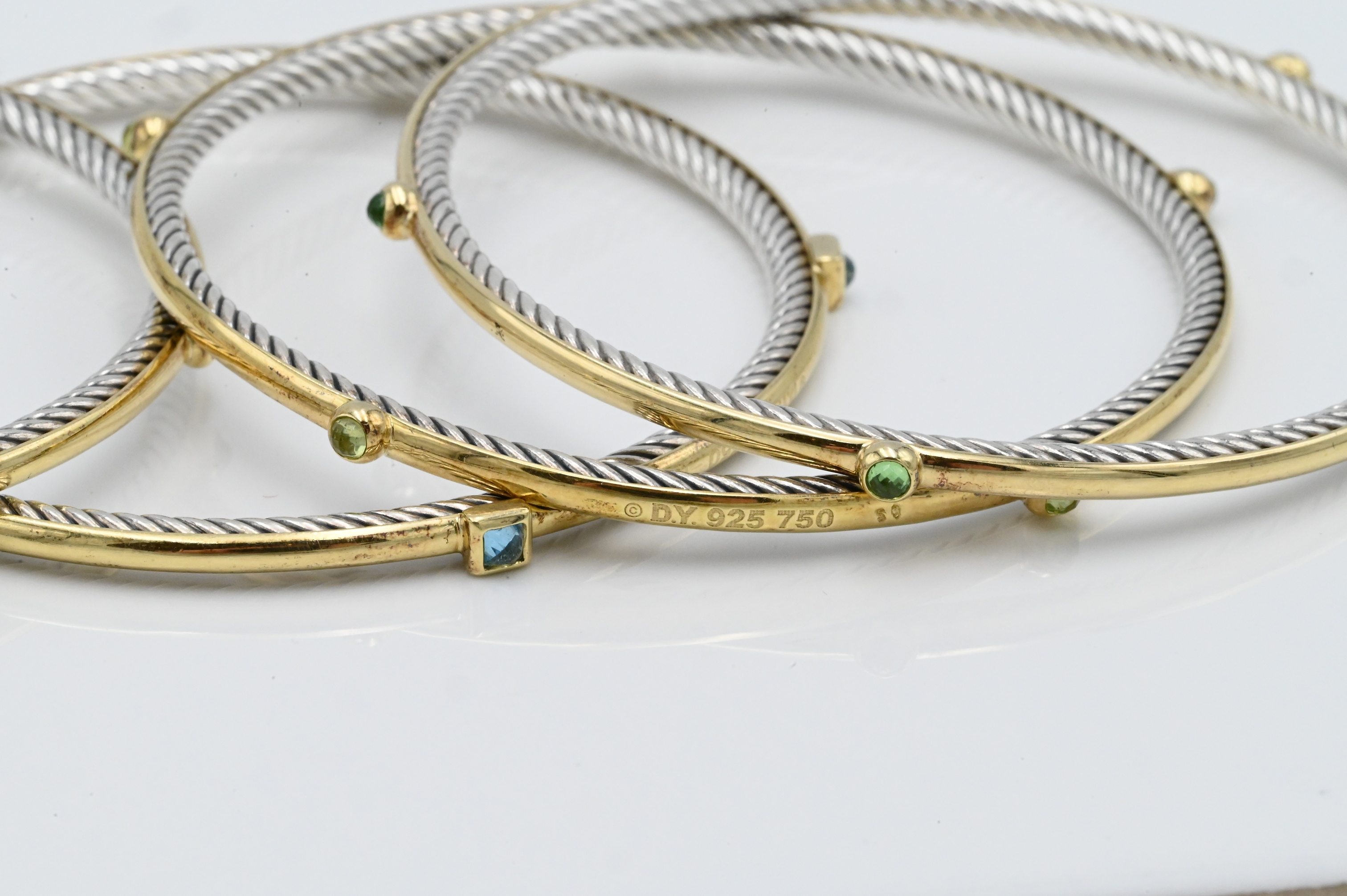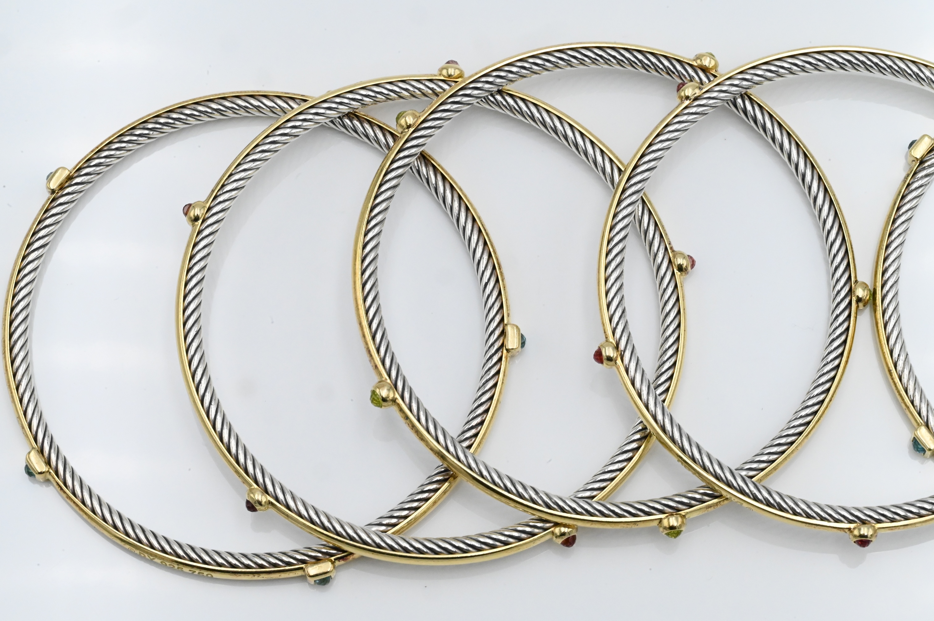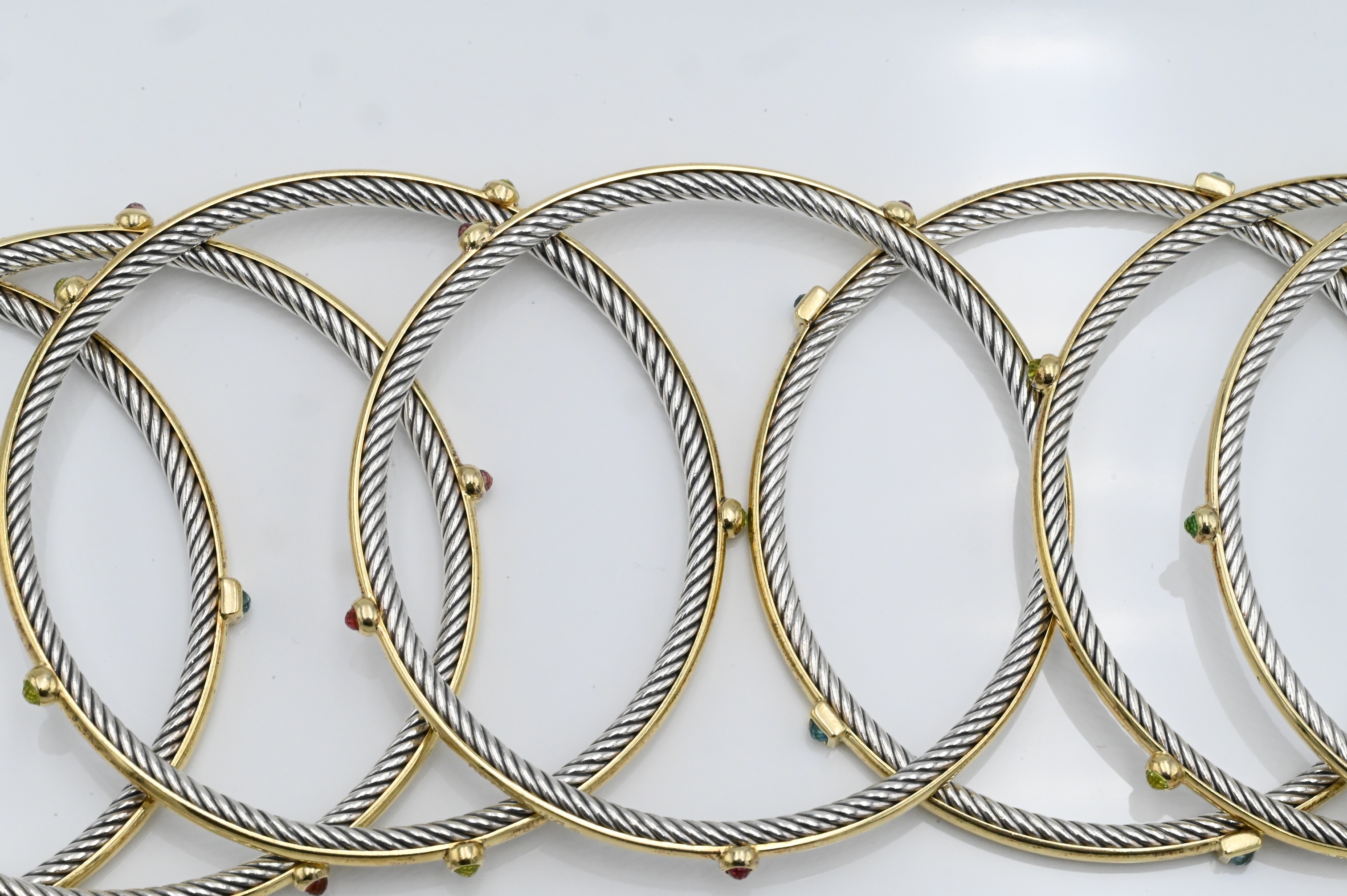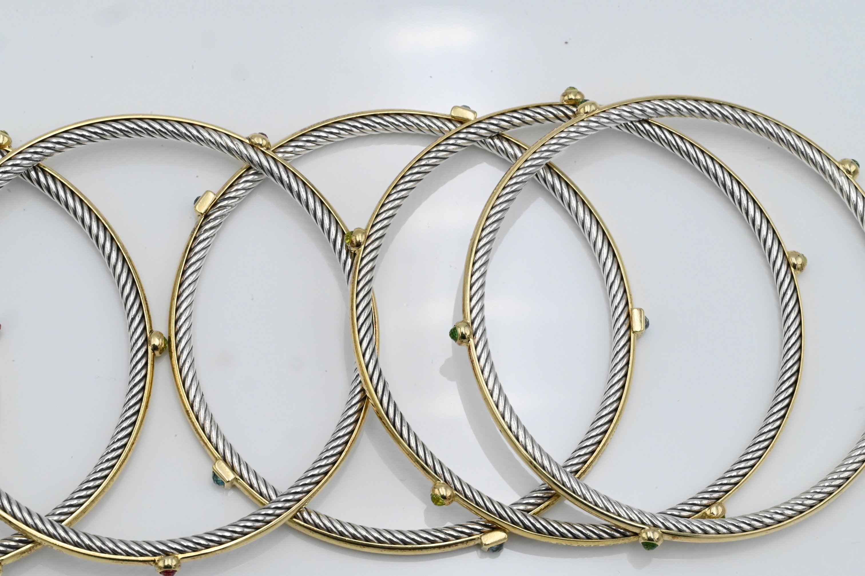 David Yurman Set of Seven 18K Yellow Gold and Sterling Silver Stacking Bracelets