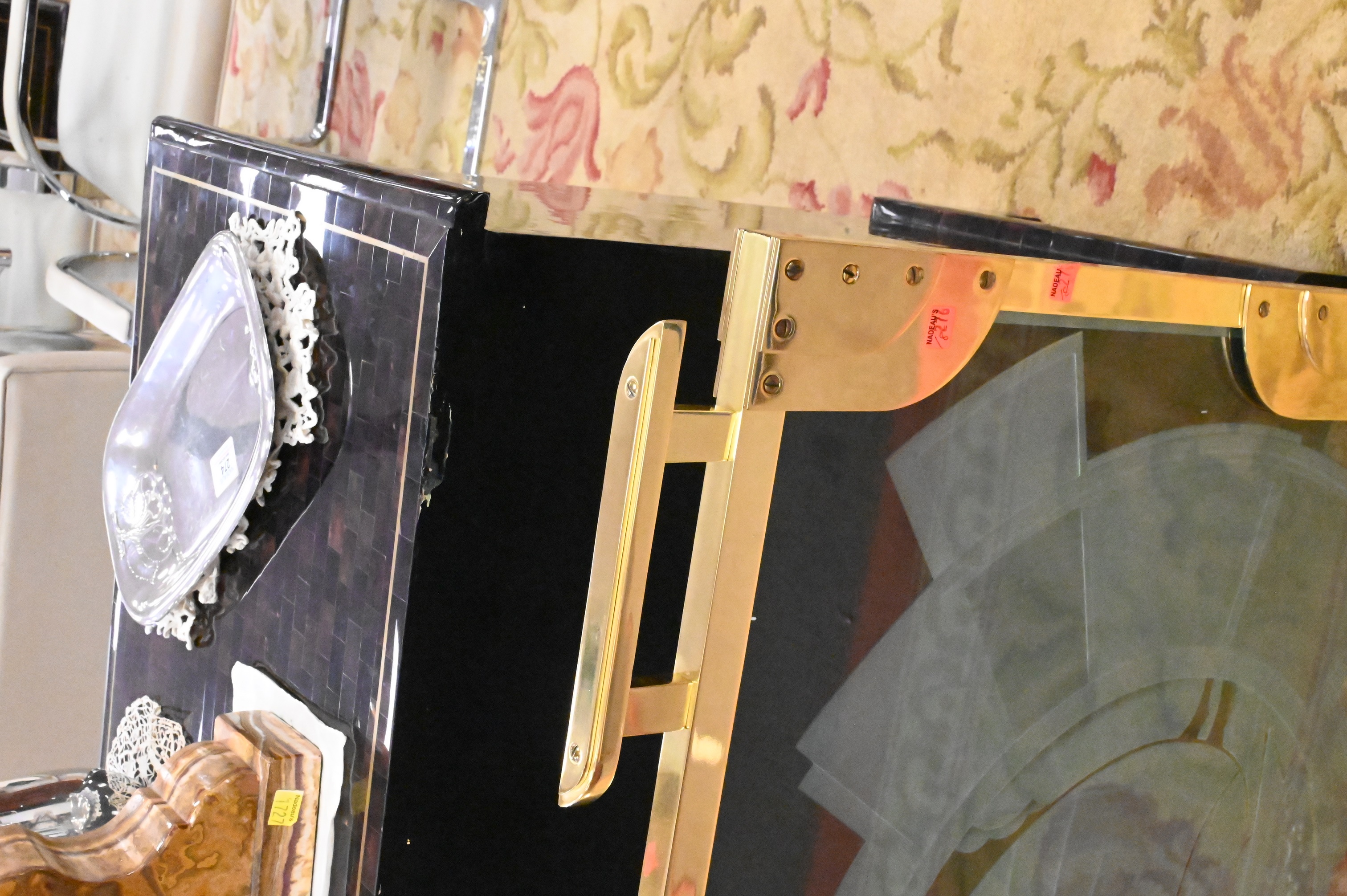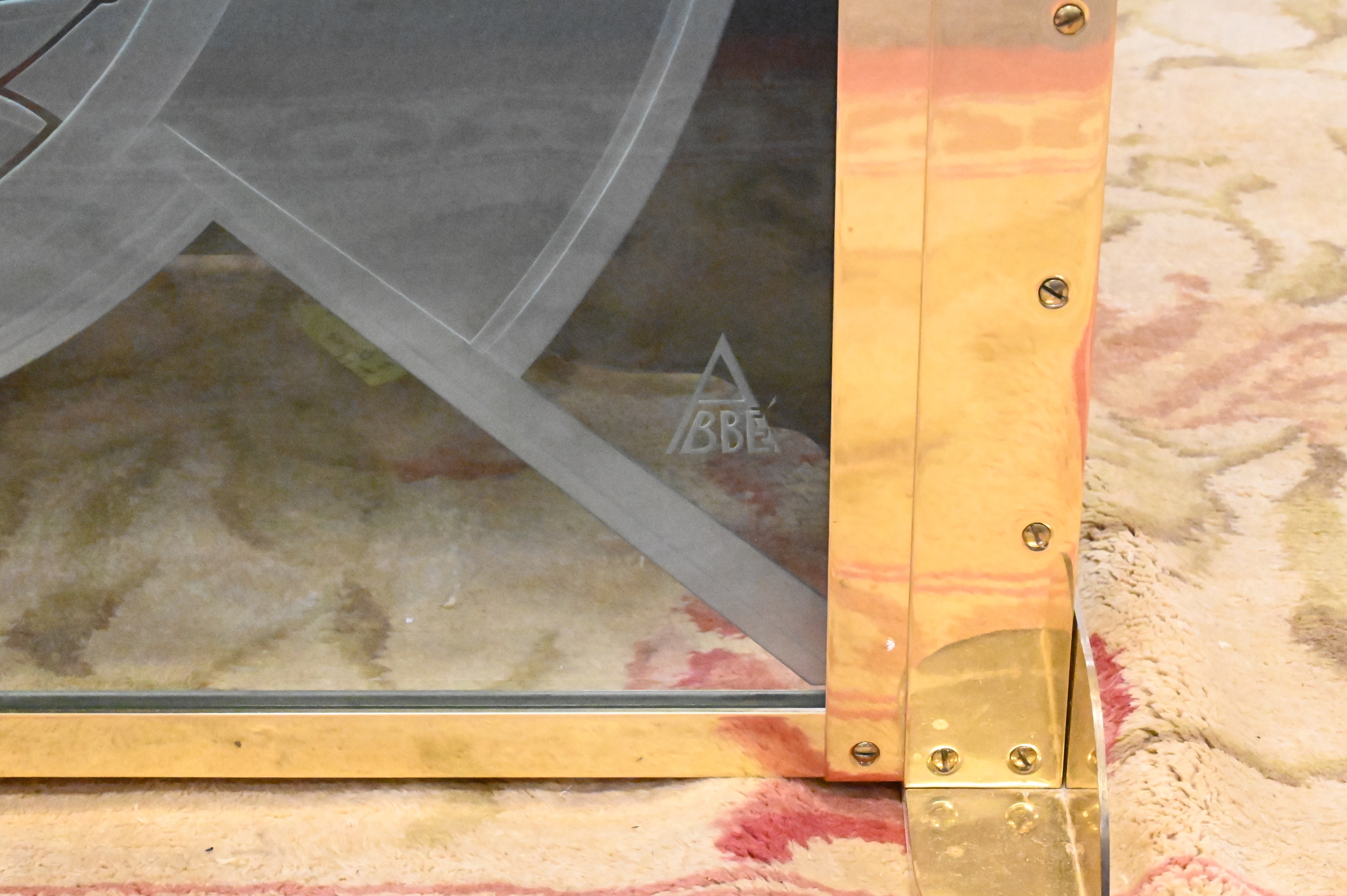 Lot 61: Dennis Abe Art Deco Style Brass and Frosted Glass Fire Screen