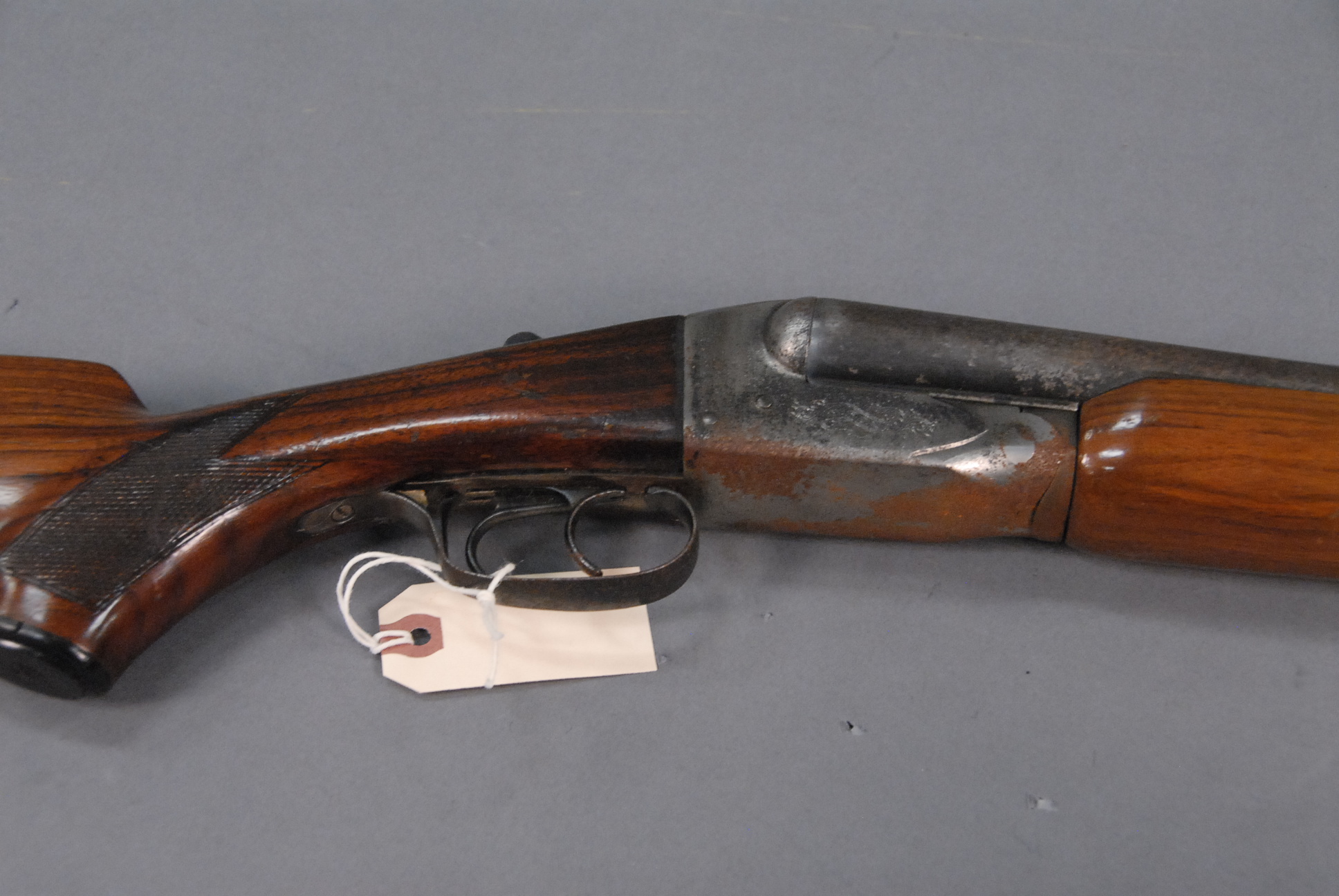 Fox Savage Arms model B side by side shotgun, 12 ga., barrel lg. 30, chamber 2 3/4, as is condition, barrel and receiver worn with rust and pitting, sn WFA1, 329.
