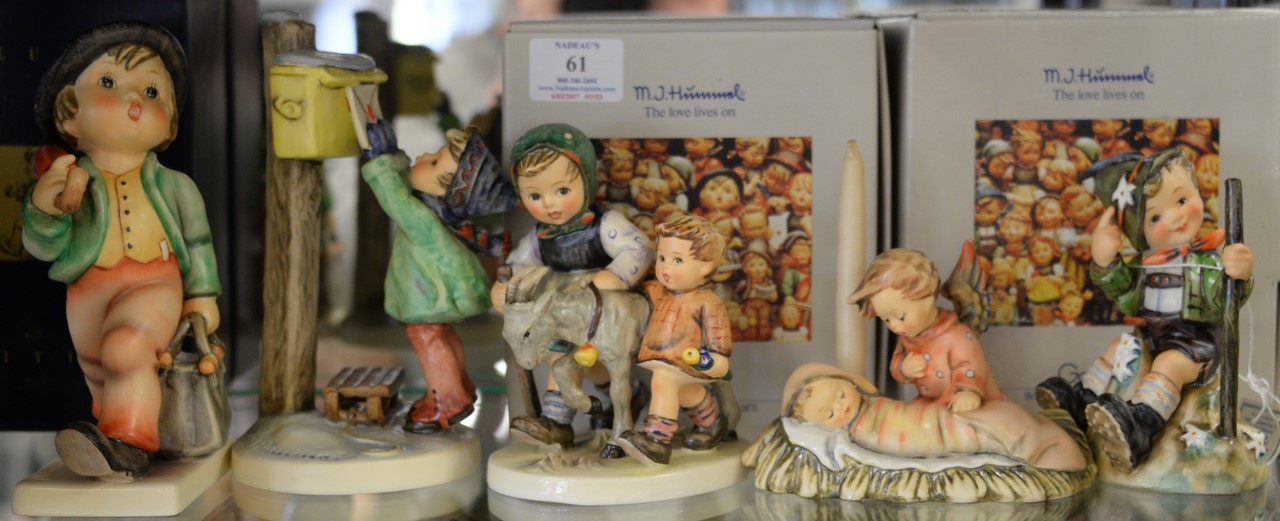 Group of ten Goebel Hummel figures, 7 with original box. ht. 4 1/2in. to 7 1/2in.