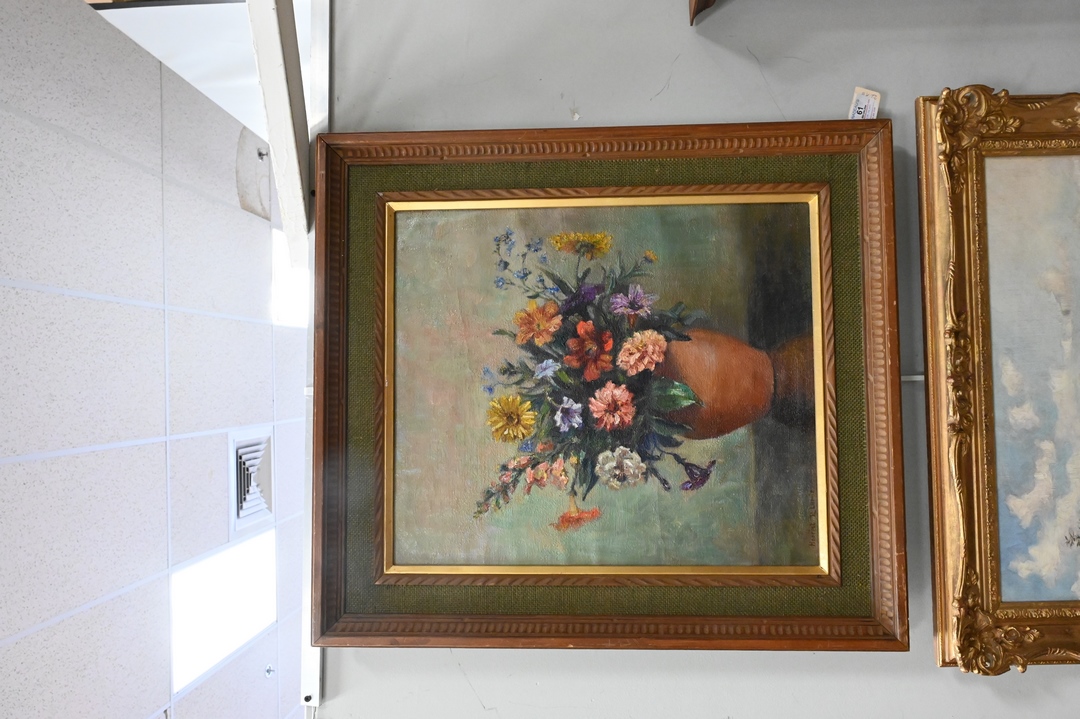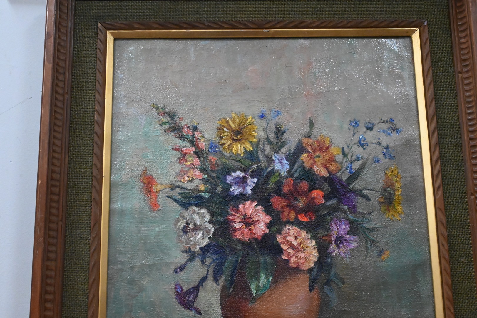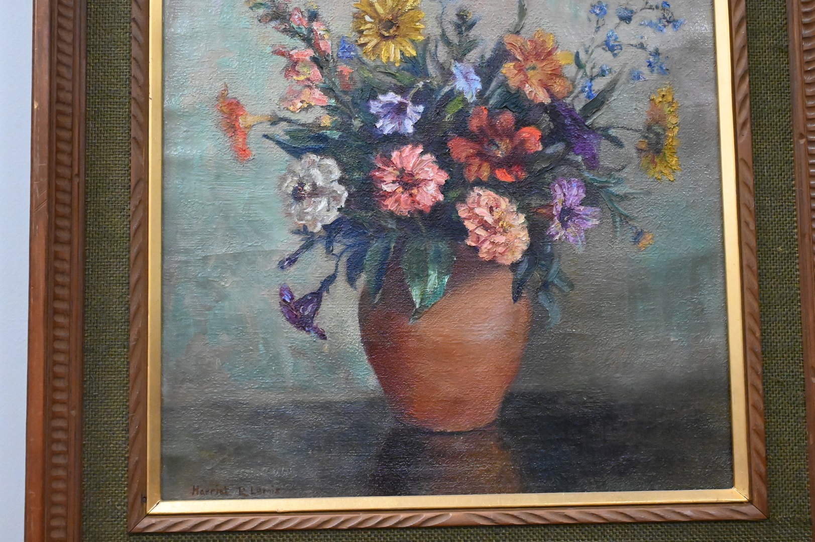 Harriet Randall Lumis (1870 – 1953), still life of flowers in a vase, oil on canvas, signed lower left Harriet R. Lumis, 22″ x 18″.