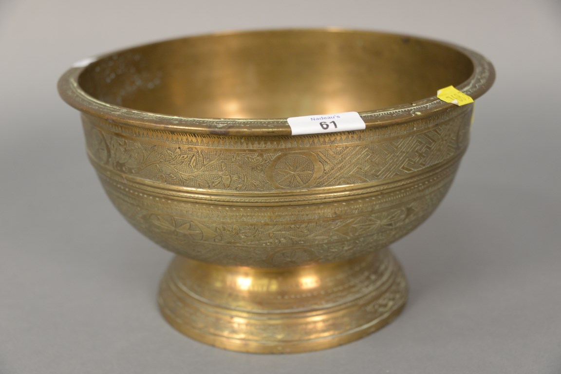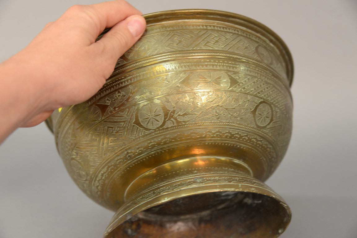 Mid Eastern brass footed bowl, ht. 6 1/2 in. dia. 11 in.