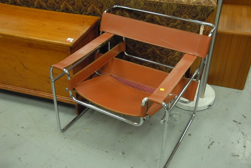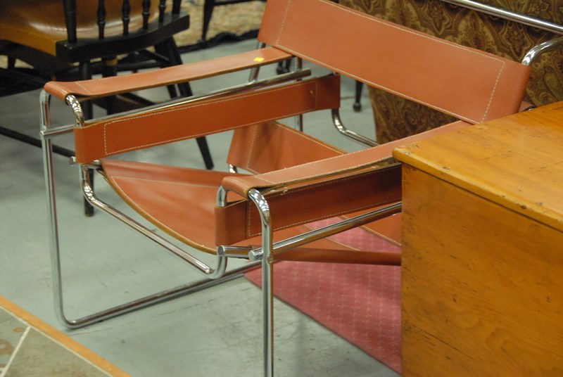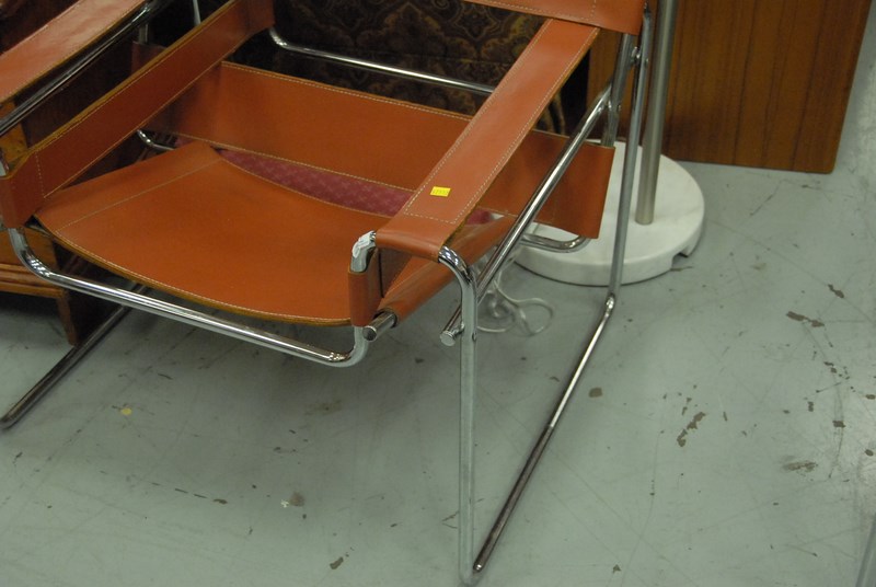 Pair of Mies Van der Rohe leather chairs, wd. 30 in.