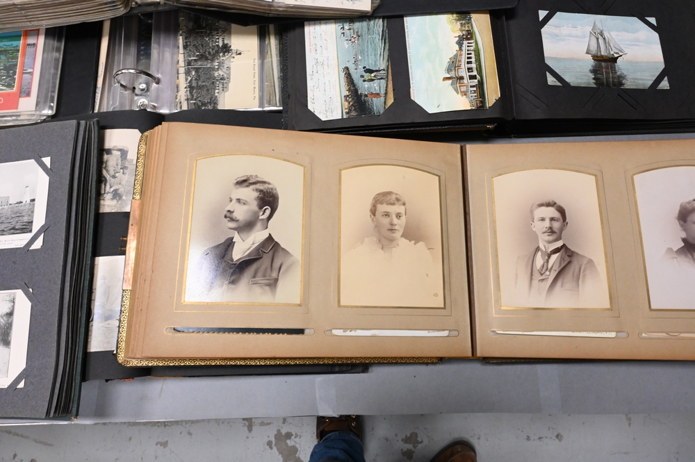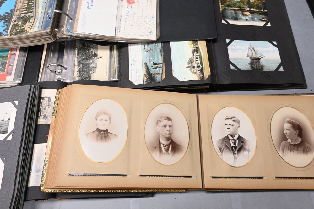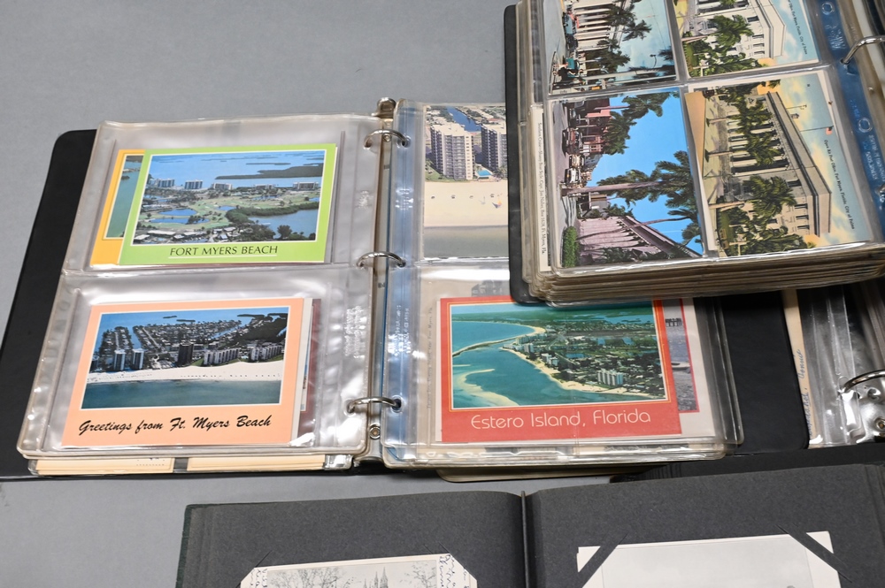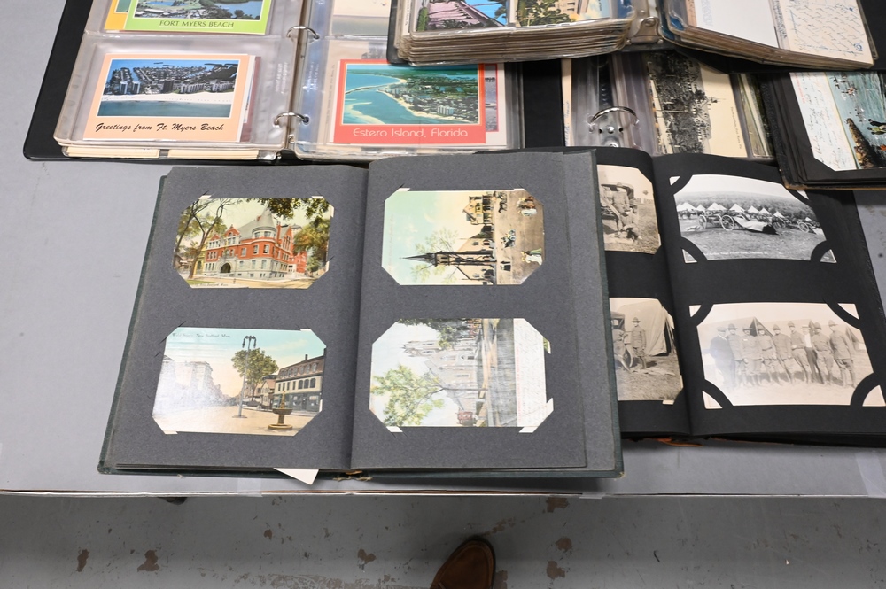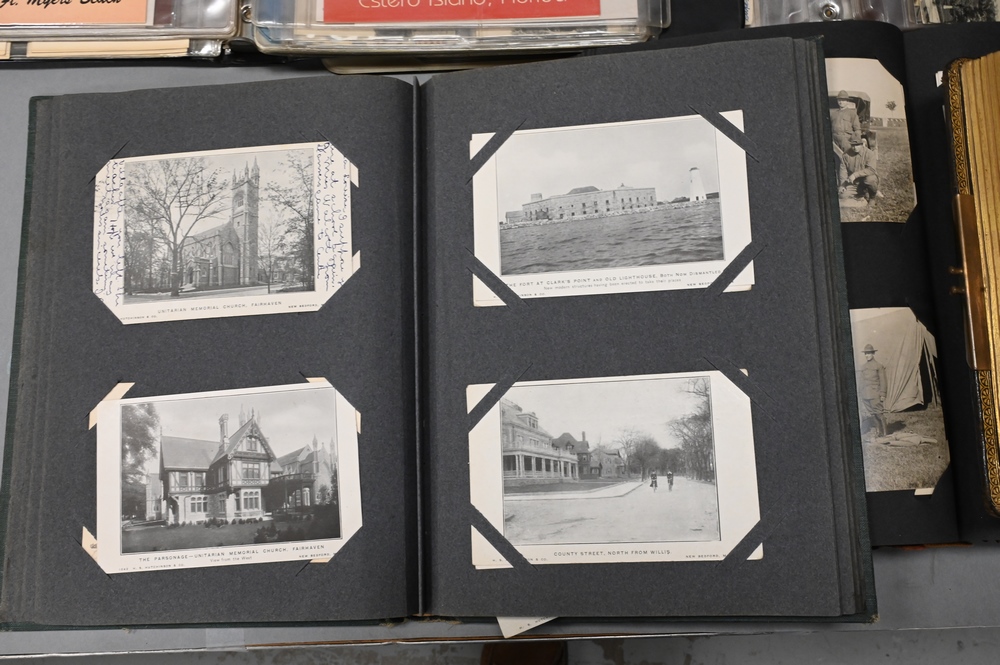Lot 61: Six Postcard Albums, to include picture postcards, WWI era camps, etc., Massachusetts including Whaling in New Bedford, three Florida vintage albums
