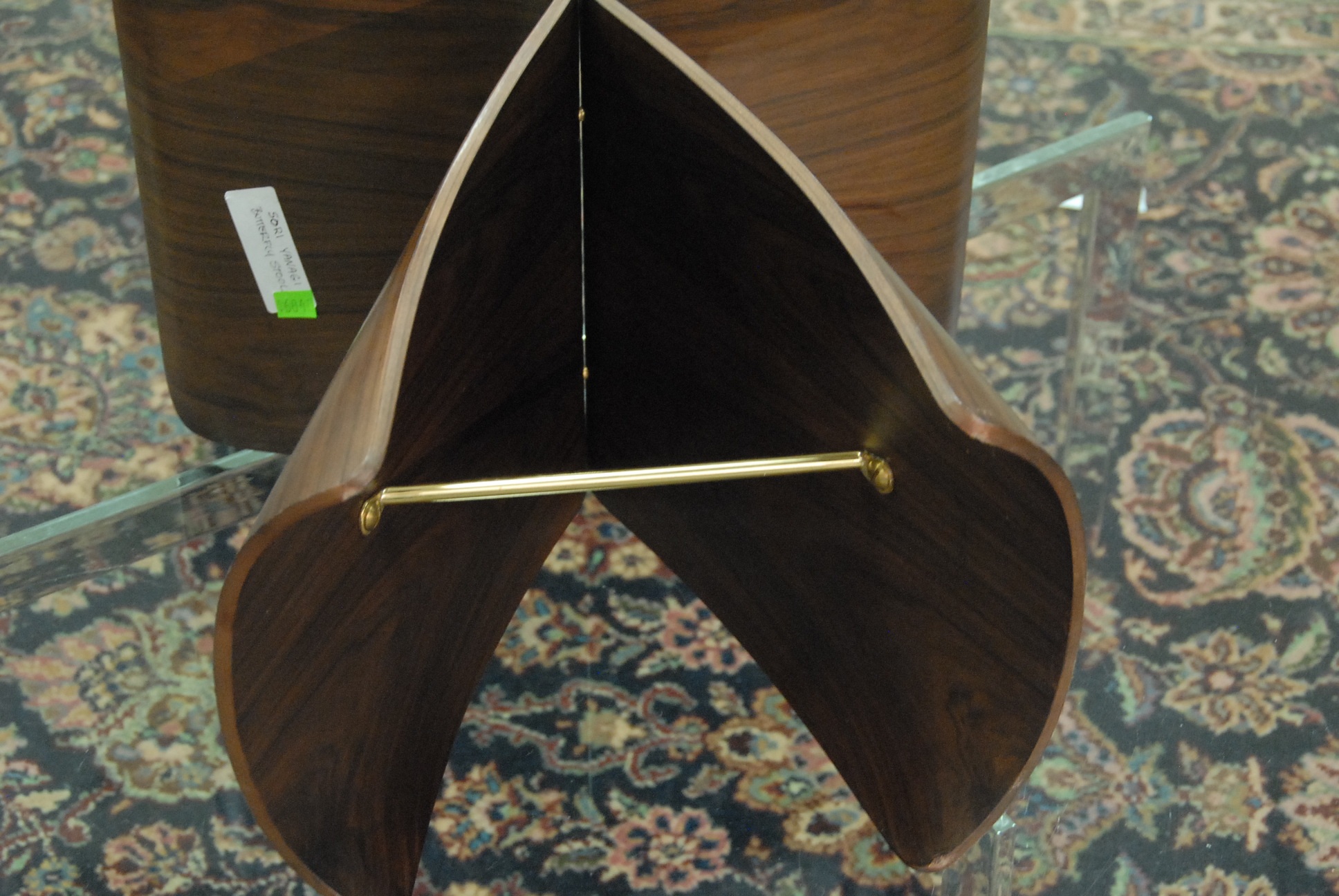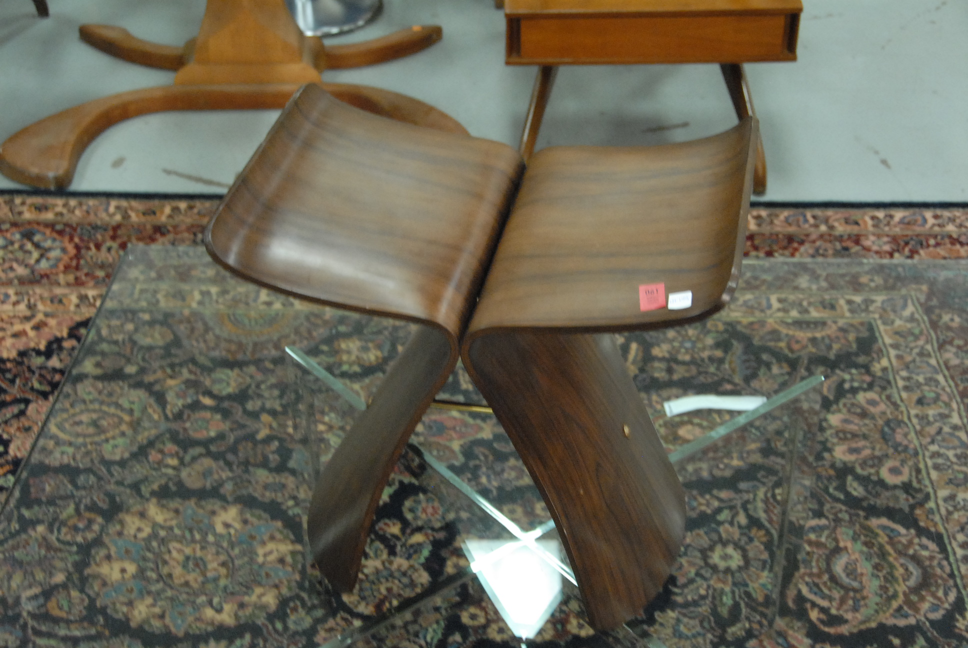 Lot 61: Sori Yanagi Butterfly stool made by Tendo of Japan consisting of two, book matched halves of molded bent-ply rosewood joined by a br…