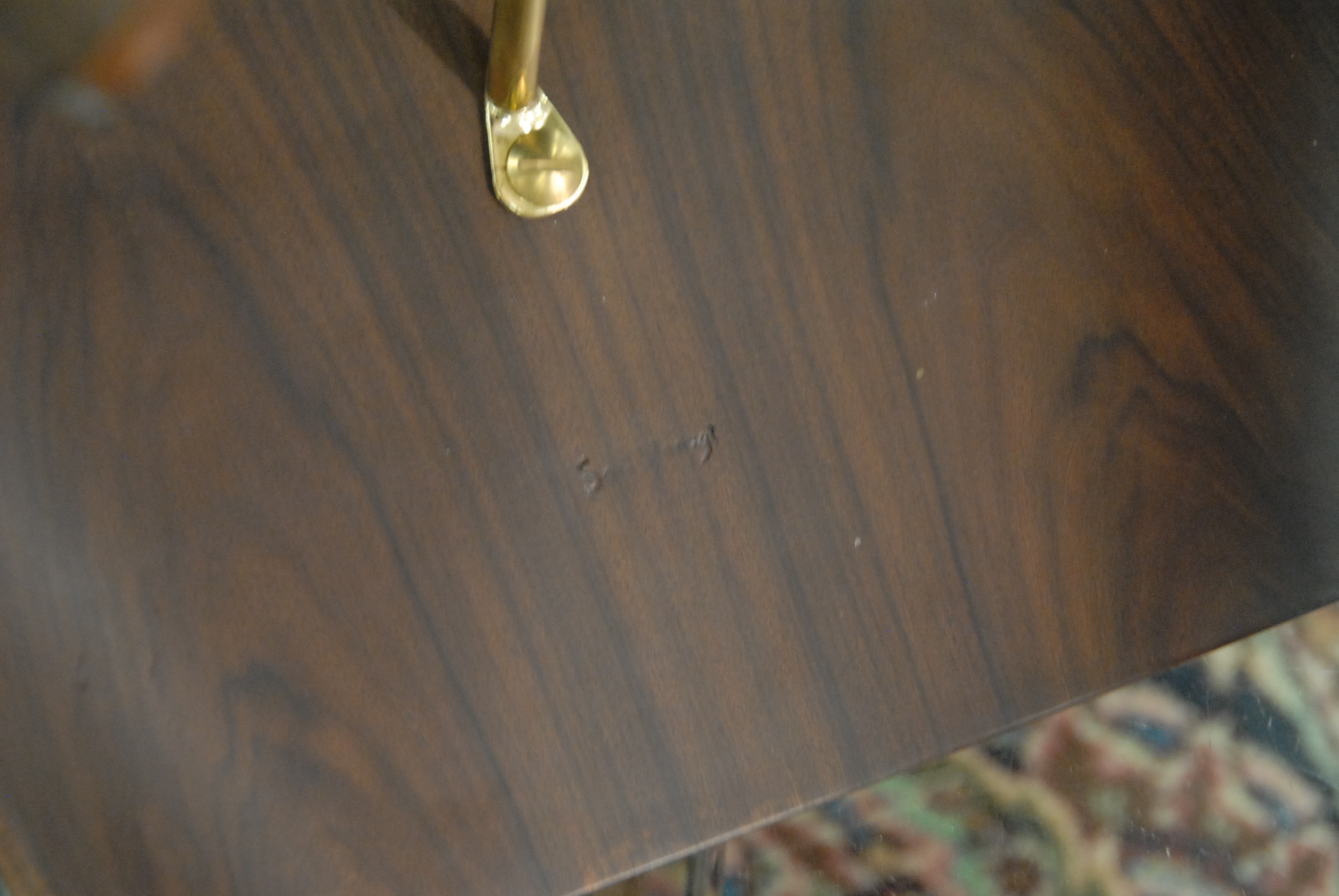 Sori Yanagi Butterfly stool made by Tendo of Japan consisting of two, book matched halves of molded bent-ply rosewood joined by a brass rod stretcher. Branded impressed signature, Sori Yanagi. ht. 16in. wd. 16in.