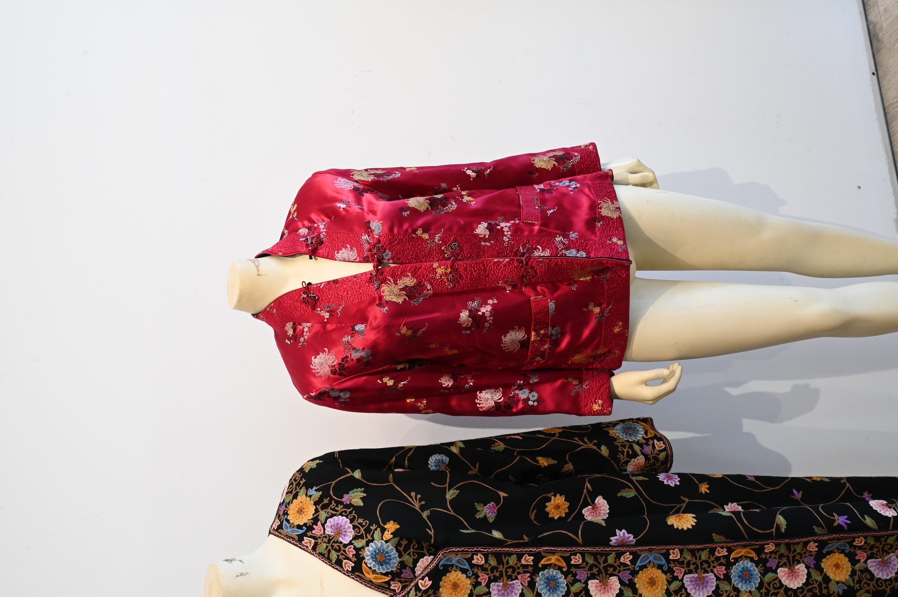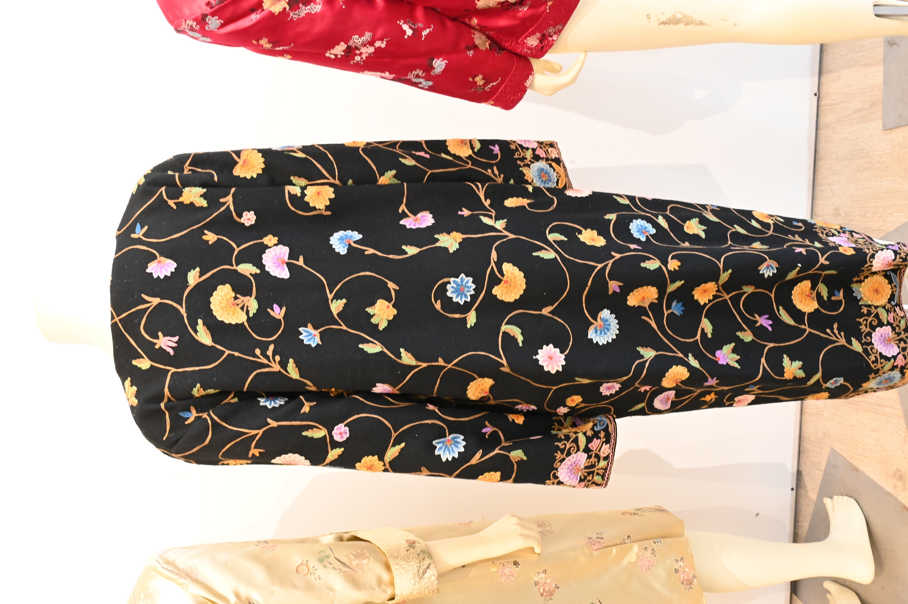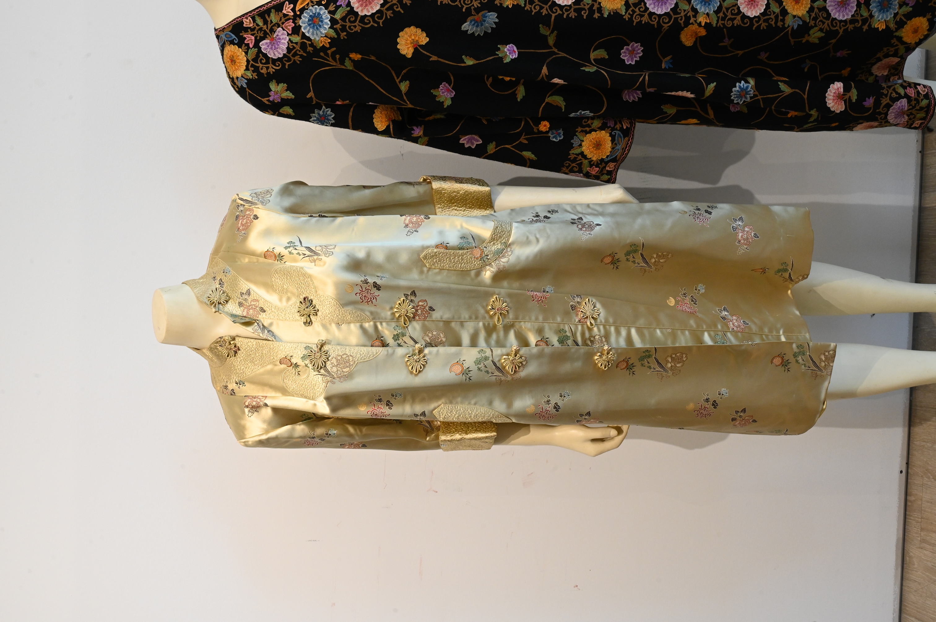 to include red jacket having black interior, black full length robe, gold 3/4 length jacket or robe size 38