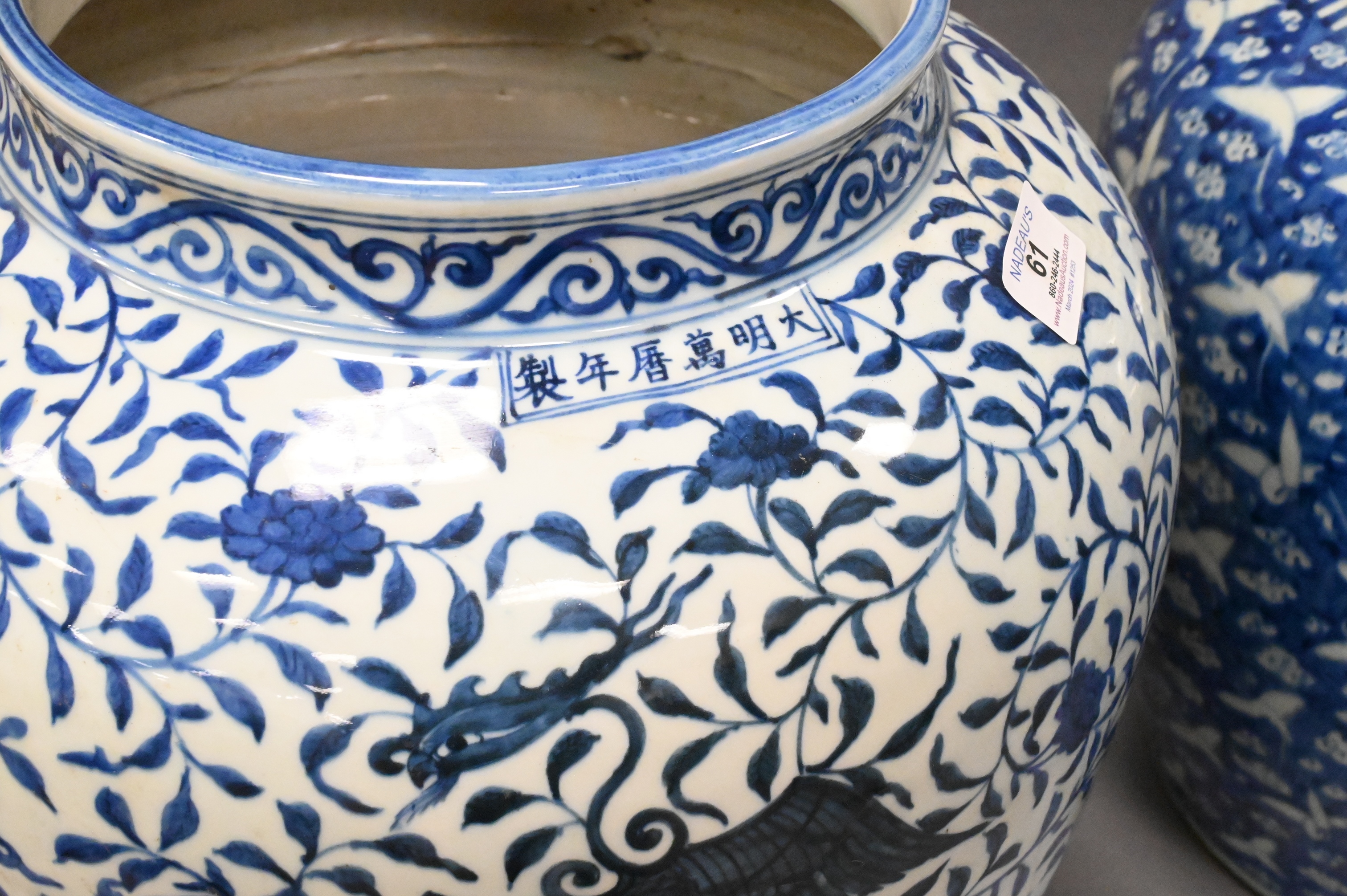 Lot 61: Two Chinese Blue and White Porcelain Baluster Jars
