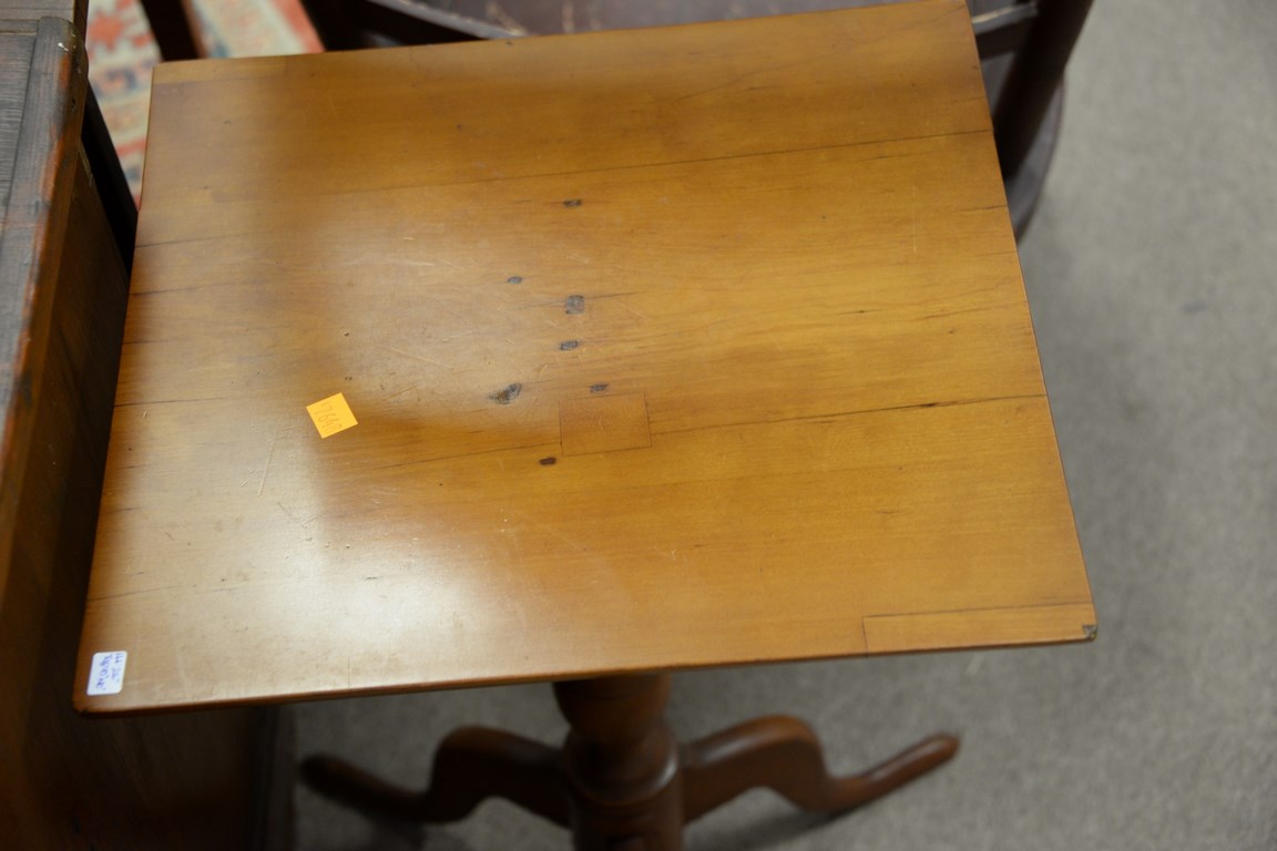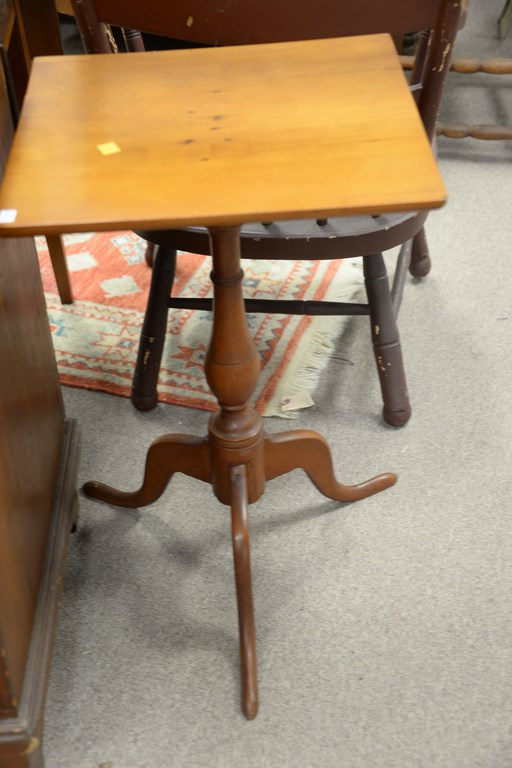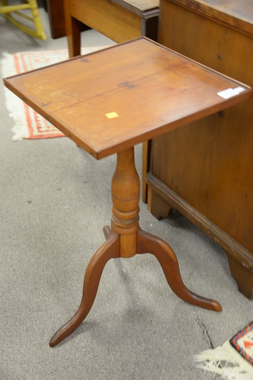 Lot 61: Two Federal candlestands with square tops, one top molded, late 18th – early 19th century. ht. 25 1/2 in. top: 14 1/2 x 16 1/2 an…