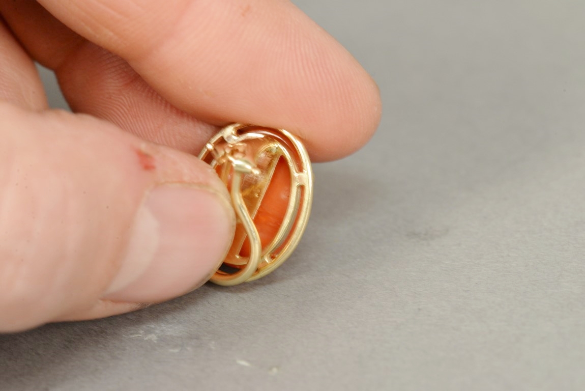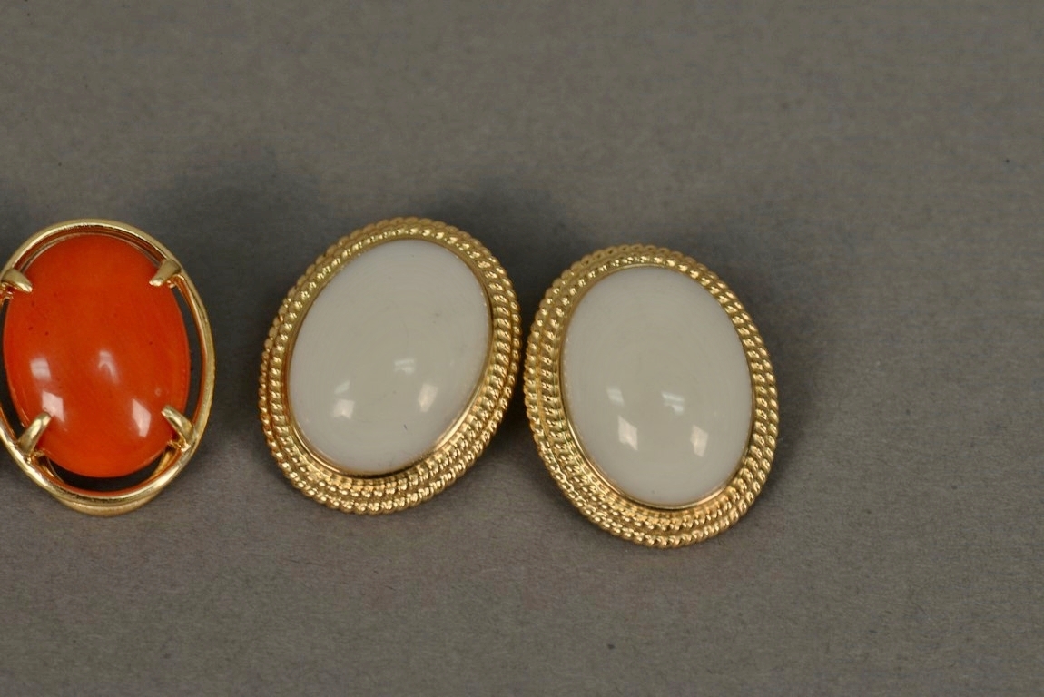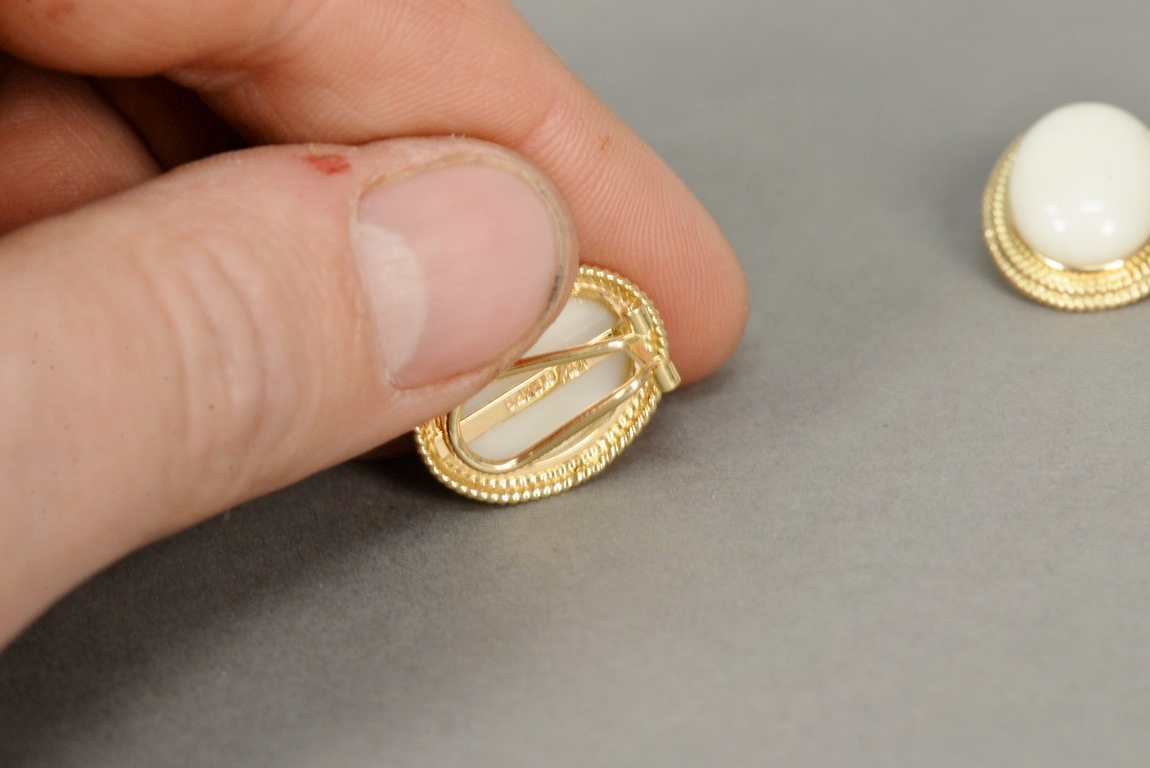 Two pairs of 14K and coral earrings, one white coral marked Gumps and one red coral.