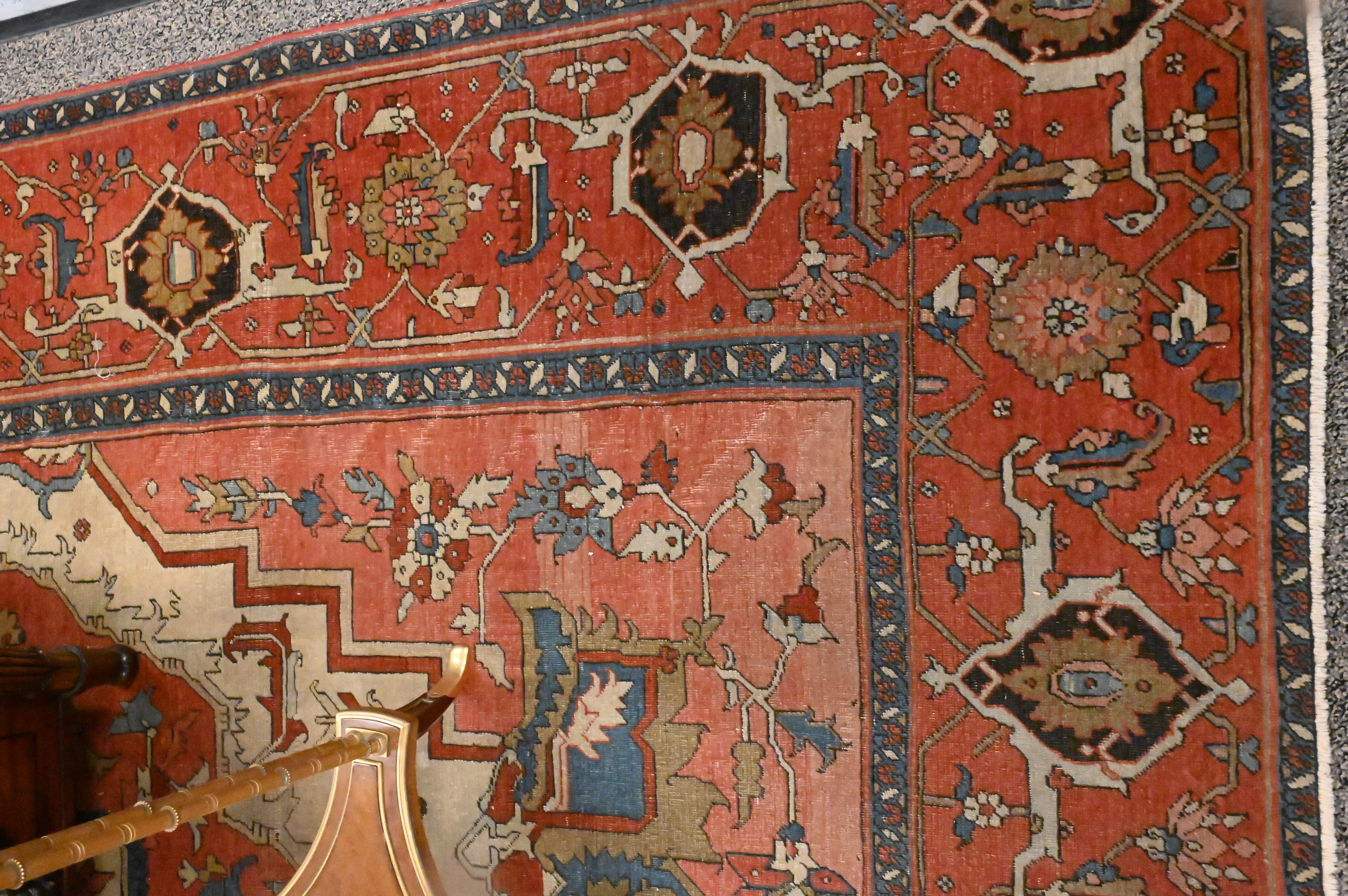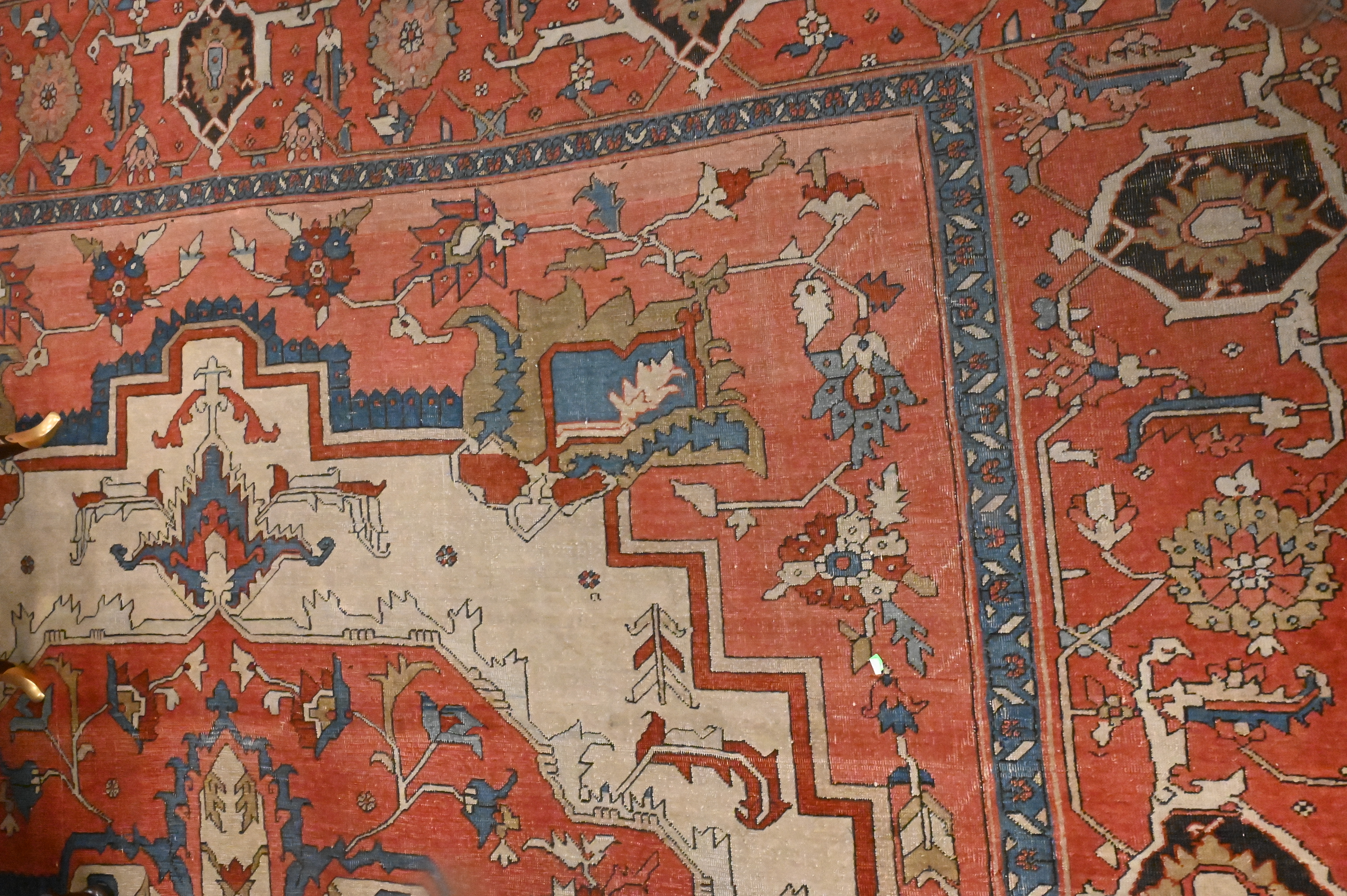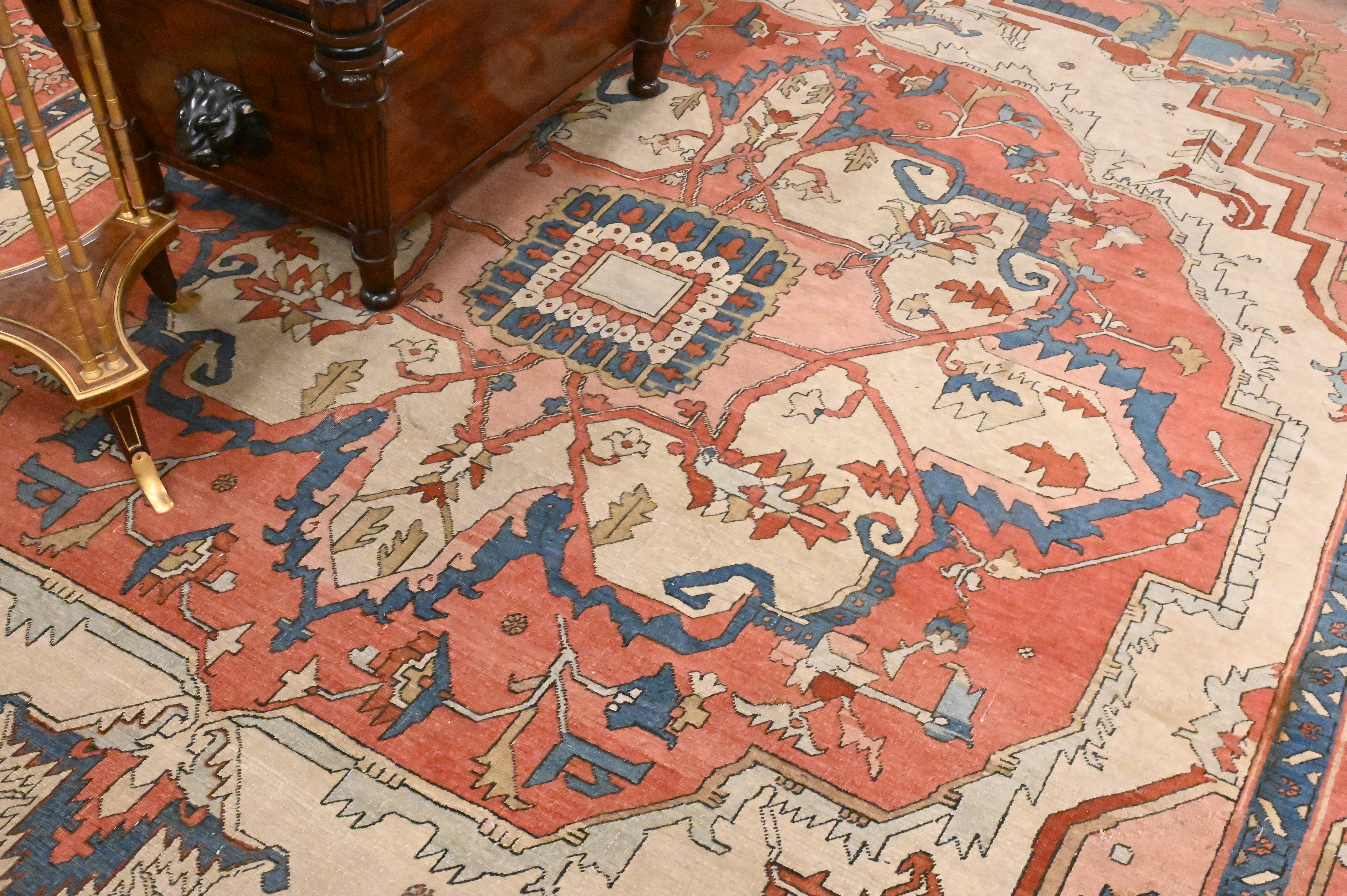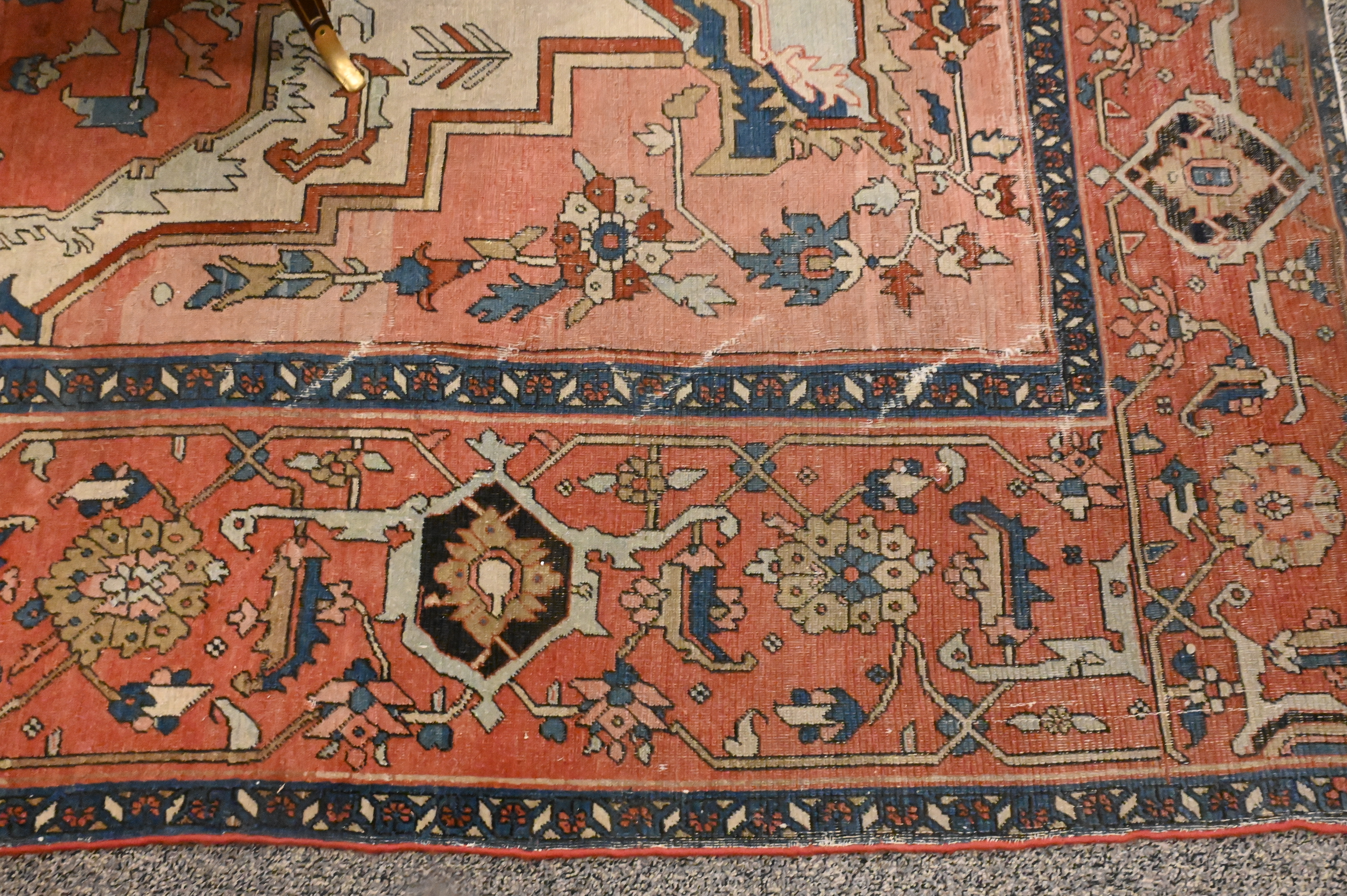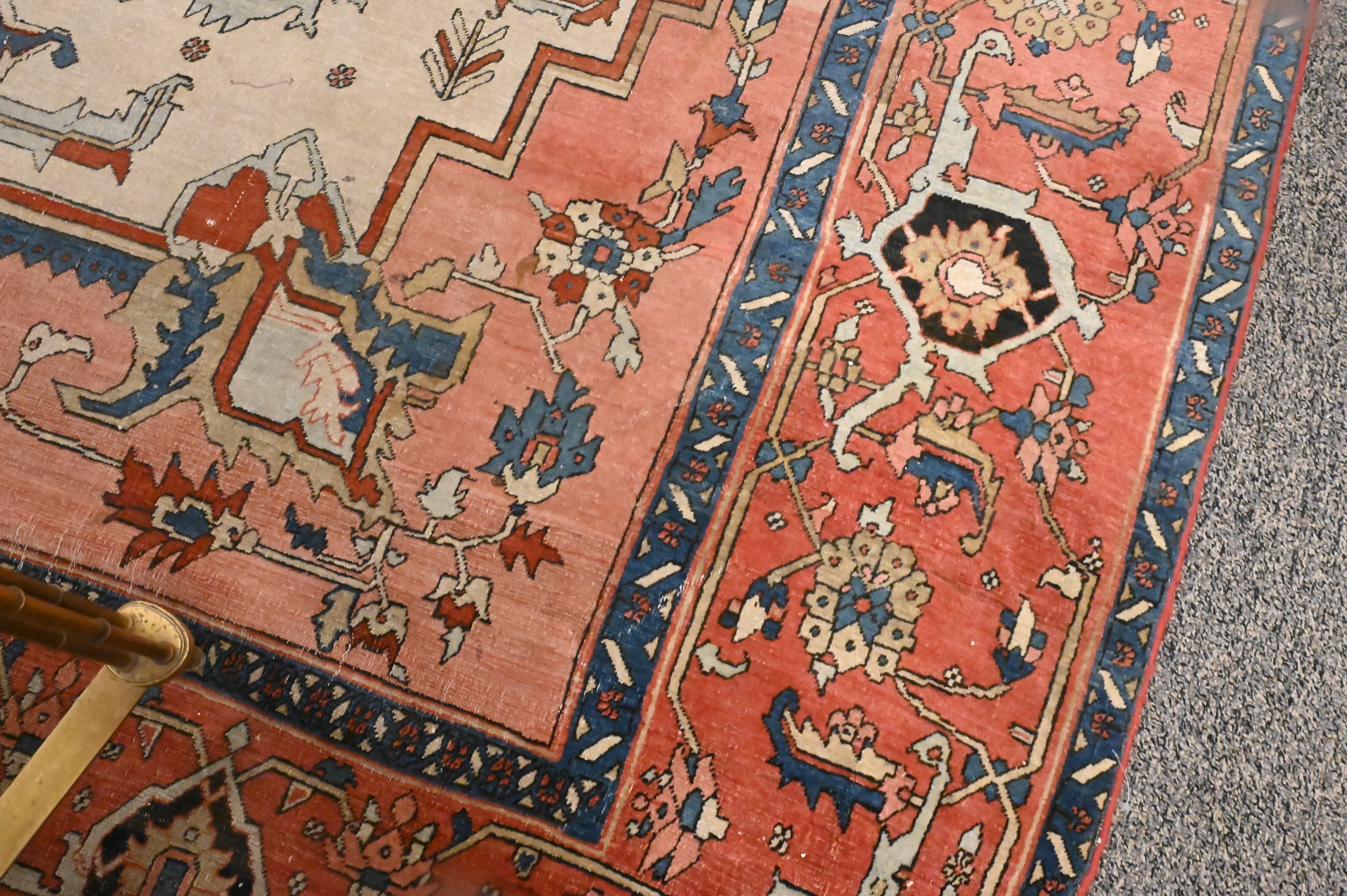 Serapi Oriental Carpet large border, probably late 19th century, overall low 9′ x 11′ 5″