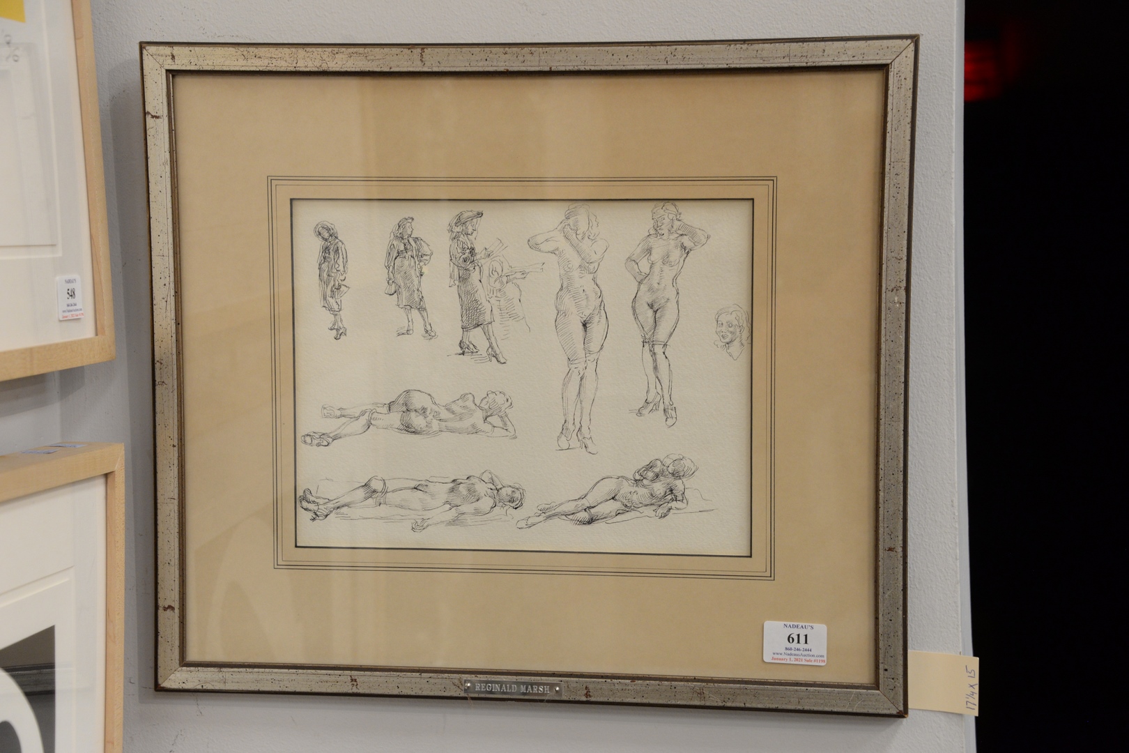 Lot 611: Reginald Marsh 1898 – 1954 Figure Studies ink on paper unsigned ACA Galleries, Inc., New York label verso sight size: 8 1/2 x 1…