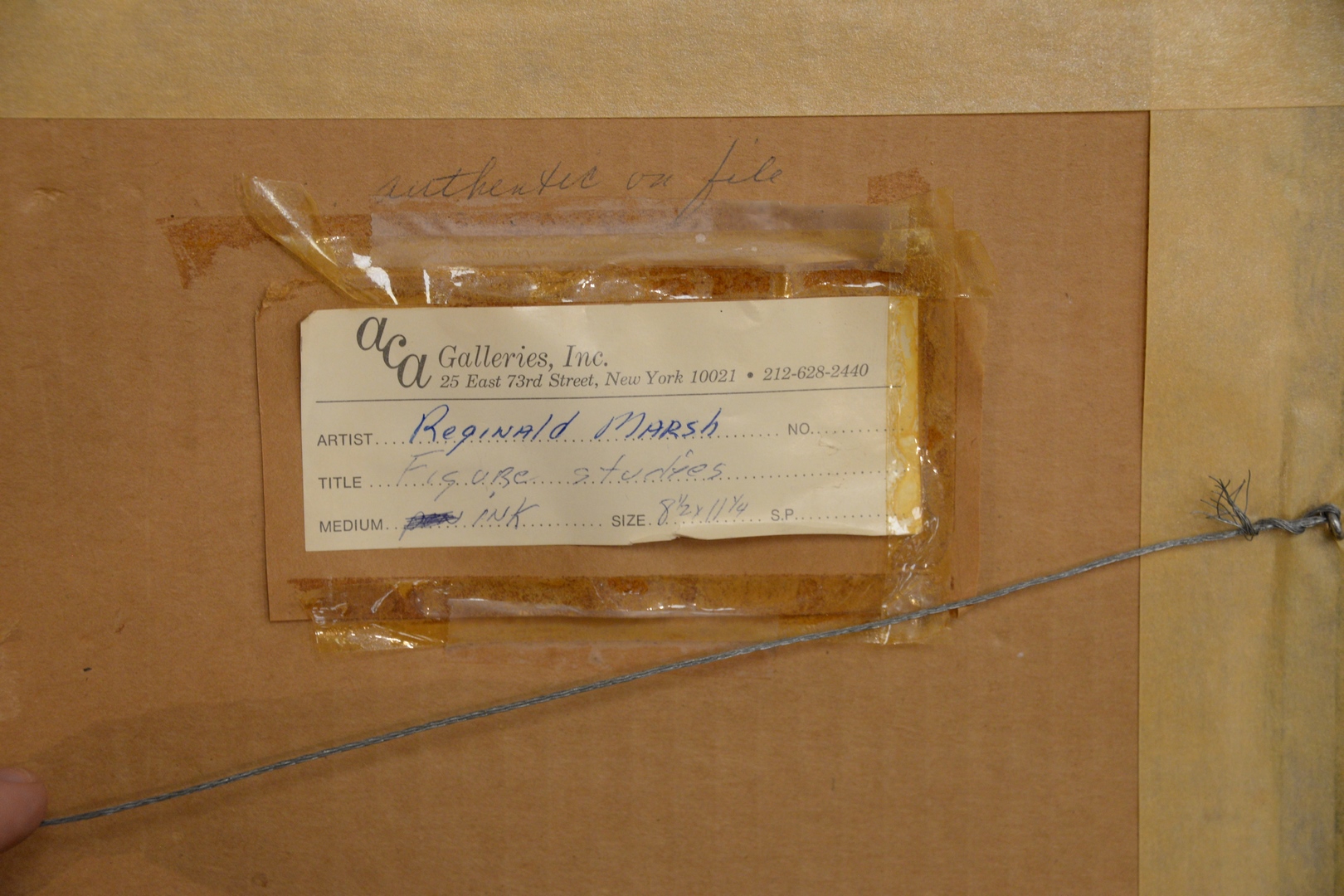 ACA Galleries, Inc., New York label verso