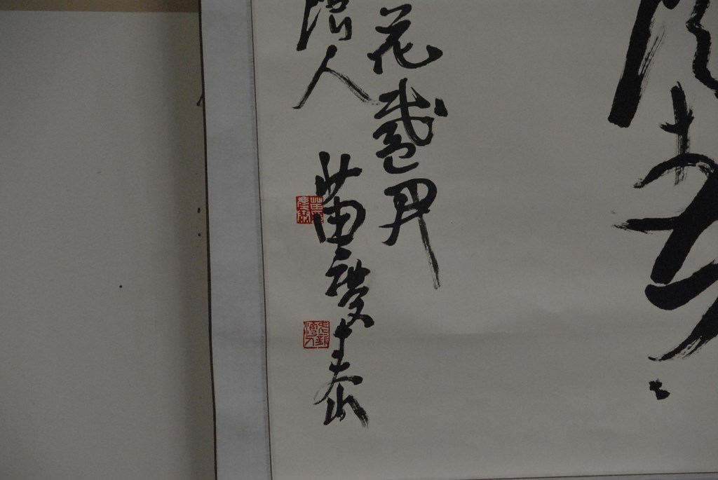 Two Oriental scrolls: One of characters. 37 x 19 One of landscape. 13 1/2 x 13 1/2