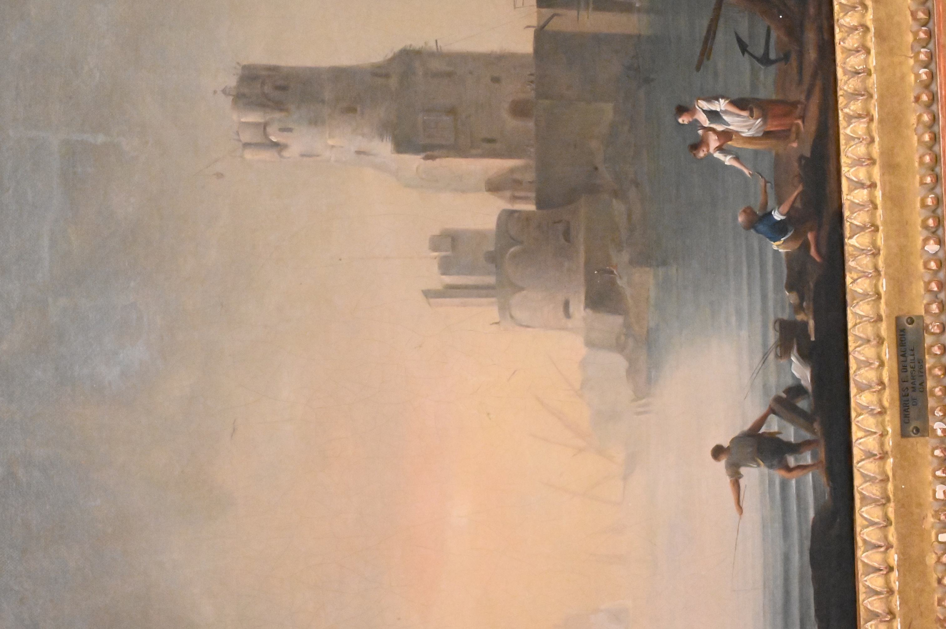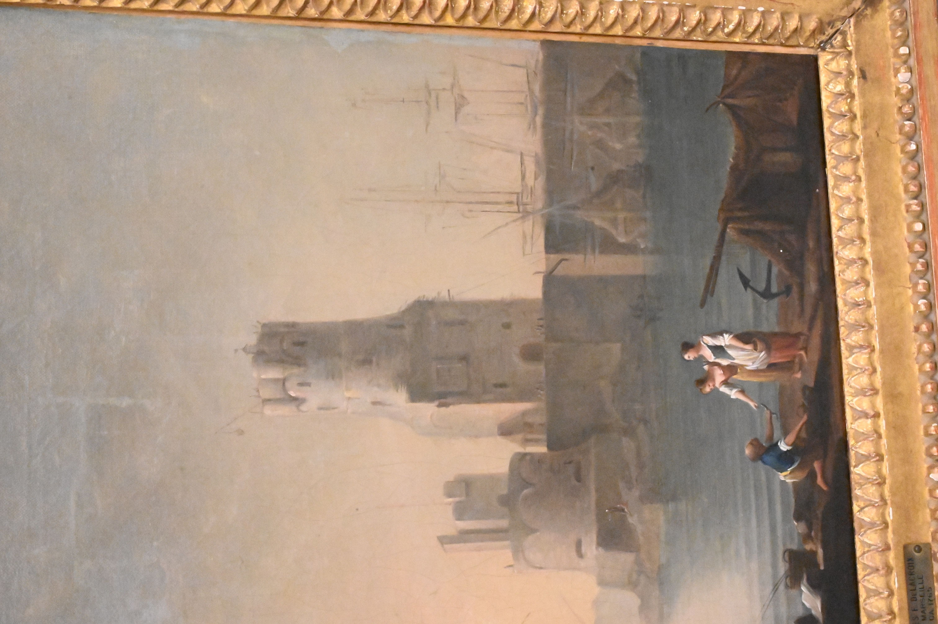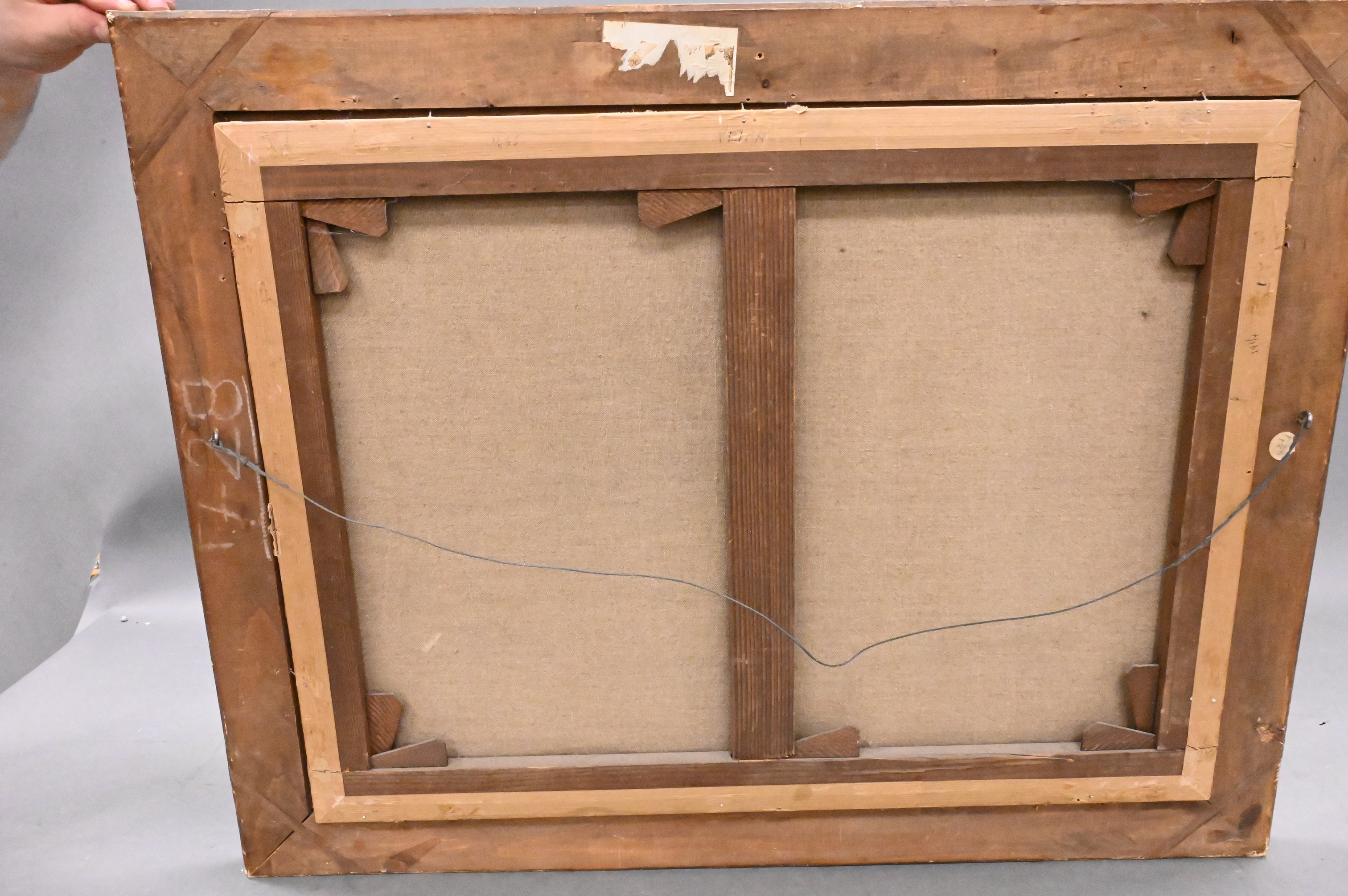 Condition: Relined and restretched canvas, inpainting, repairs to canvas, large repair to center left, craquelure