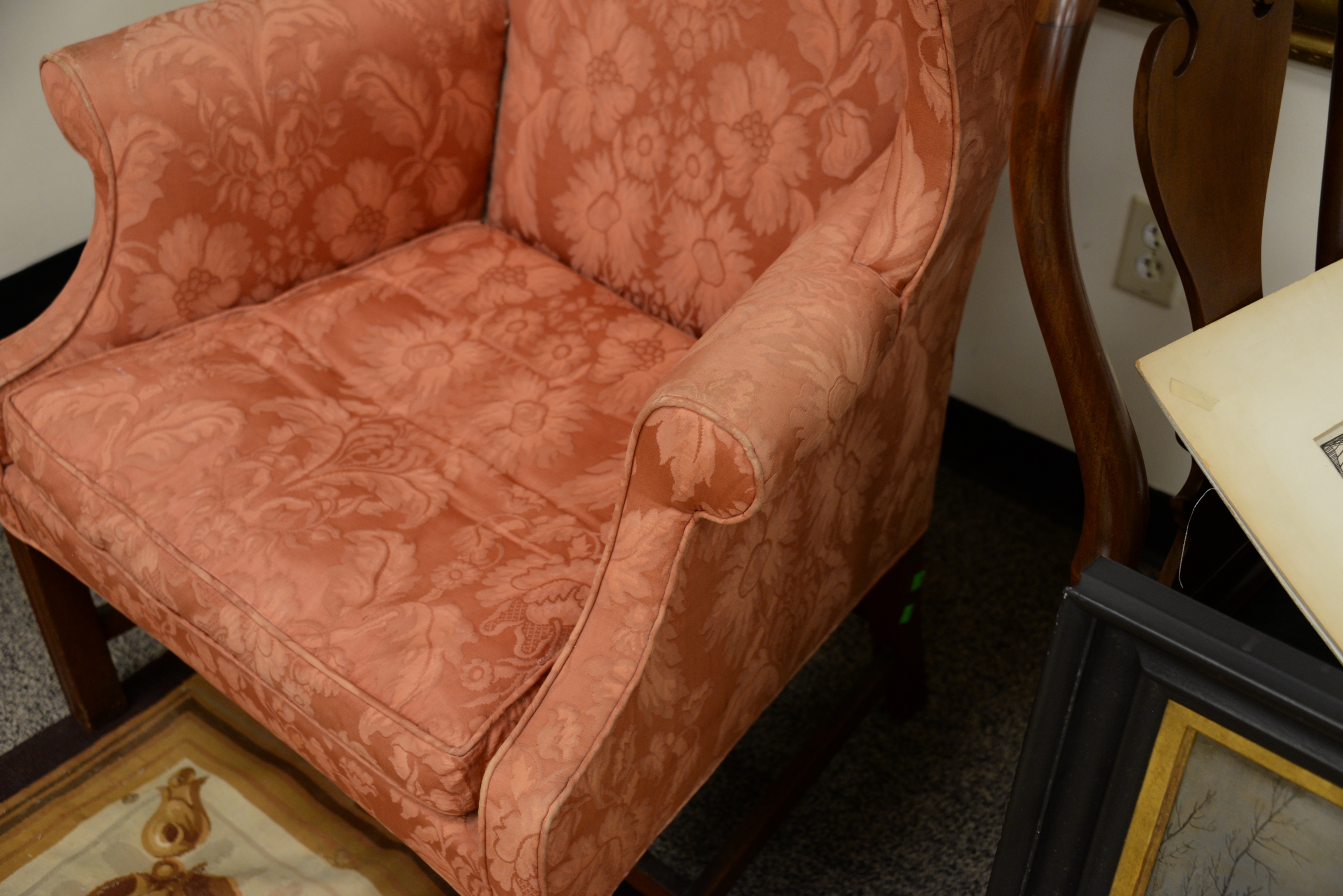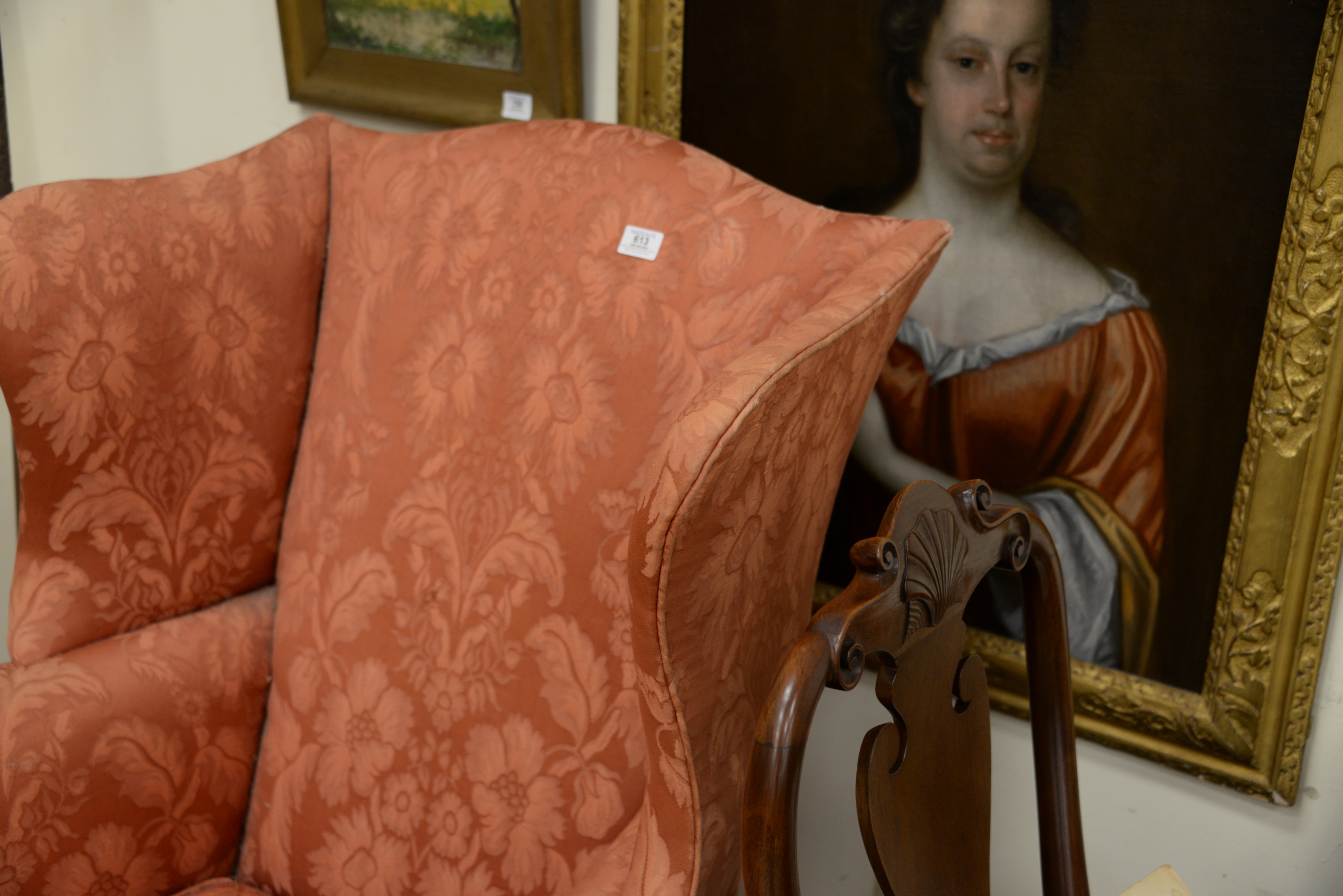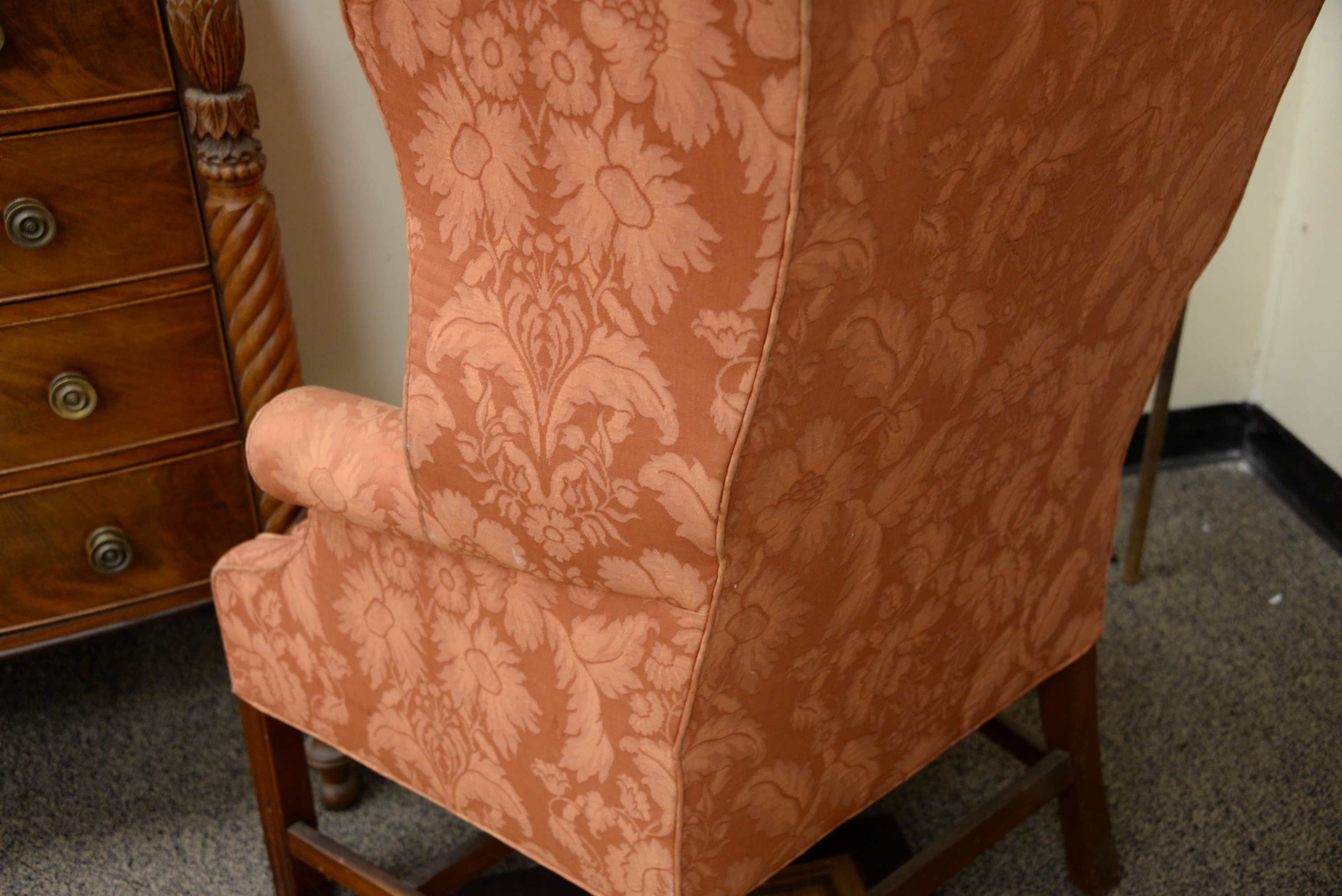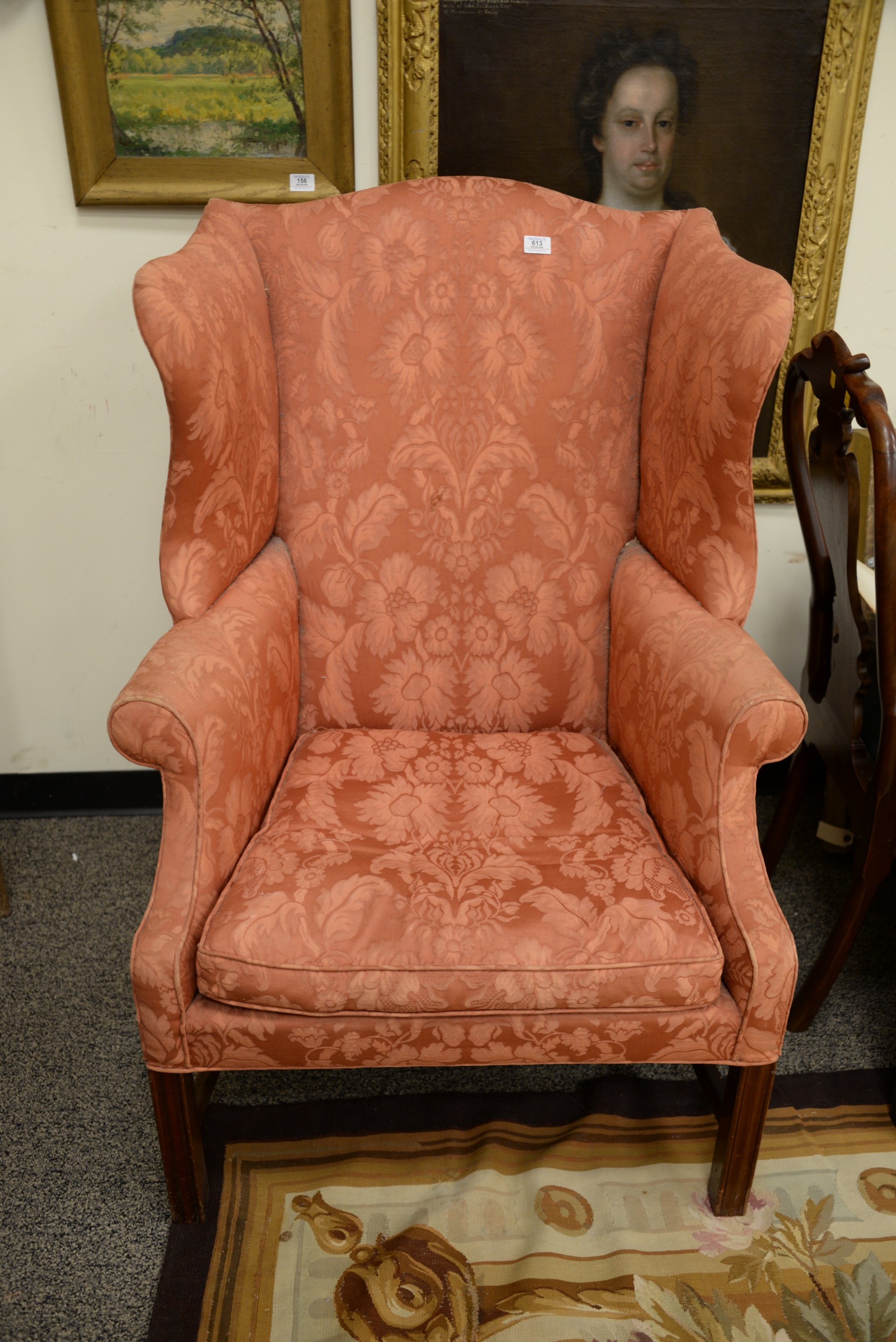 Lot 613: Chippendale Mahogany Upholstered Wing Chair