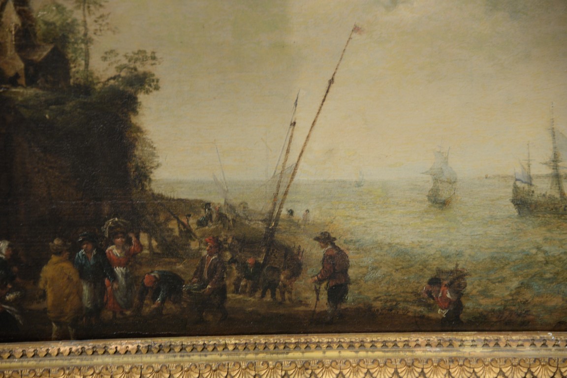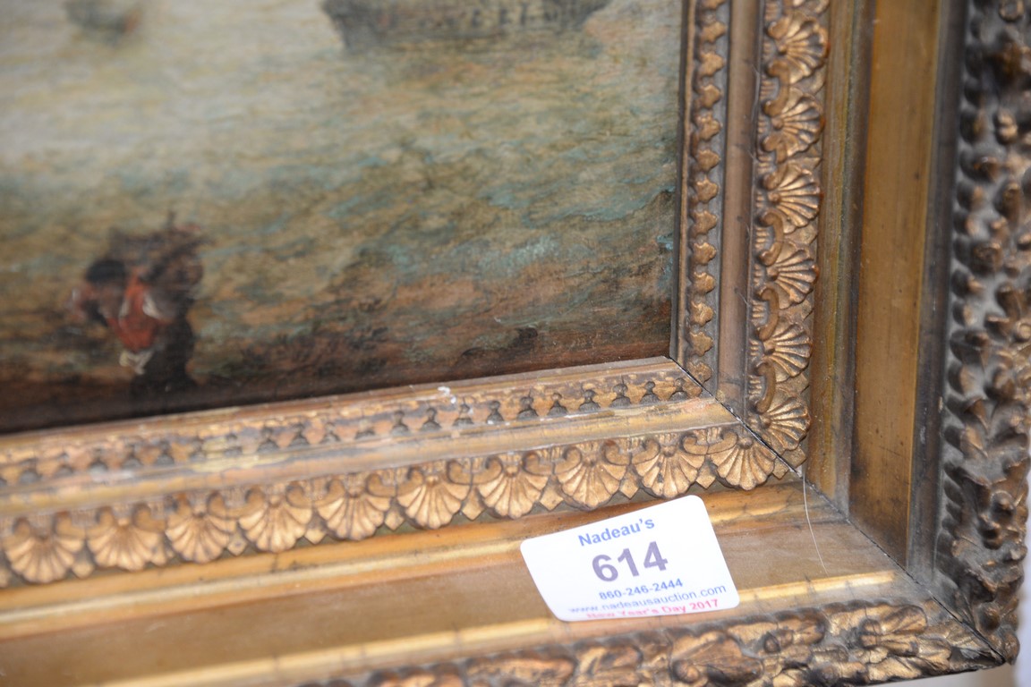 Lot 614: Oil on panel Continental Water’s Edge People with Supplies unsigned probably Dutch 17th century 11 x 15 1/2