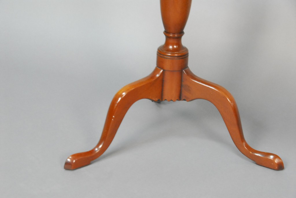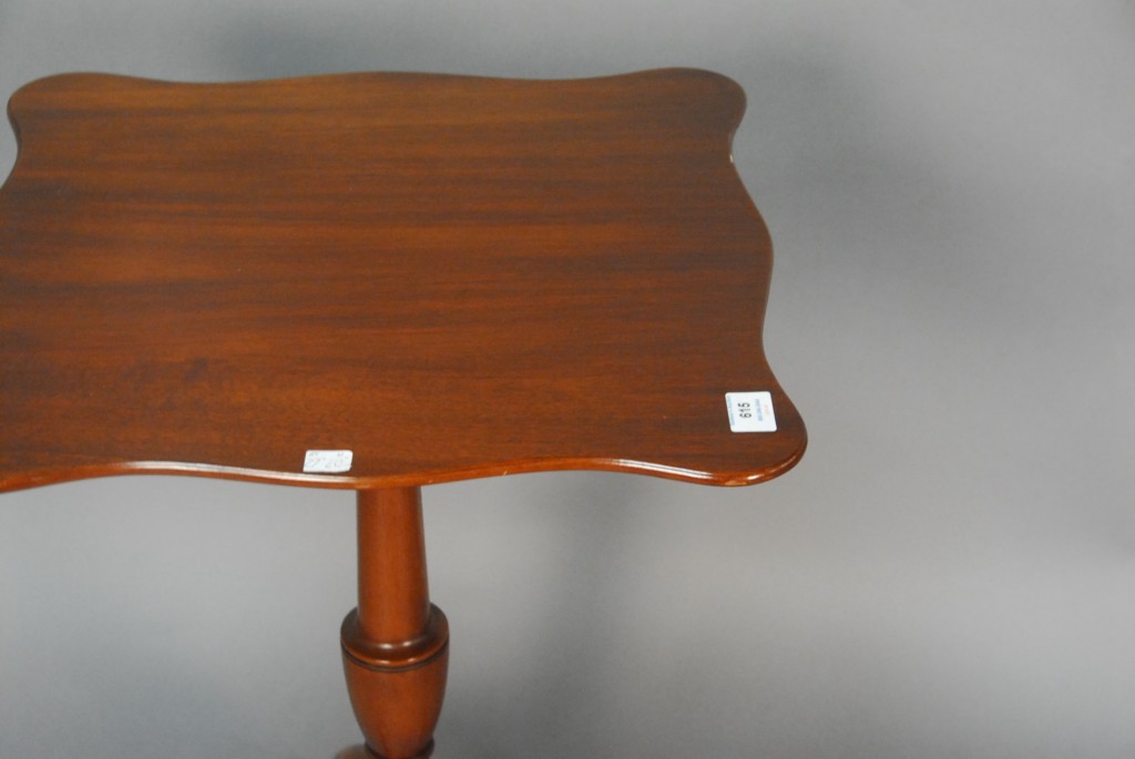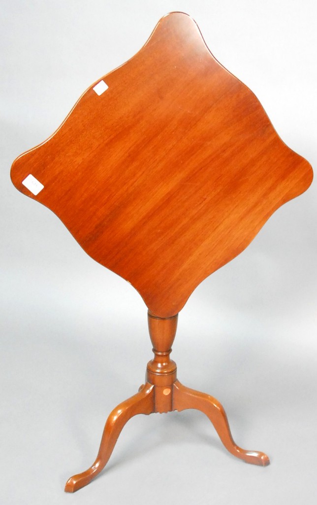 Lot 615: Colonial Williamsburg Kittinger Federal style mahogany tilt table with serpentine top, branded Kittinger Colonial Williamsburg. – h…