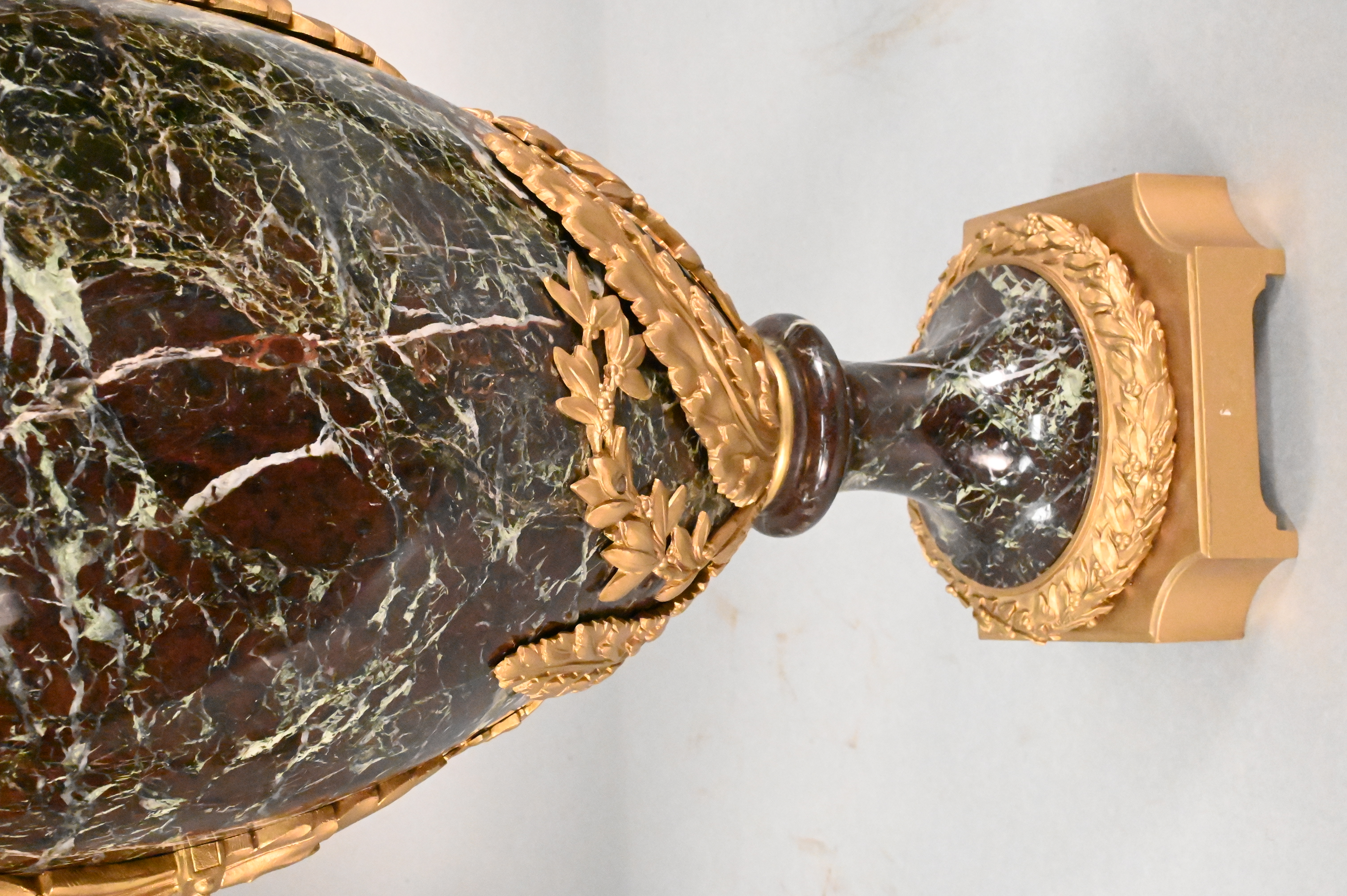 A Pair of Louis XVI Style Green Marble Vases and Covers