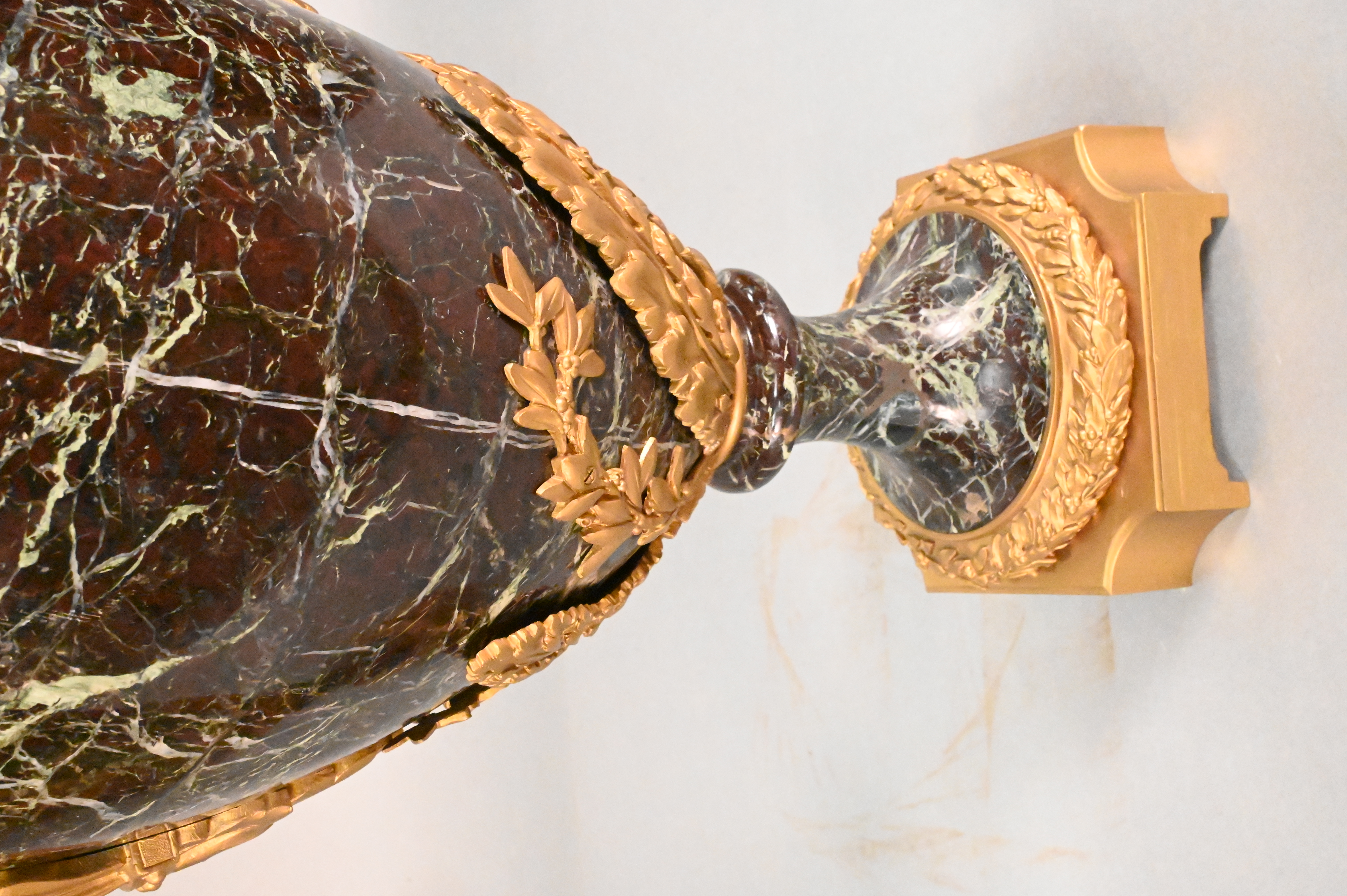 Lot 617: A Pair of Louis XVI Style Green Marble Vases and Covers