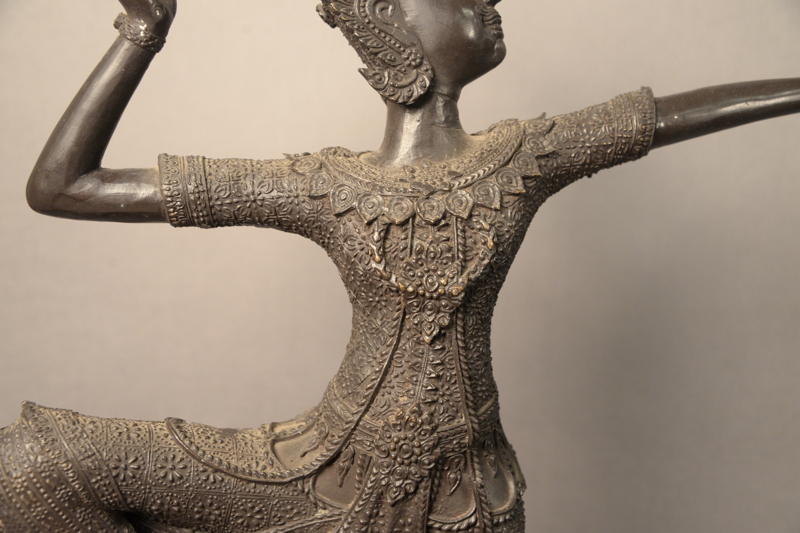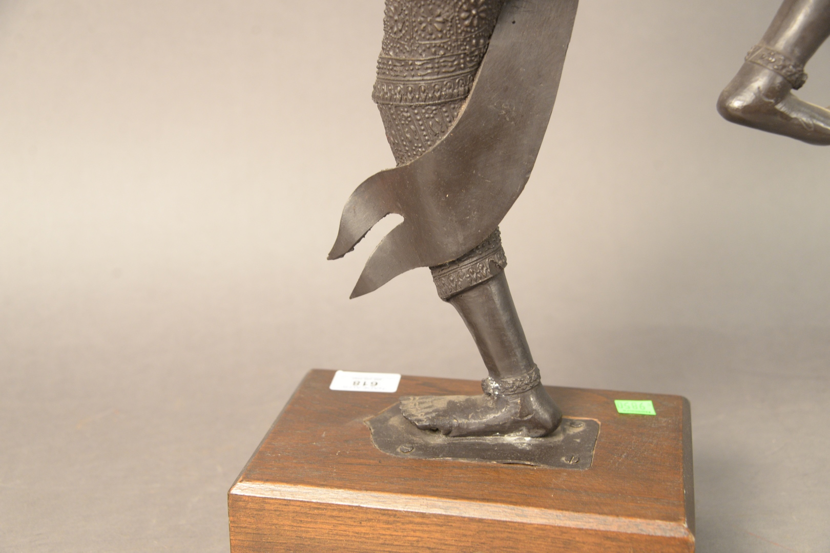 Lot 618: Bronze Figure of the Hindu God Rama as an Archer, mounted on wood base, unsigned, height 30 inches, width 19 1/2 inches.