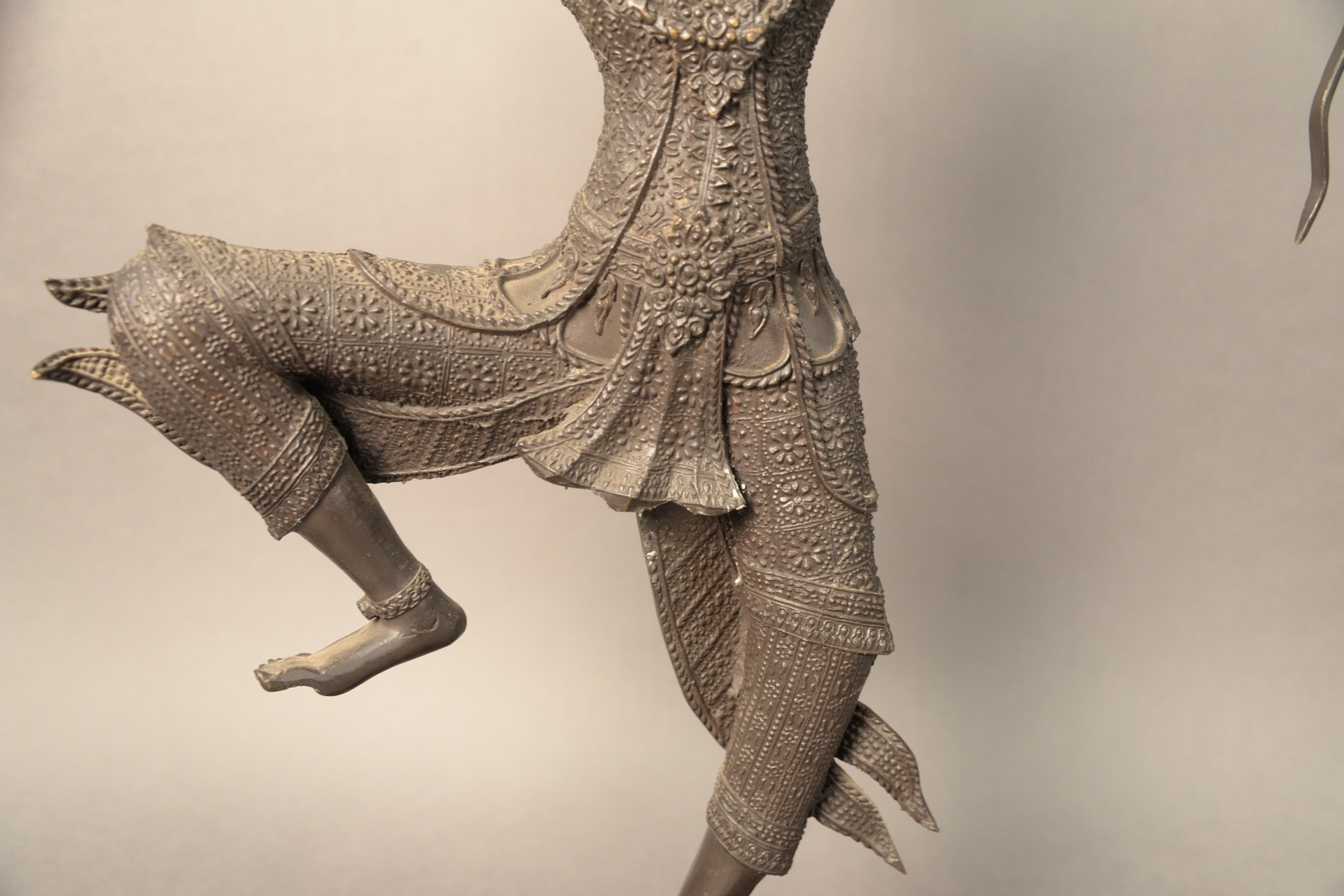 Bronze Figure of the Hindu God Rama as an Archer, mounted on wood base, unsigned, height 30 inches, width 19 1/2 inches.