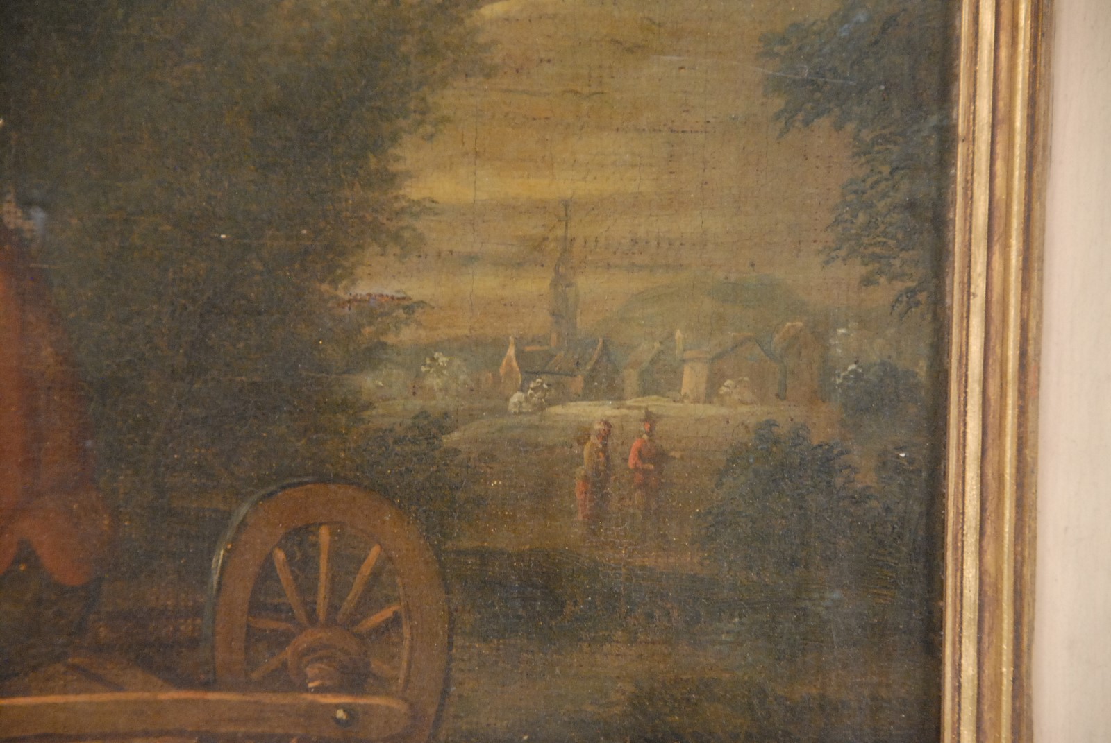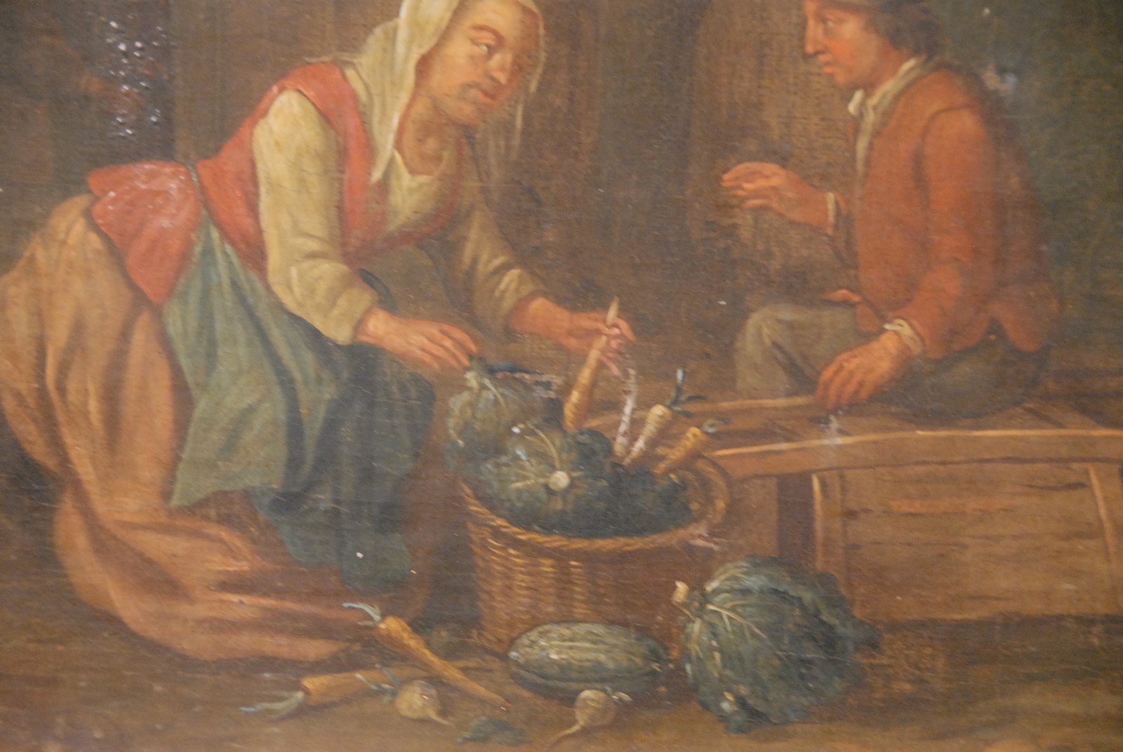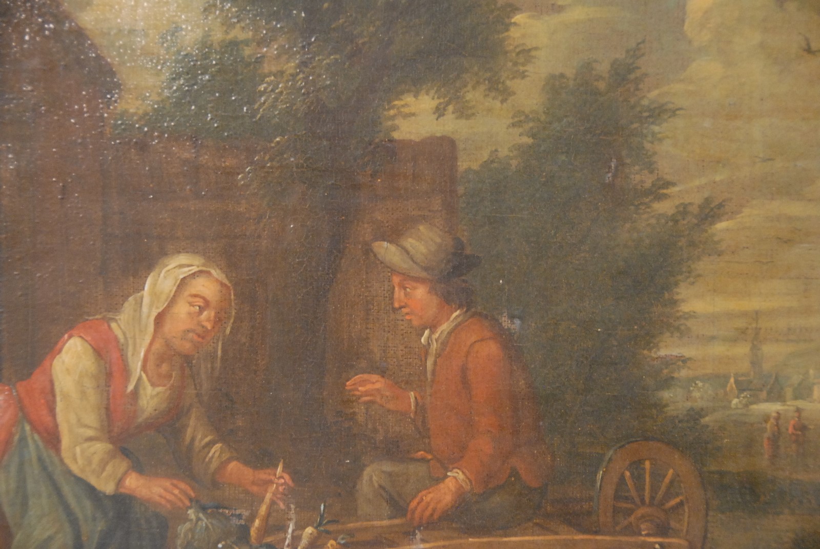 SELLING VEGETABLES with town in background unsigned relined 19th century 13 x 16