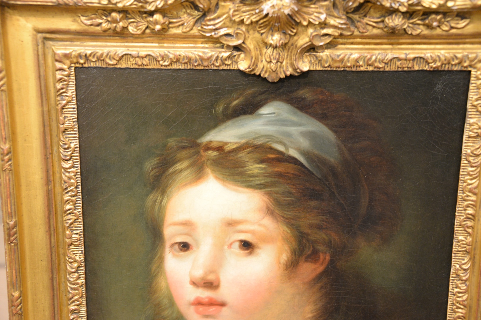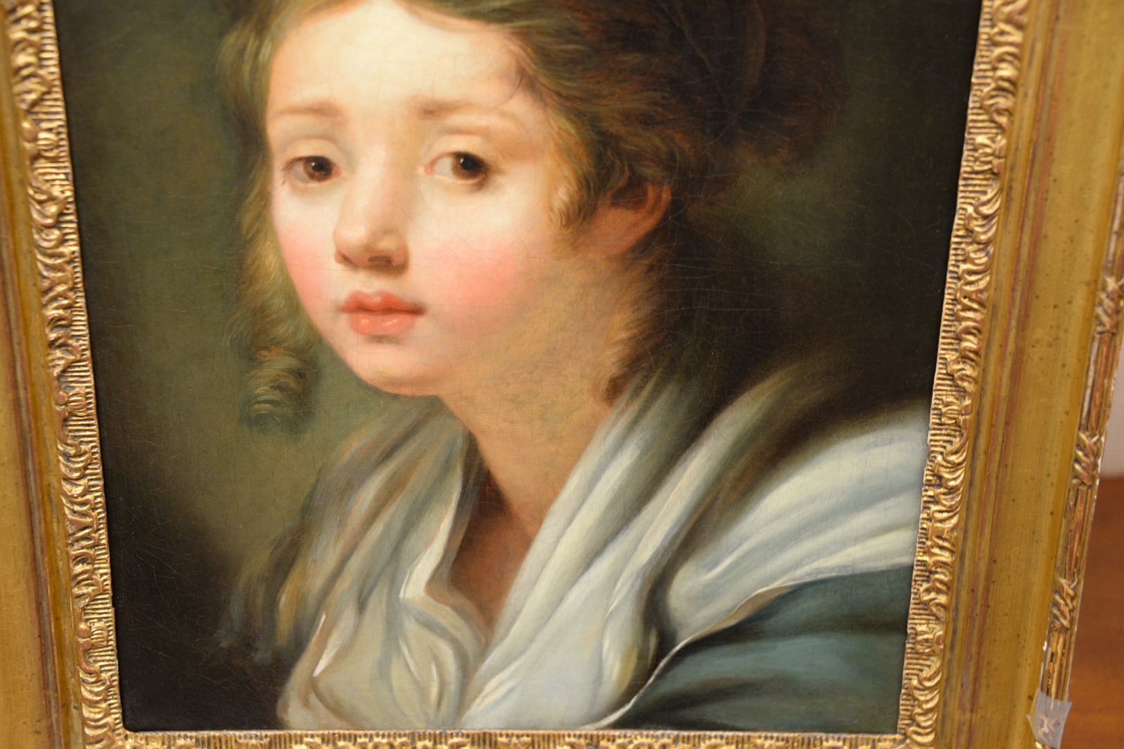 School of Jean-Baptiste Greuze Portrait of a Young Girl oil on canvas unsigned relined 16 x 12 3/4 Provenance: The Estate of Gloria Schiff, 630 Park Avenue, New York