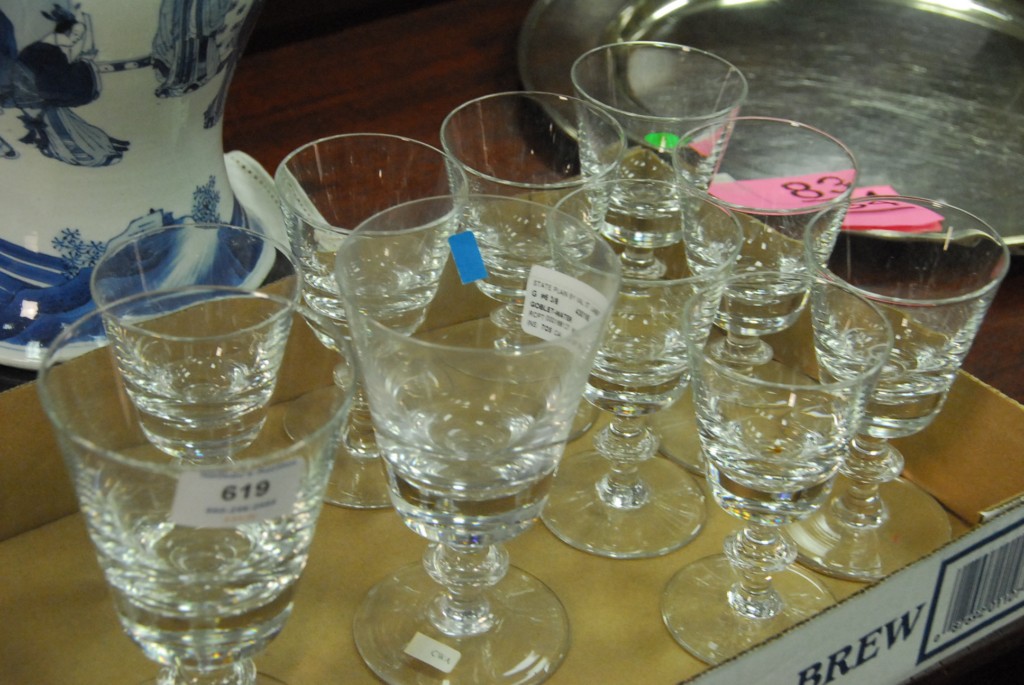 Thirty-three piece lot of Val St. Lambert crystal 15 large stems and 18 small stems one large stem cracked.