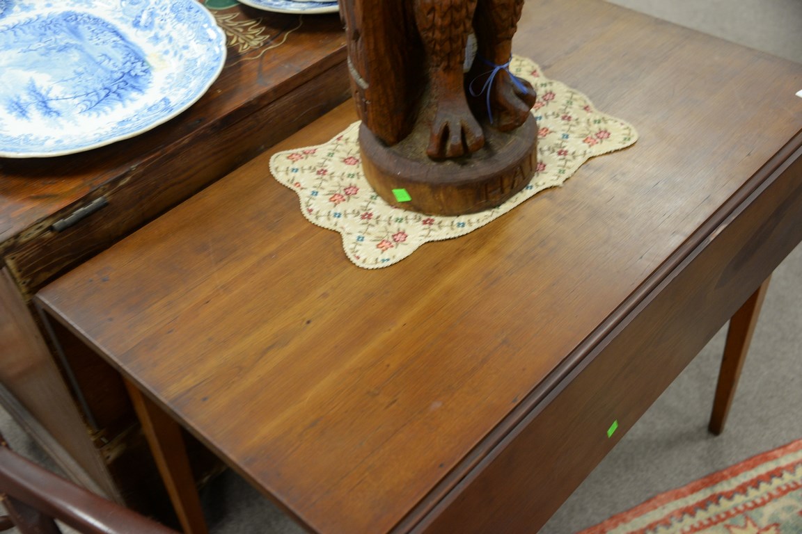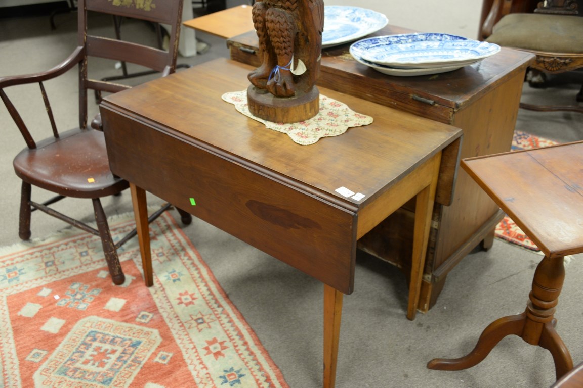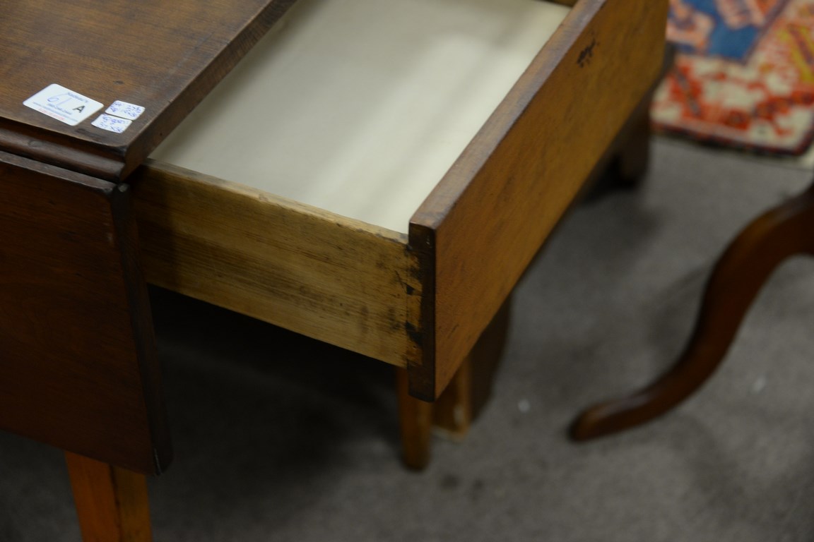 Federal cherry drop leaf table with one drawer over tapered legs, ht. 27 in. top: 19 x 36.