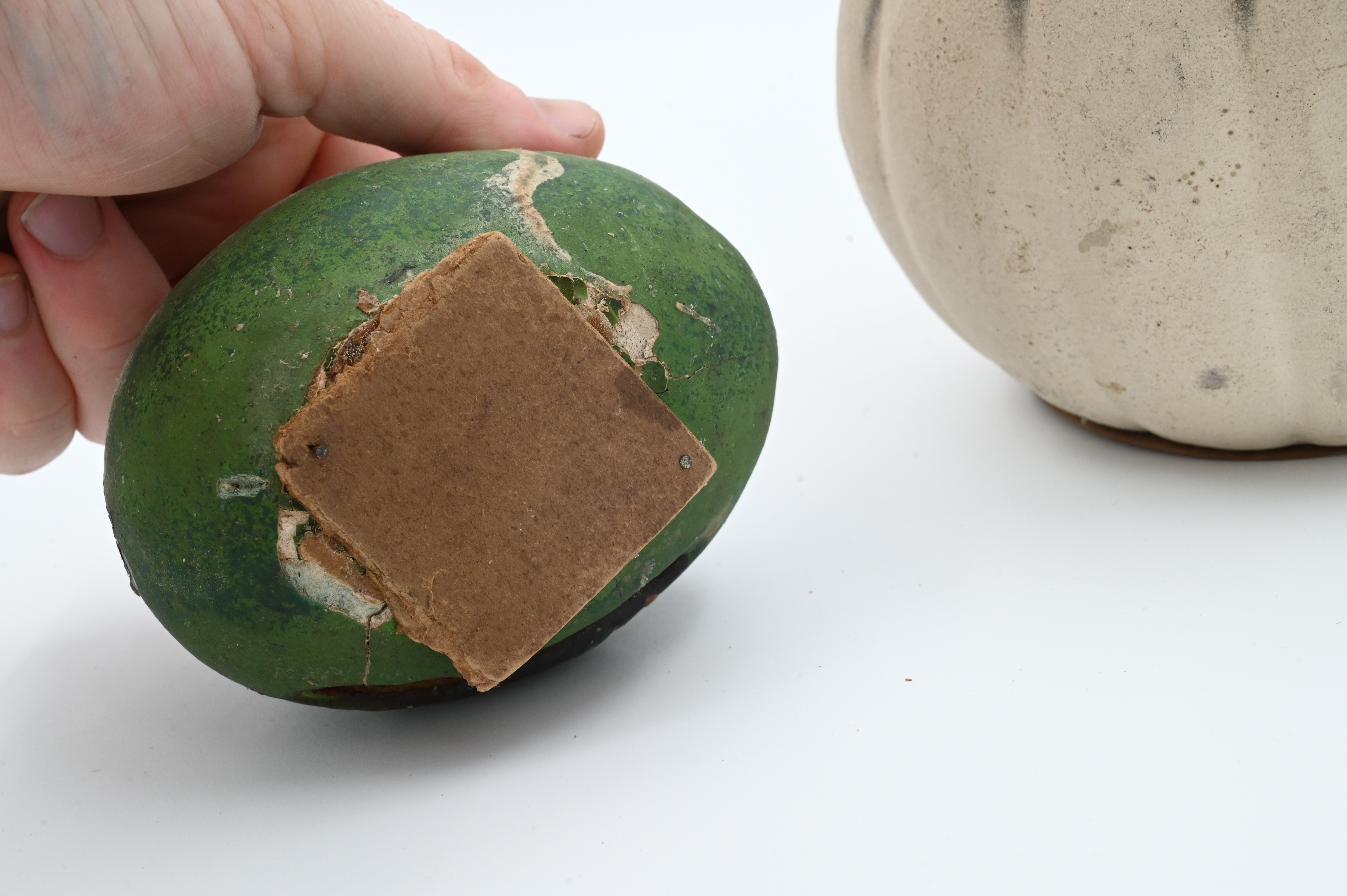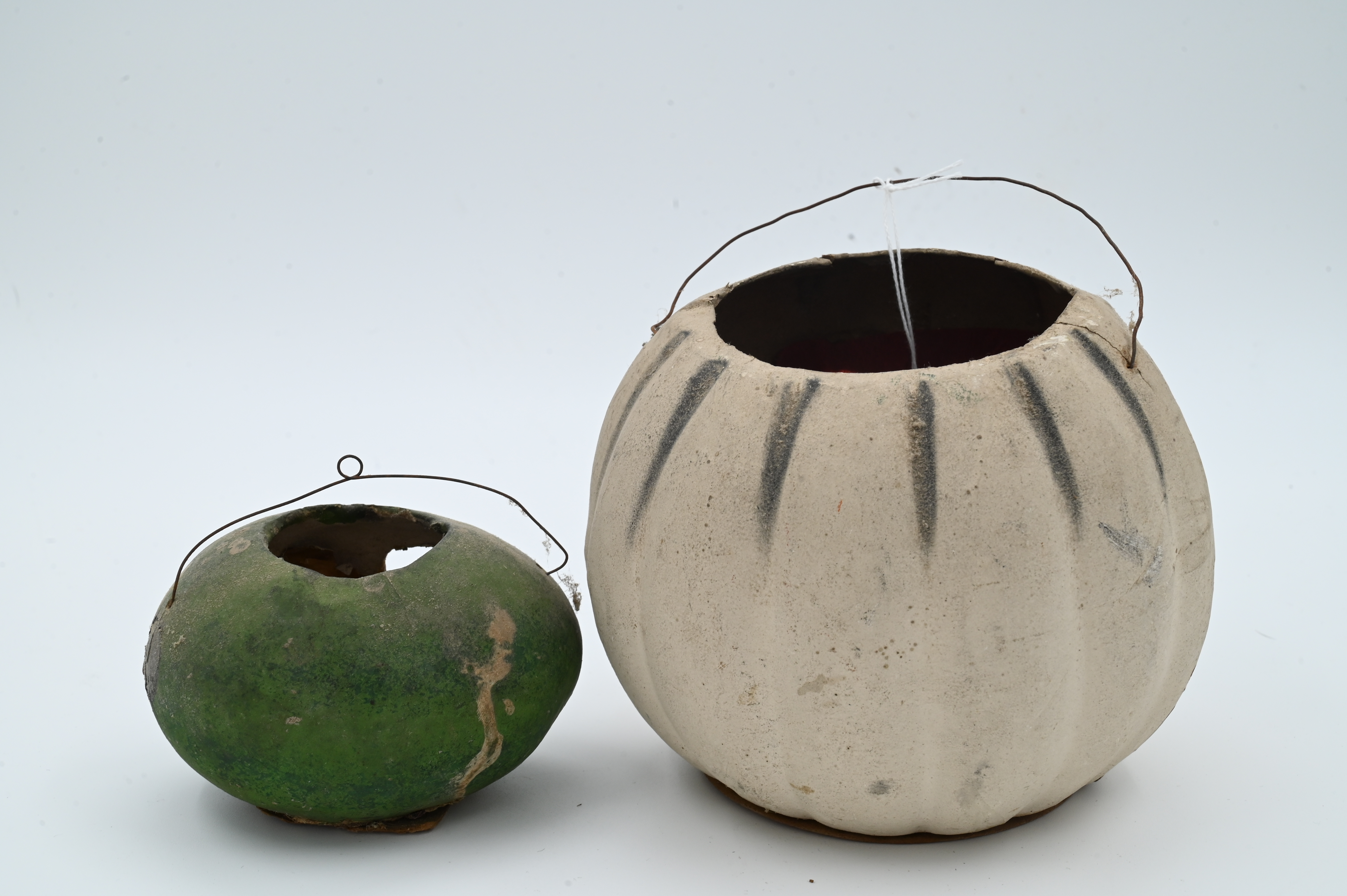 to include watermelon jack-o-lantern having paper insert along with skull jack-o-lantern having paper insert