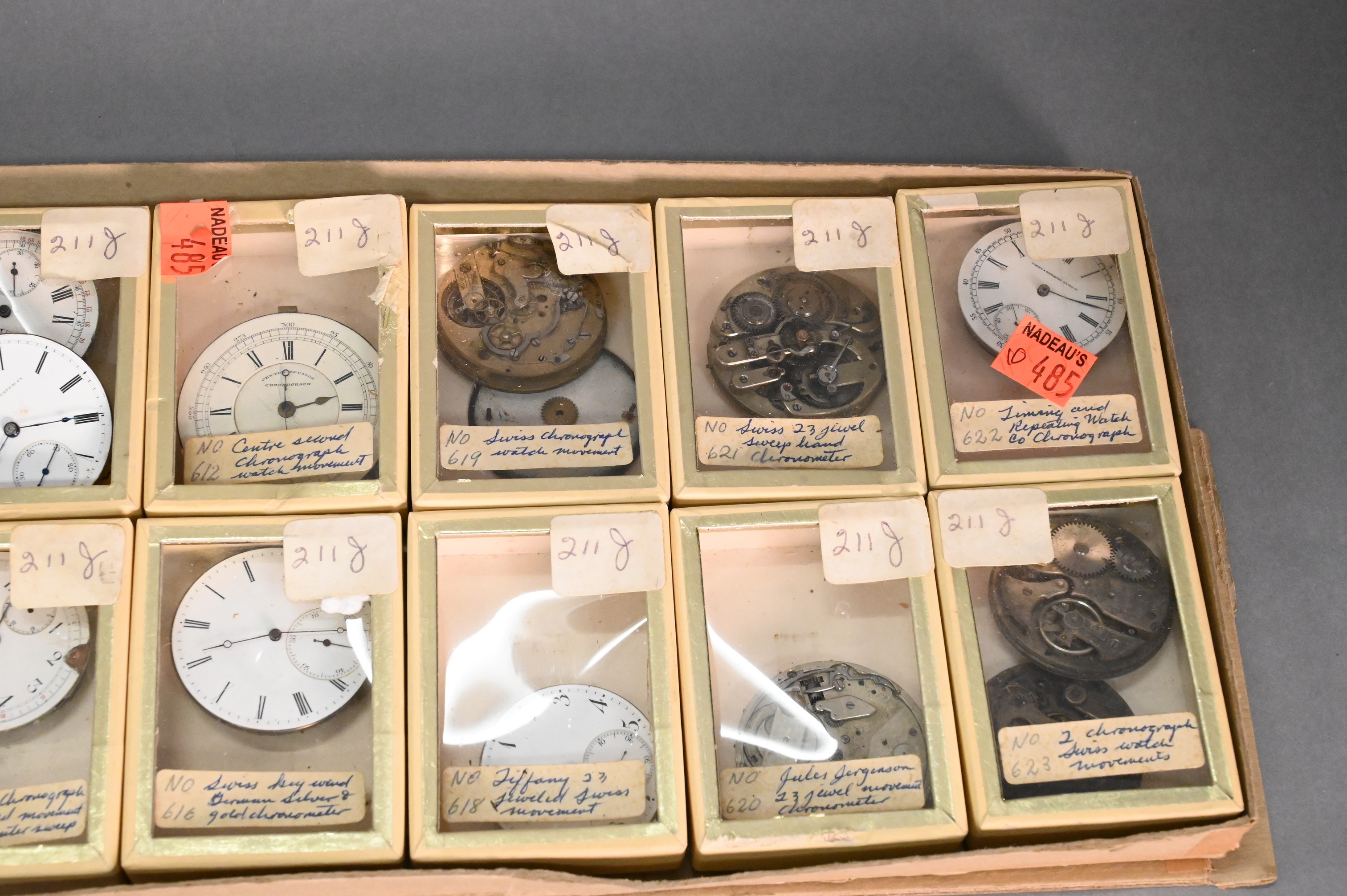 one works signed Tiffany, one Jules Jurgensen, one Timing and Repeating Watch Co., one center sewind chronograph, mostly Swiss chronographs