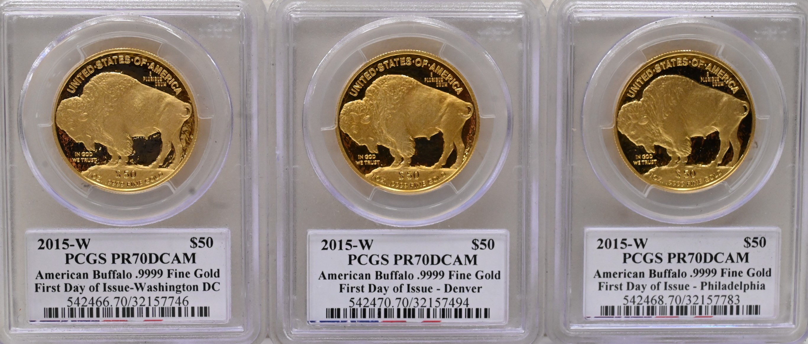 Lot 62: 2015W PCGS Proof 70 D Cameo One Ounce $50 Gold Buffalo