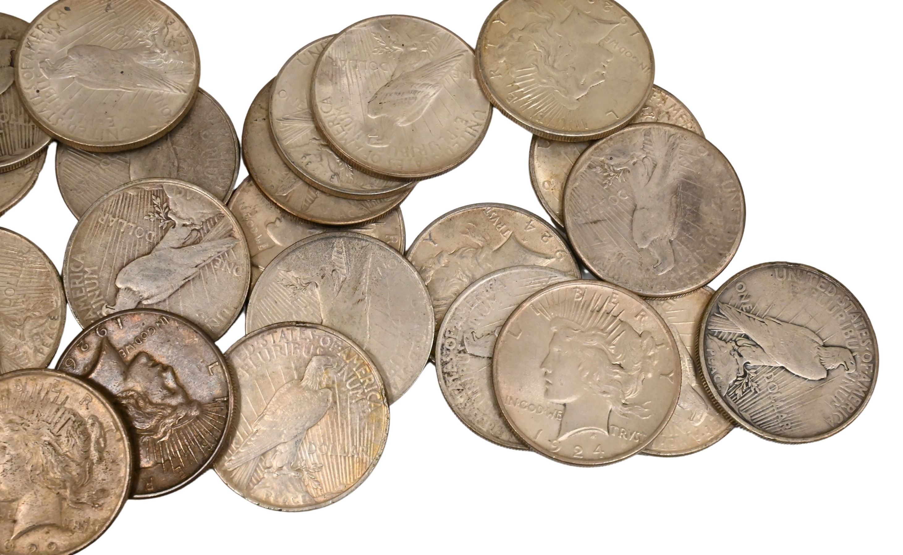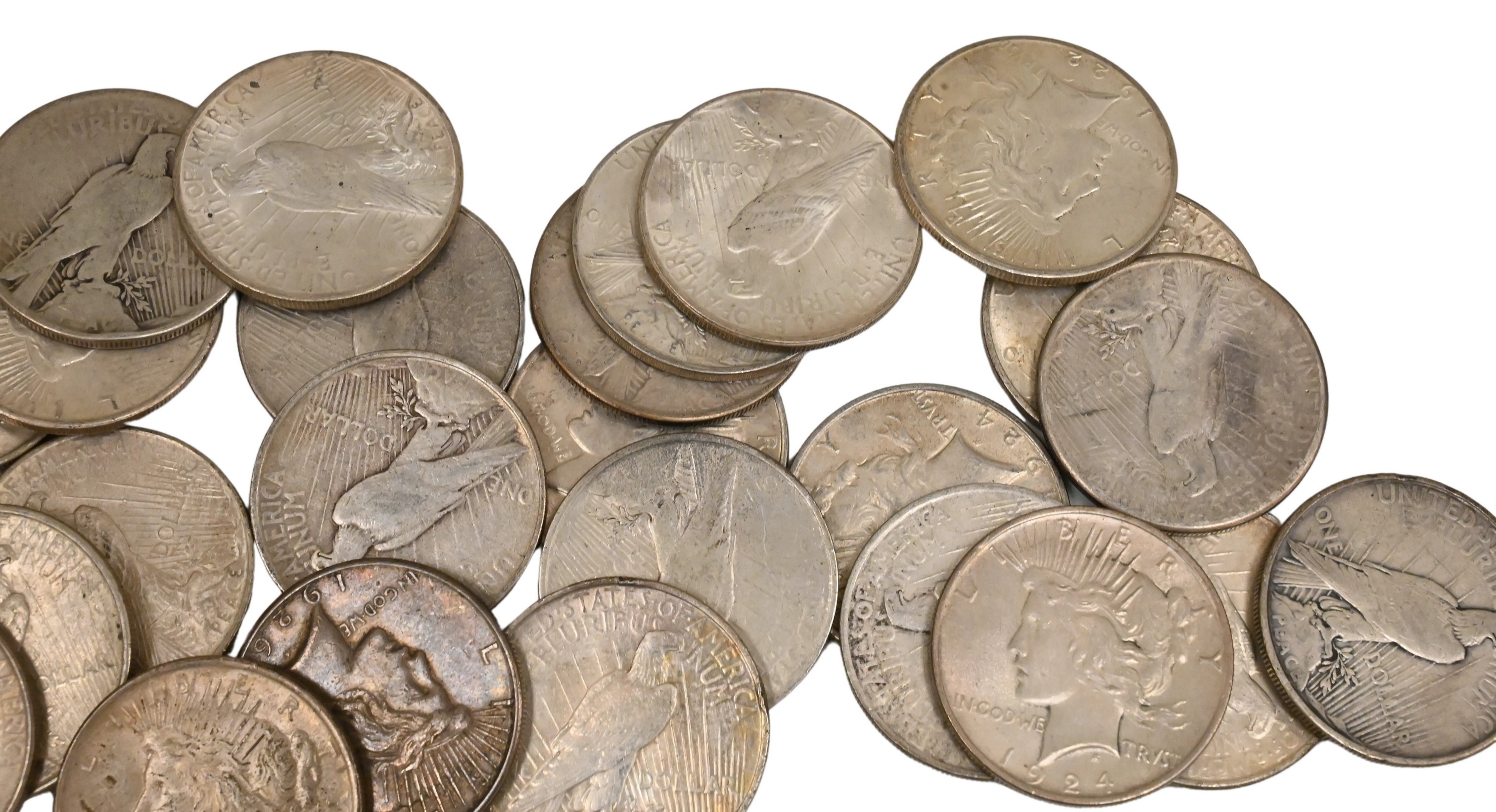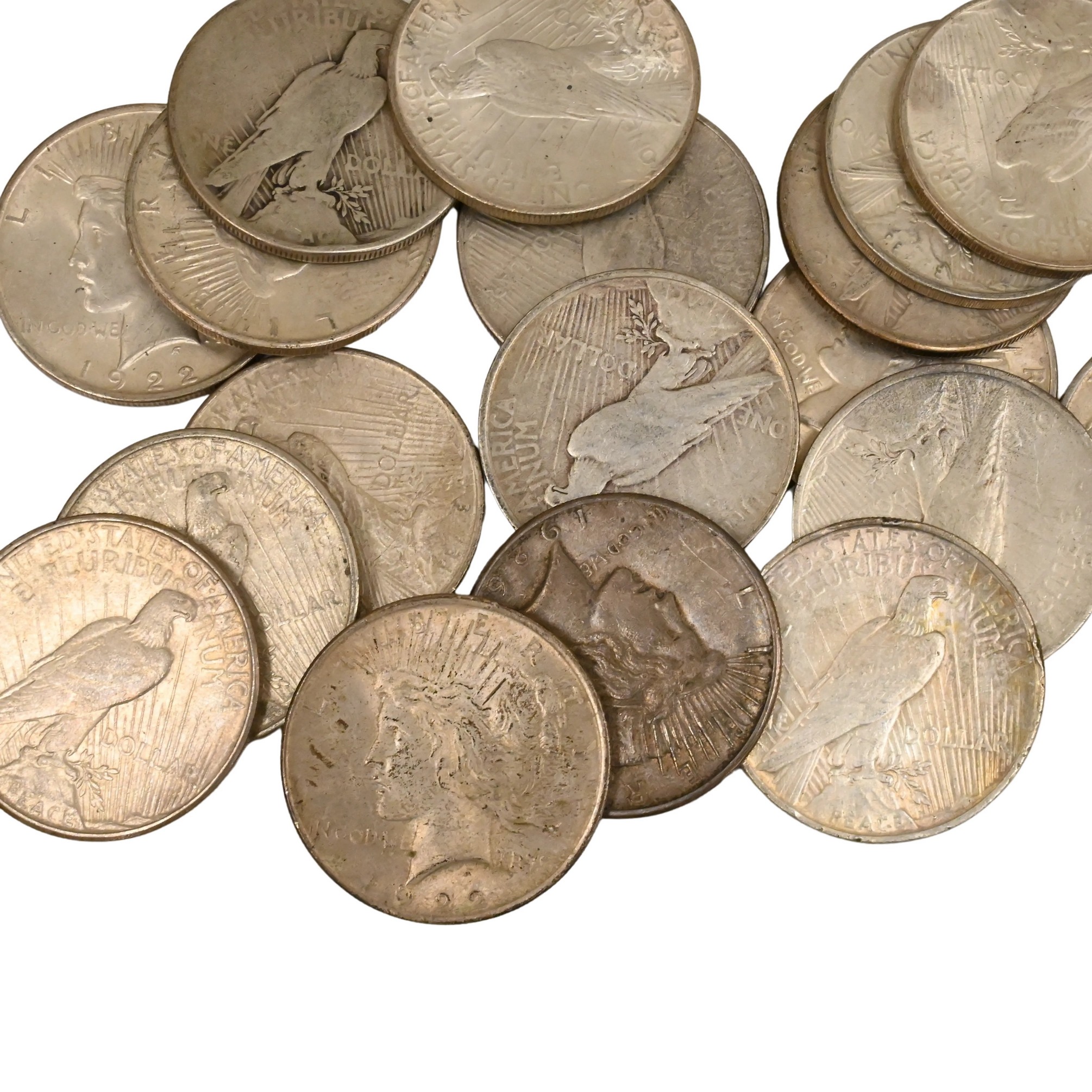Lot 62: 25 Each Mixed Date Peace Dollars F to XF