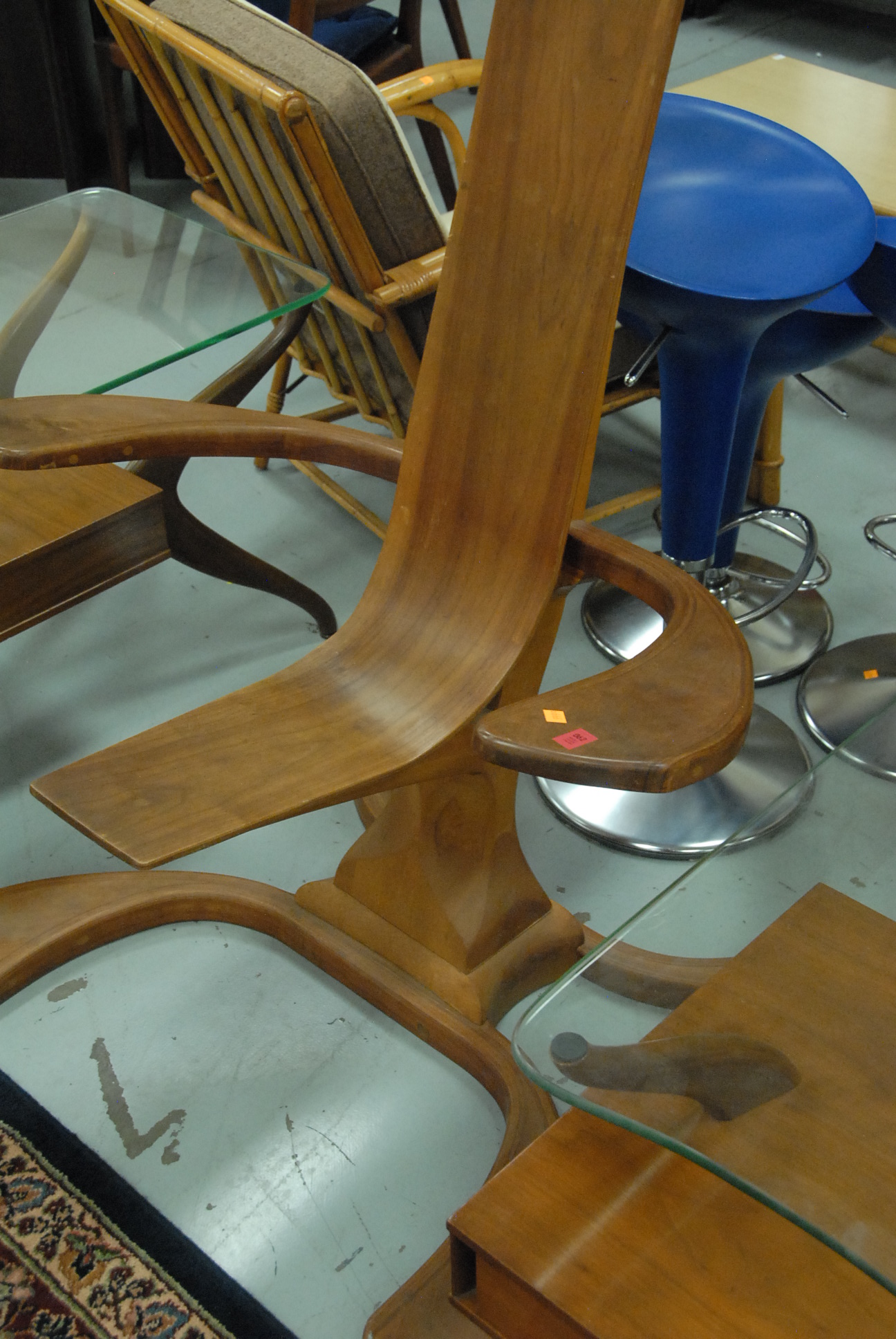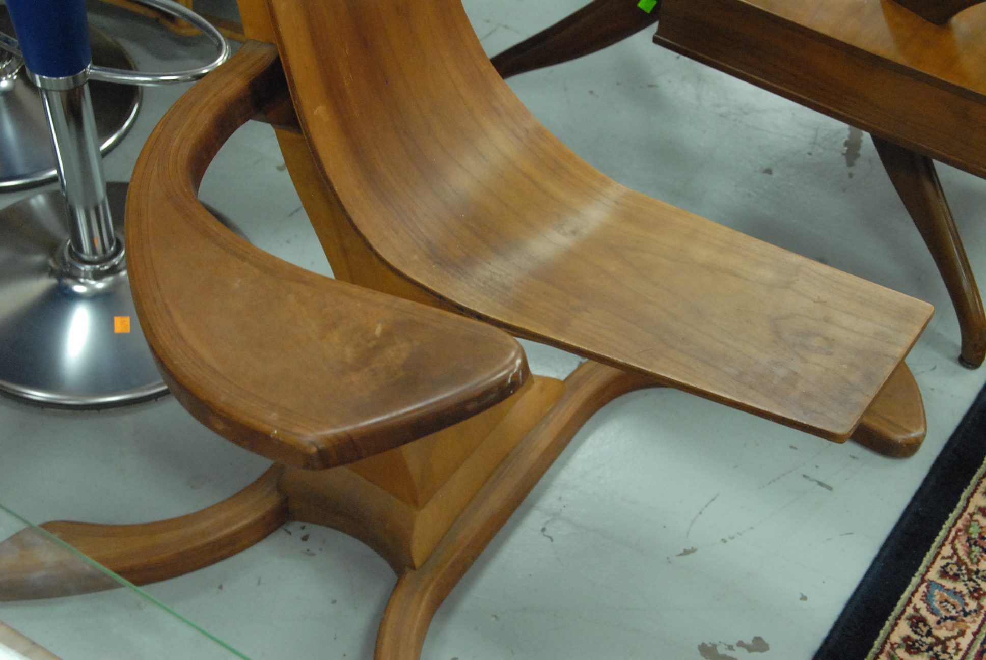 Lot 62: American Studio Craft Movement lounge chair utilizing both solid and laminated bent-ply walnut having a contoured, single piece seat…