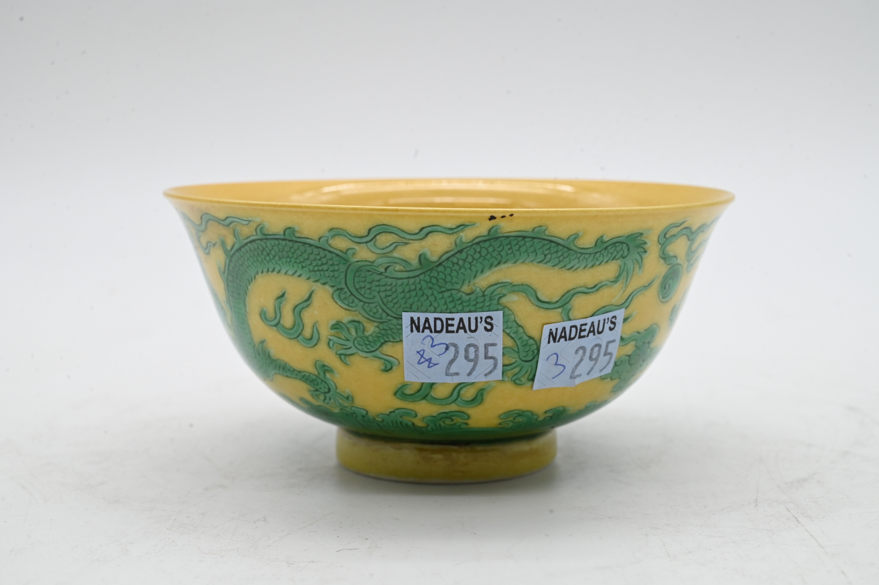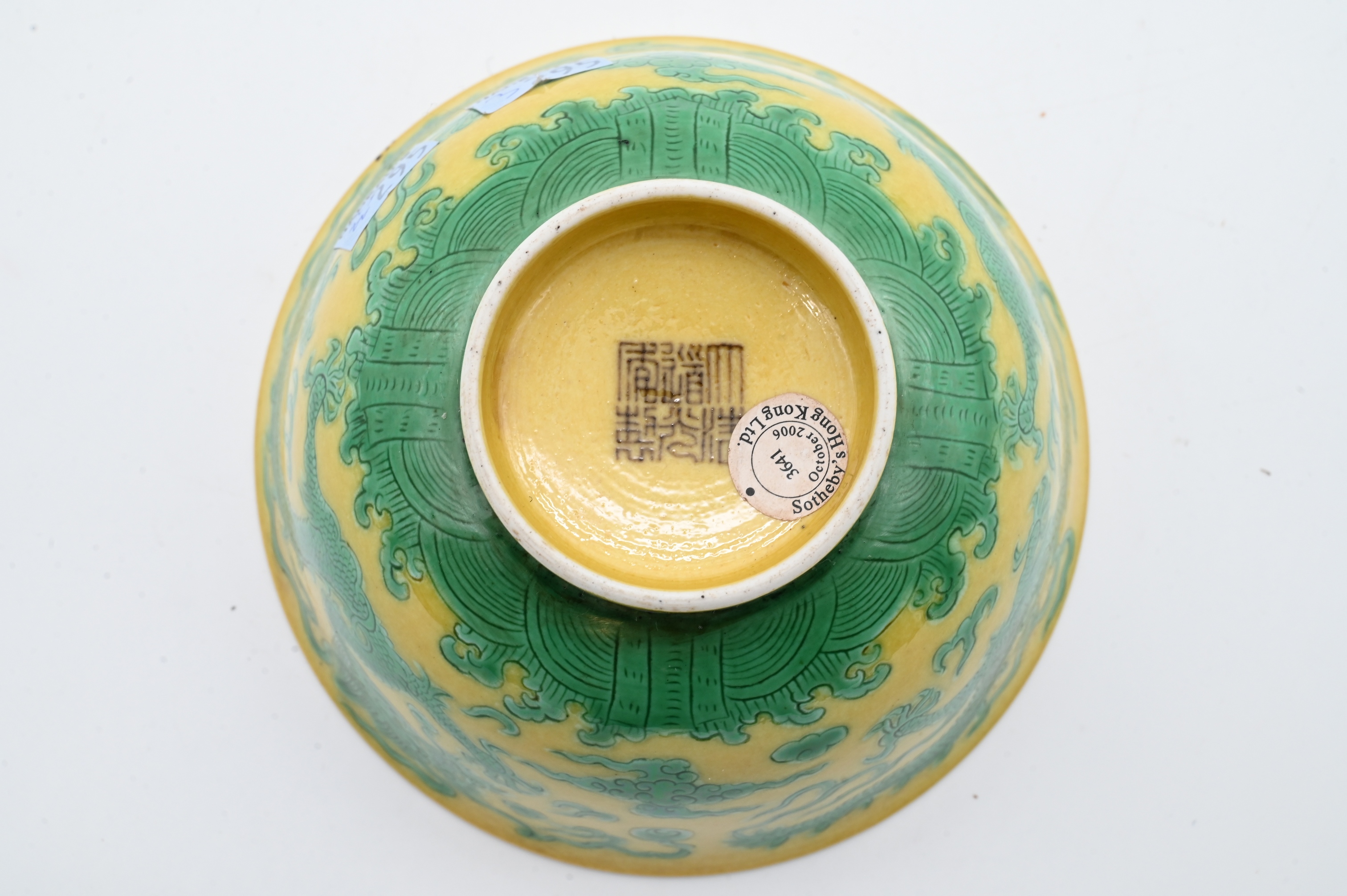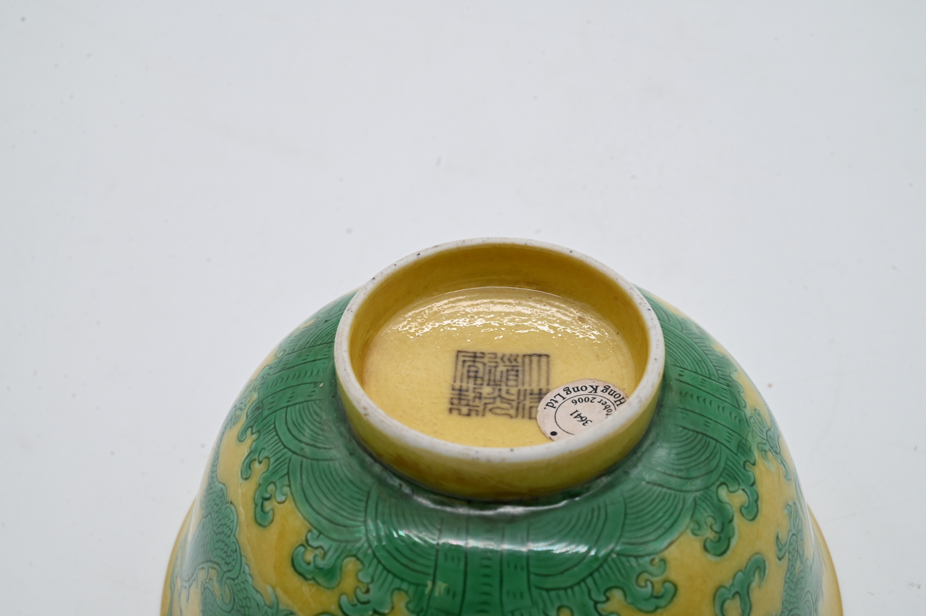 Lot 62: Chinese Yellow and Green Glazed Porcelain Dragon Bowl