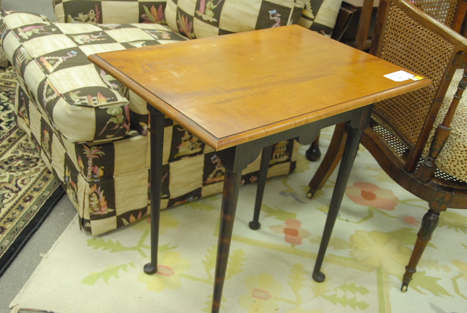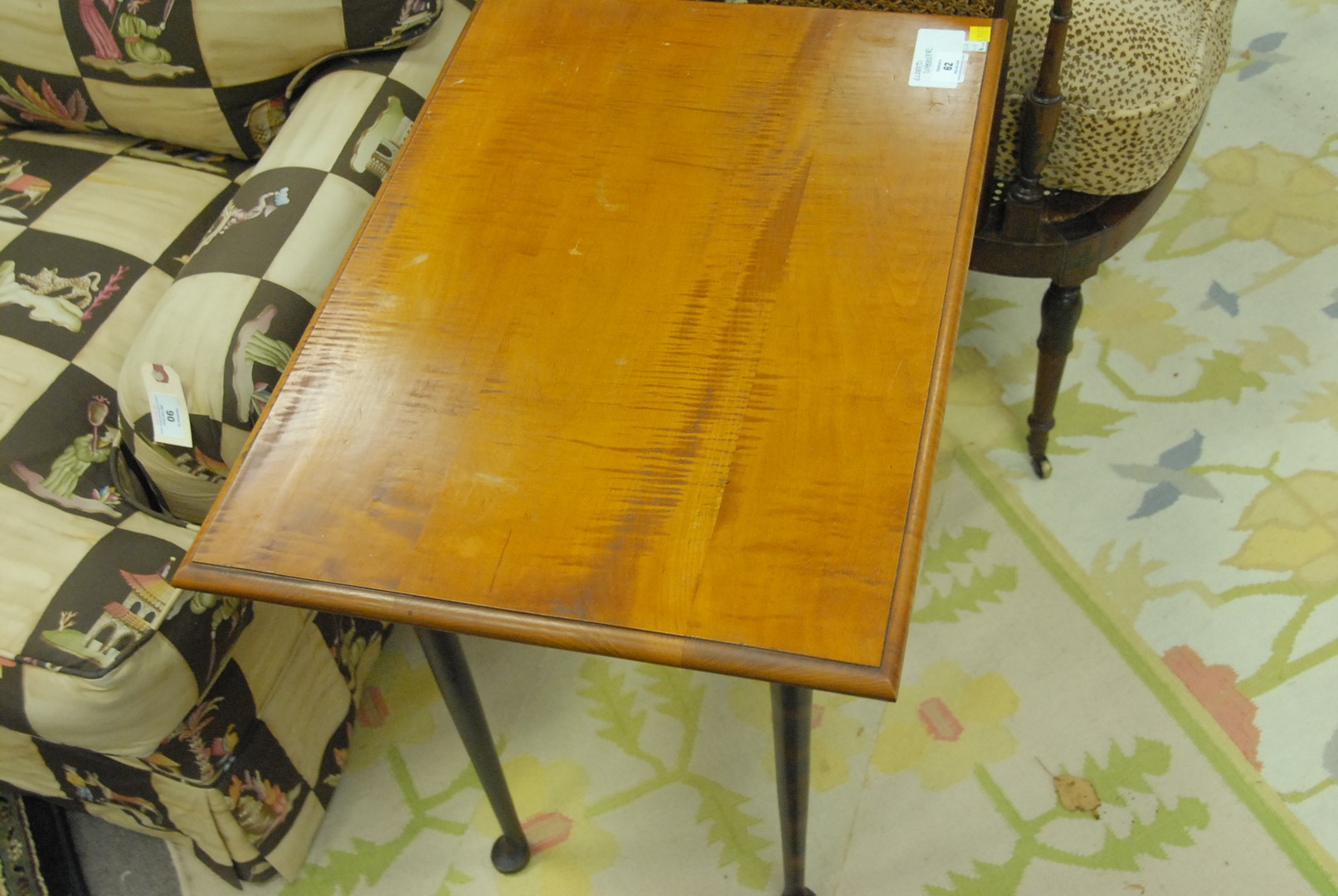 Eldred Wheeler side table with tiger maple top. ht. 25 in. top: 18 x 26